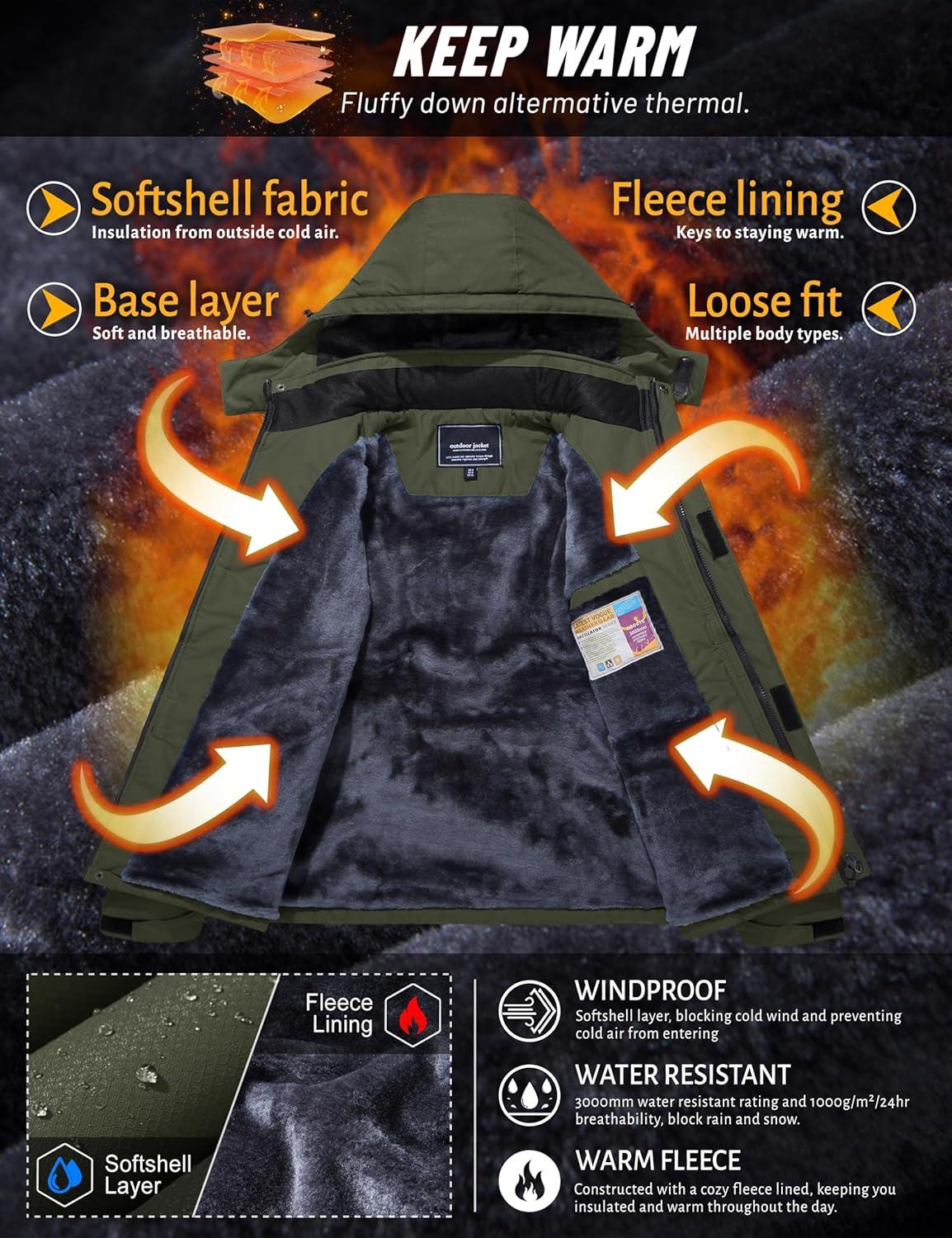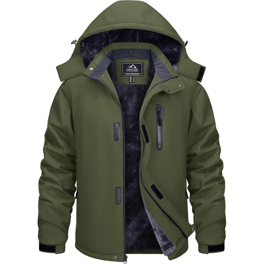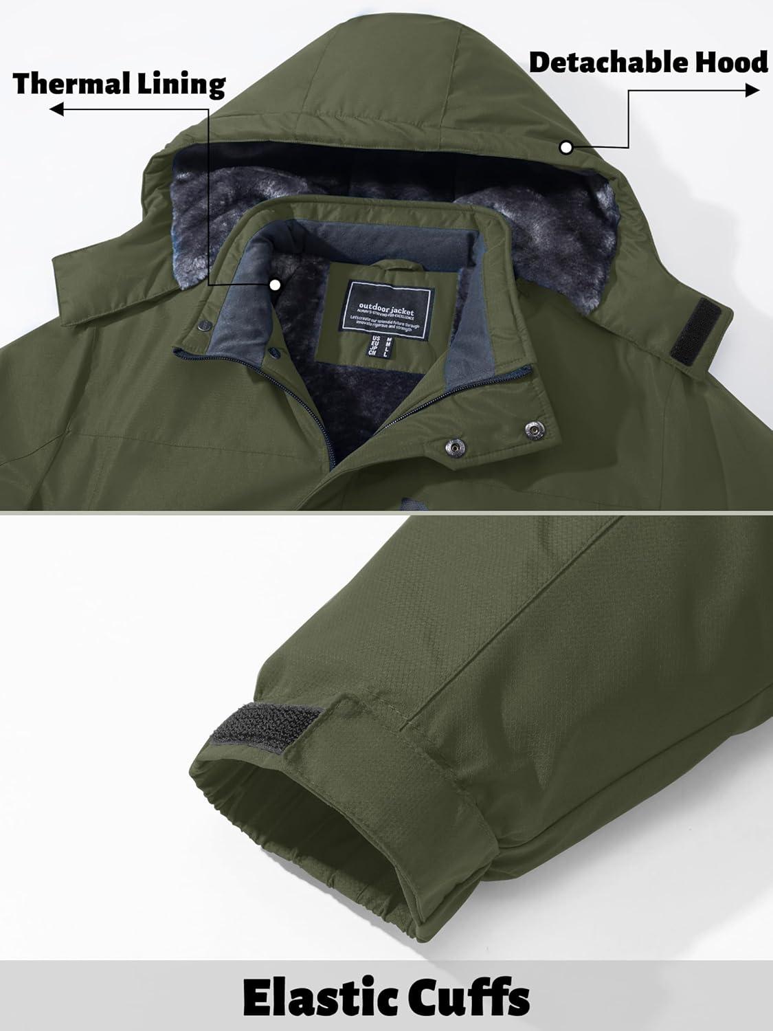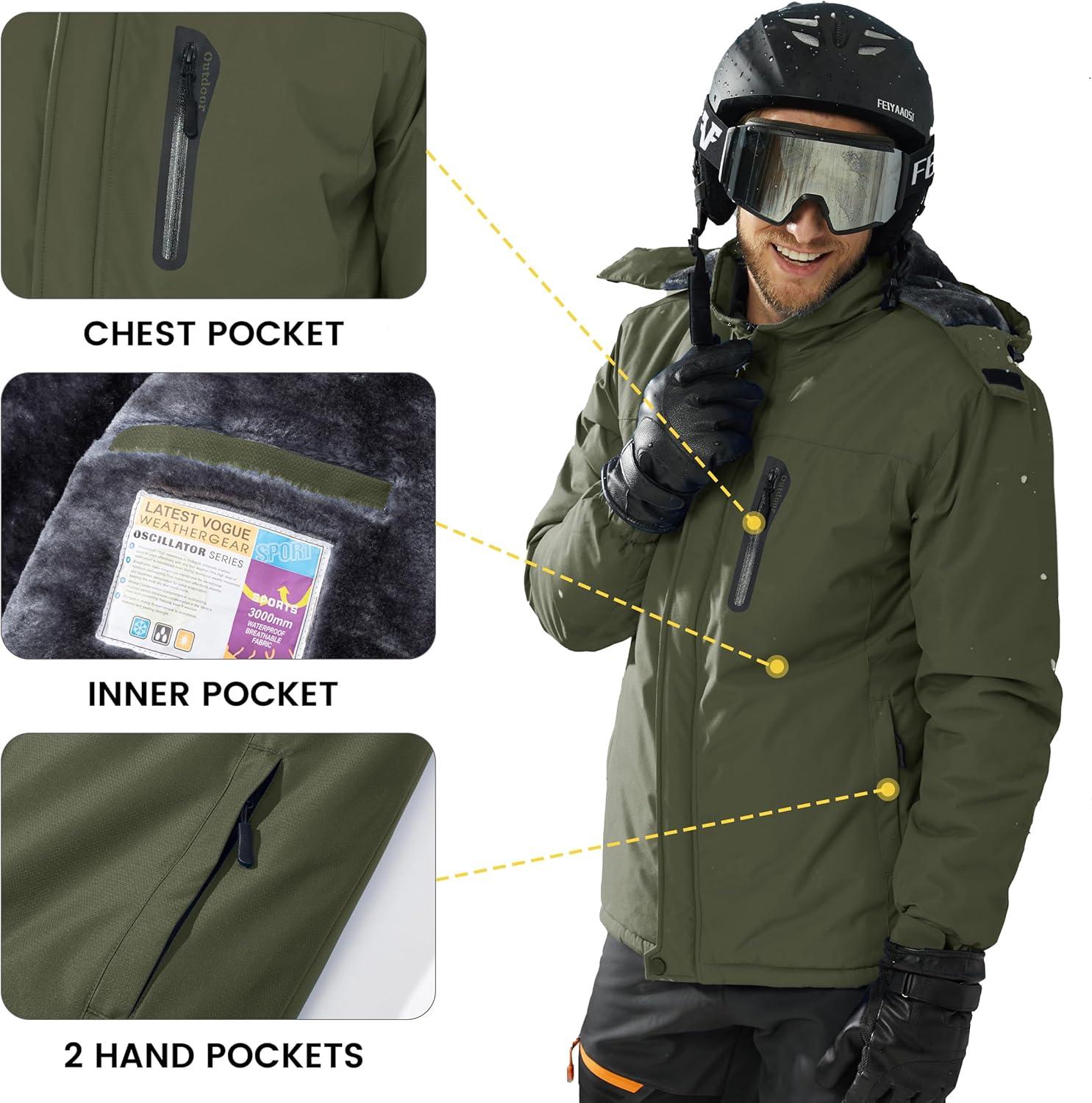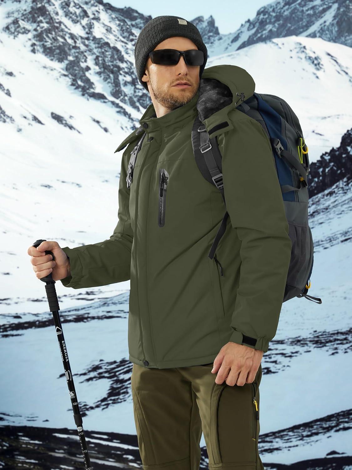 TACVASEN Men’s Ski Snowboard Jacket Warm Winter Windproof Hiking Fishing Travel Fleece Lined Jacket Hooded with Pockets(Army Green)