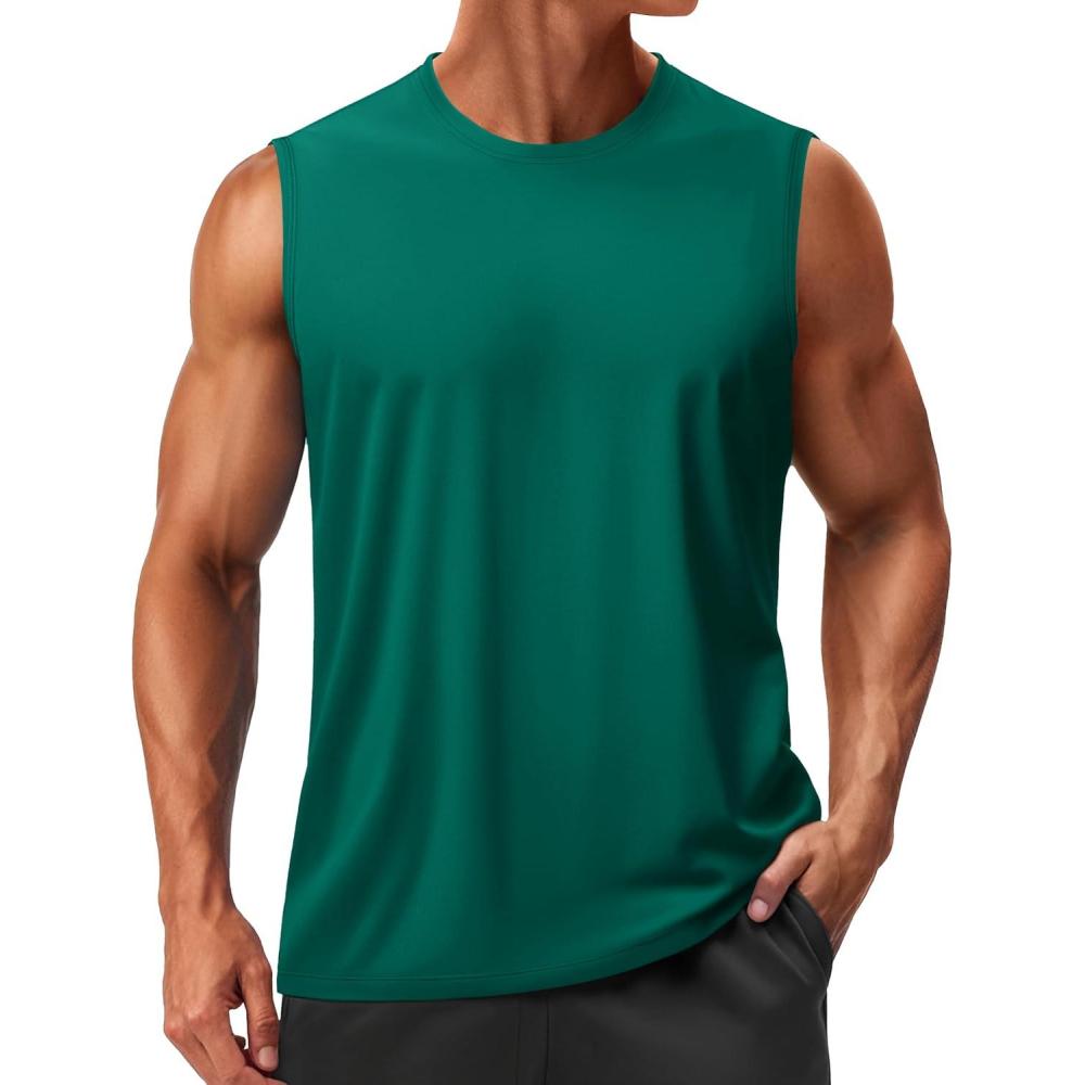 TACVASEN Men’s Sleeveless Shirts Quick Dry Tank Tops for Men Sun Protection UPF 50+ Athletic Gym Workout Muscle Shirts(12 Emerald Green)