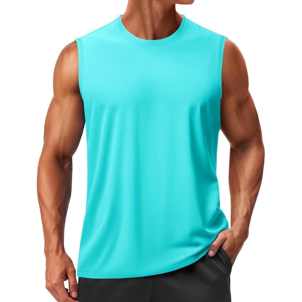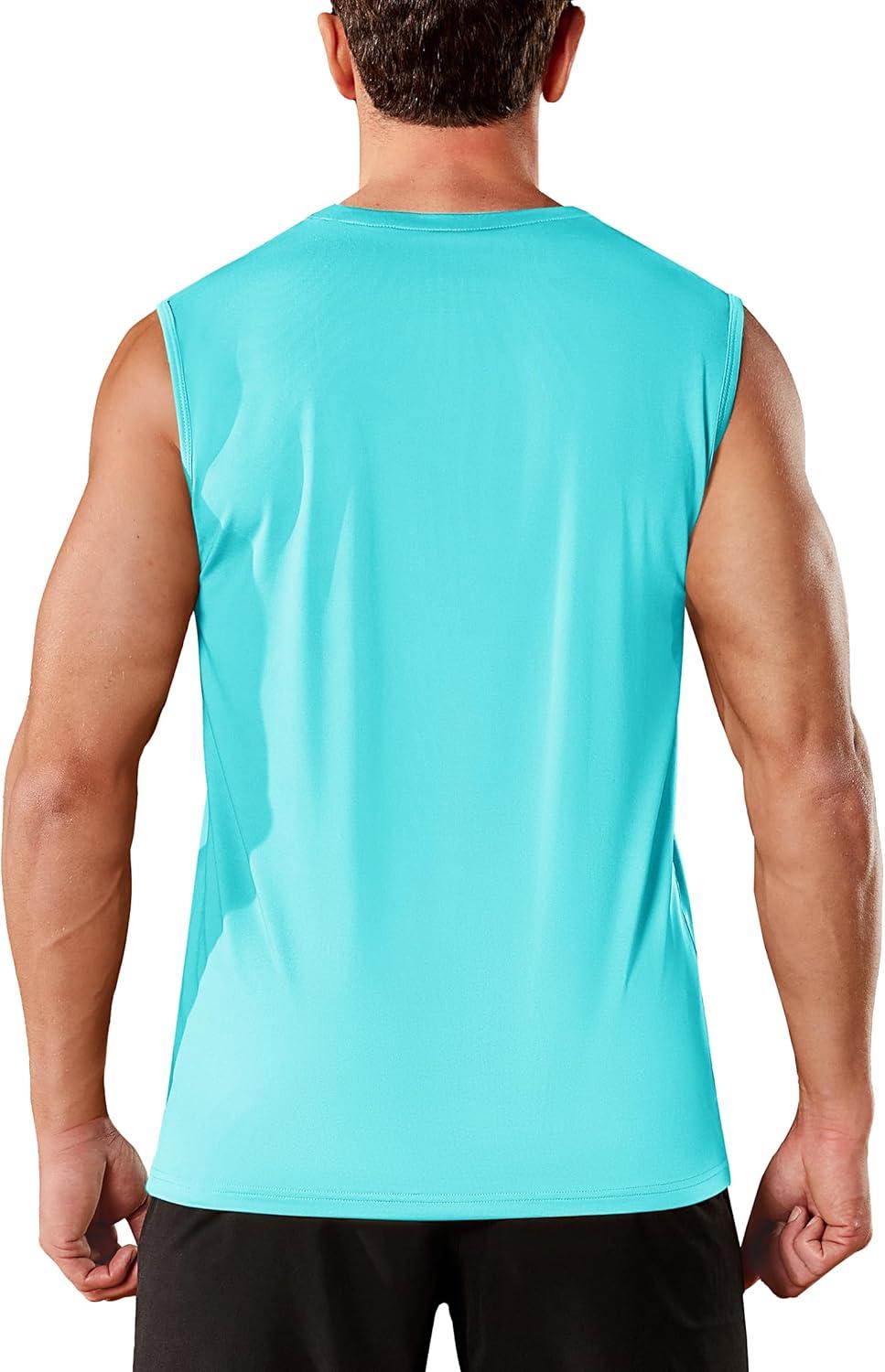 TACVASEN Men’s Sleeveless Shirts Quick Dry Tank Tops for Men Sun Protection UPF 50+ Athletic Gym Workout Muscle Shirts(15 Light Lake Blue)