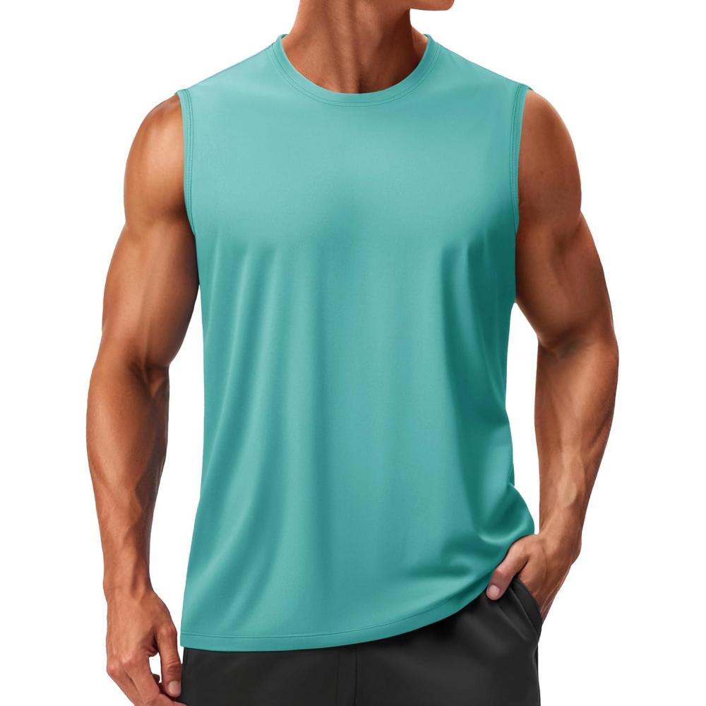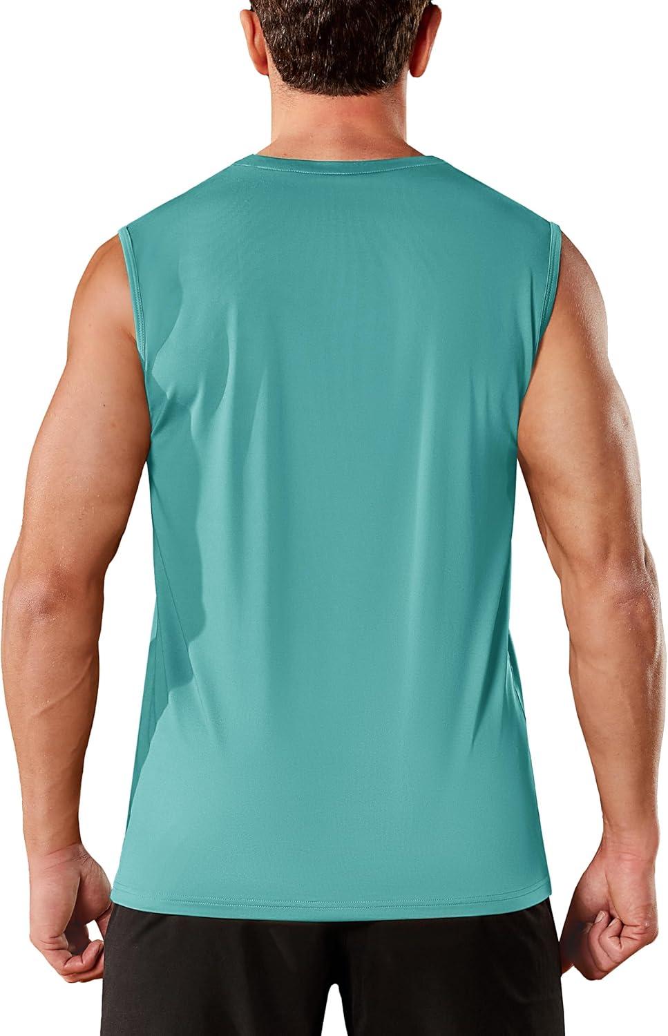 TACVASEN Men’s Sleeveless Shirts Quick Dry Tank Tops for Men Sun Protection UPF 50+ Athletic Gym Workout Muscle Shirts(17 Blue Green)