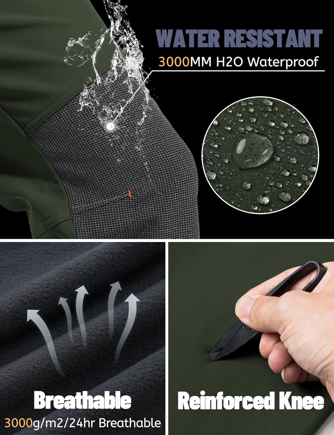 TACVASEN Men’s Snow Ski Pants Fleece Lined Winter Pants for Men Water Resistant Thermal Snowboard Hiking Hunting Work(Army Green)