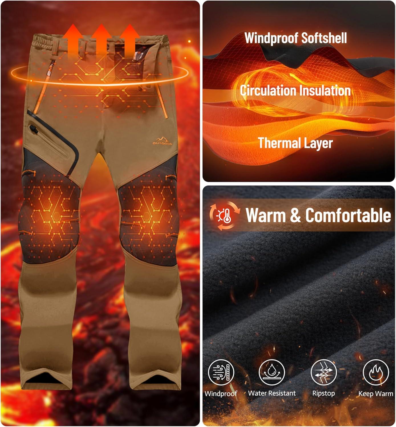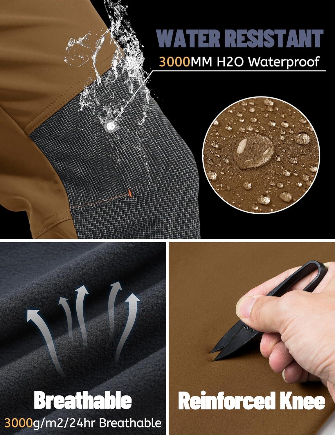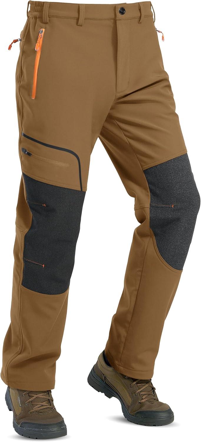 TACVASEN Men’s Snow Ski Pants Fleece Lined Winter Pants for Men Water Resistant Thermal Snowboard Hiking Hunting Work(Light Brown)