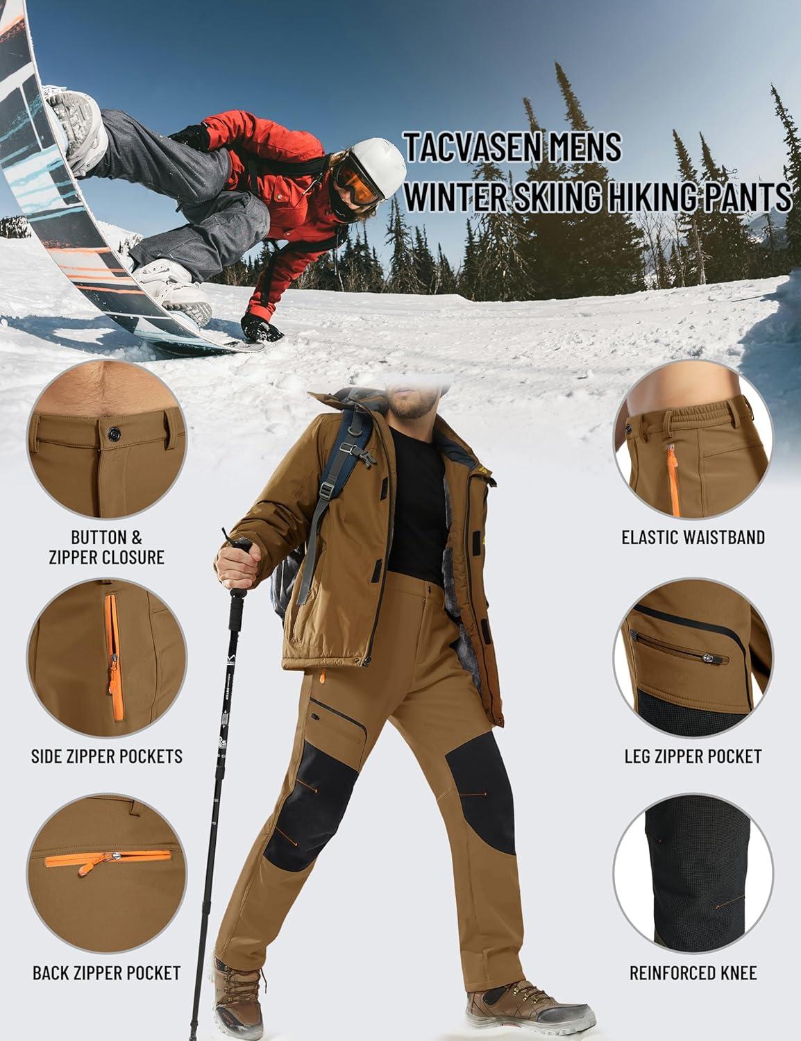 TACVASEN Men’s Snow Ski Pants Fleece Lined Winter Pants for Men Water Resistant Thermal Snowboard Hiking Hunting Work(Fl Orange)