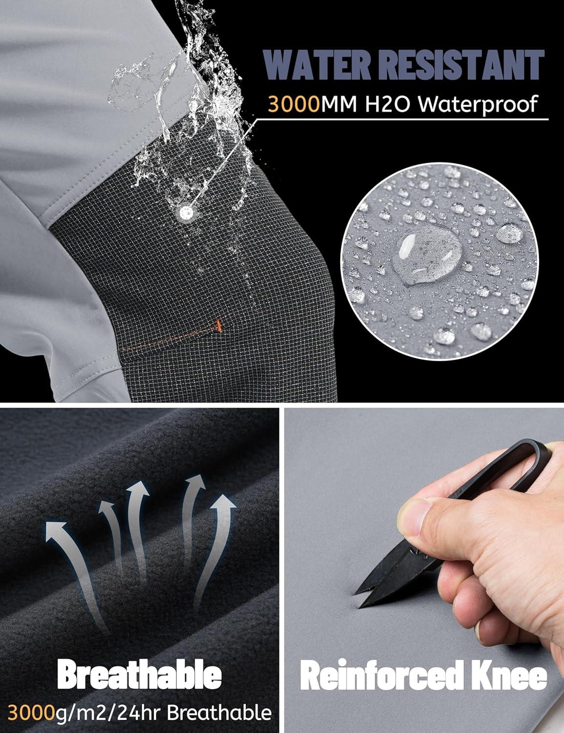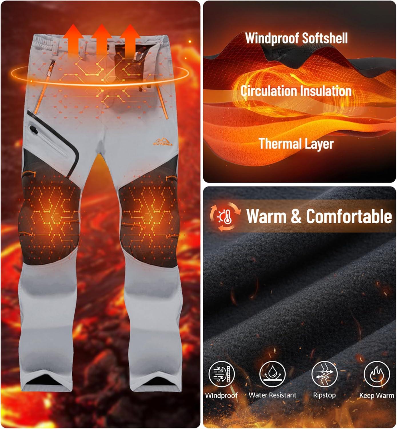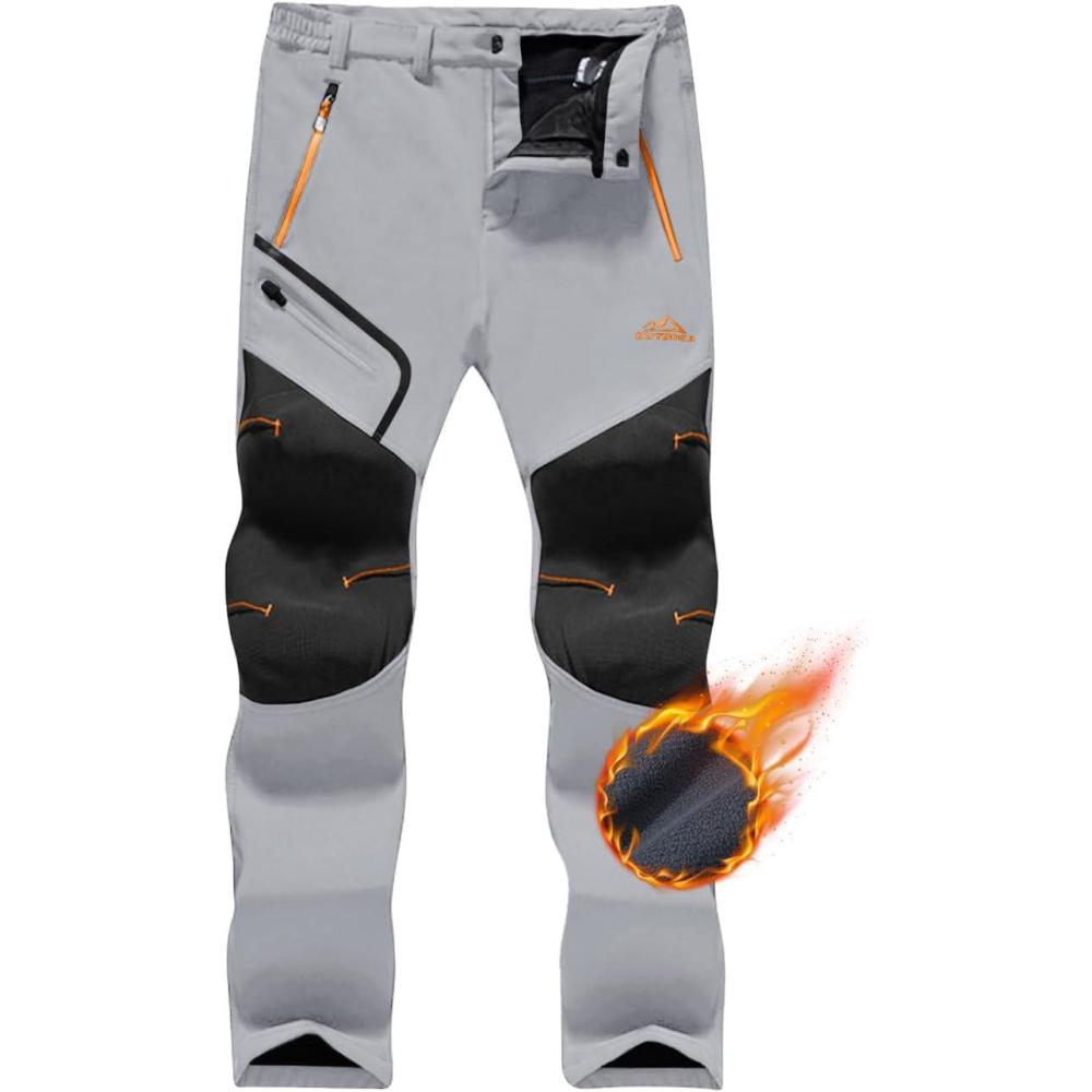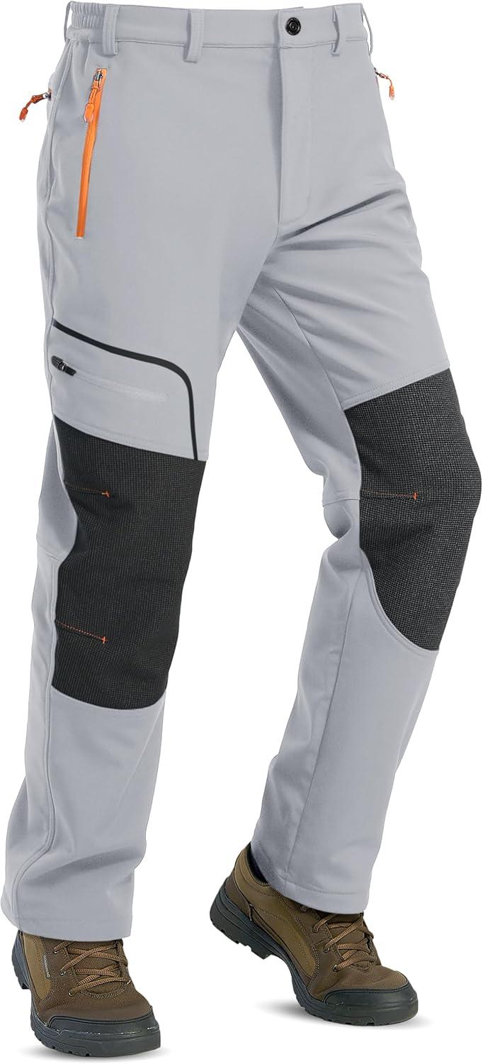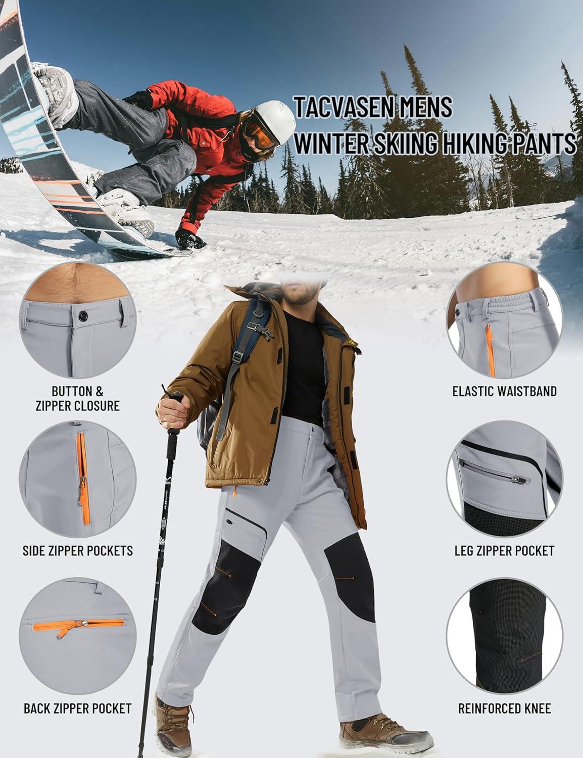 TACVASEN Men’s Snow Ski Pants Fleece Lined Winter Pants for Men Water Resistant Thermal Snowboard Hiking Hunting Work(Light Grey)