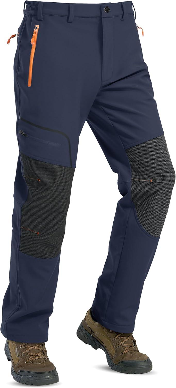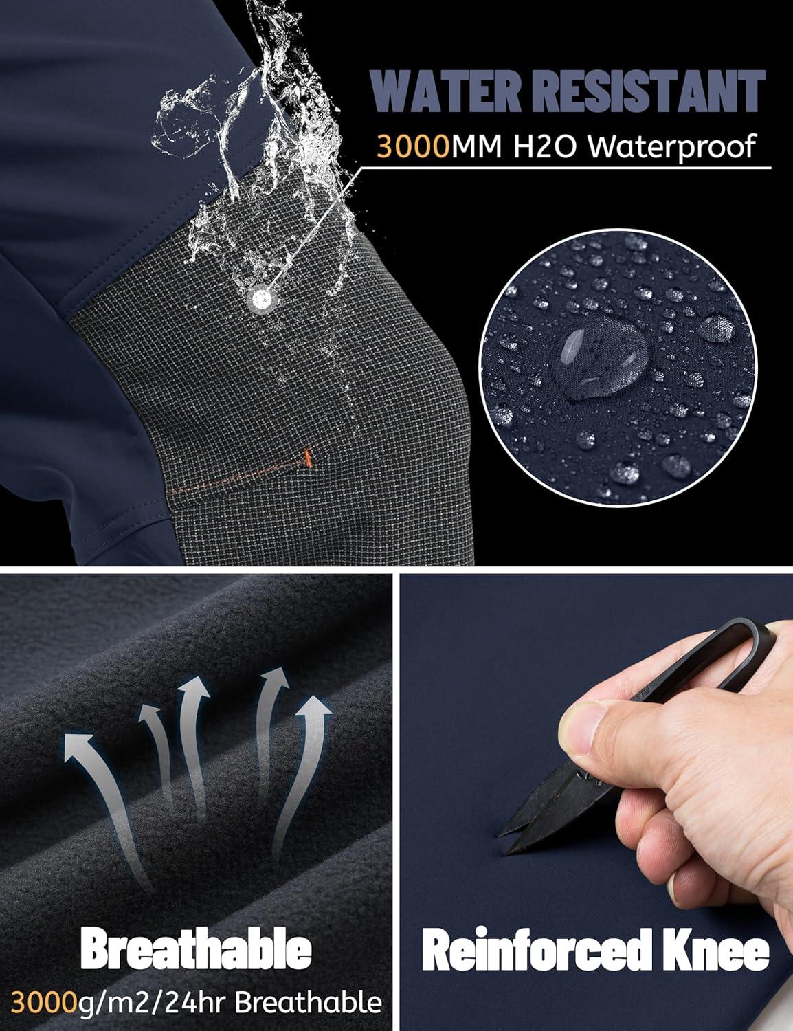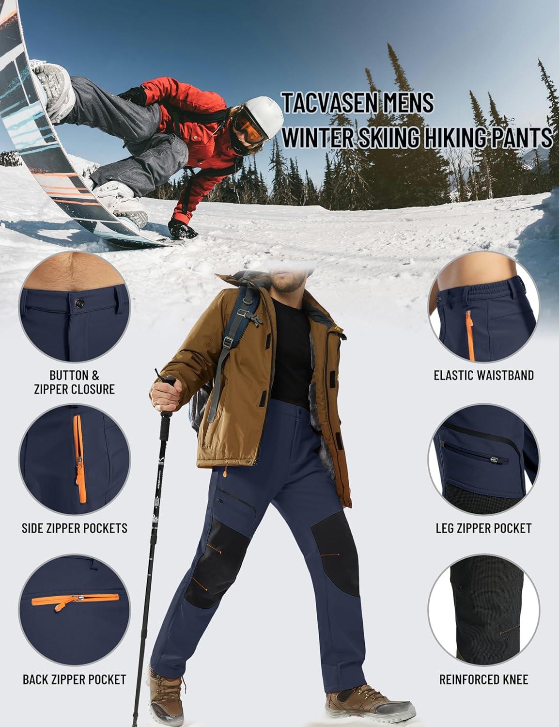 TACVASEN Men’s Snow Ski Pants Fleece Lined Winter Pants for Men Water Resistant Thermal Snowboard Hiking Hunting Work(Navy)