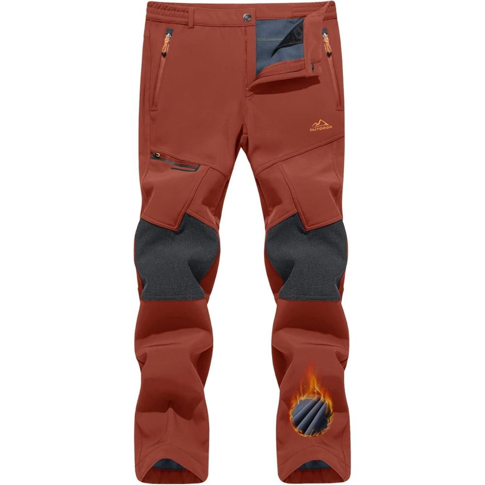 TACVASEN Men’s Snow Ski Pants Winter Fleece Lined Pants for Mens Water Resistant Snowboarding Hiking(Orange Red)