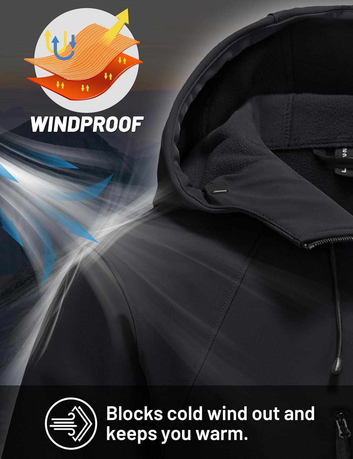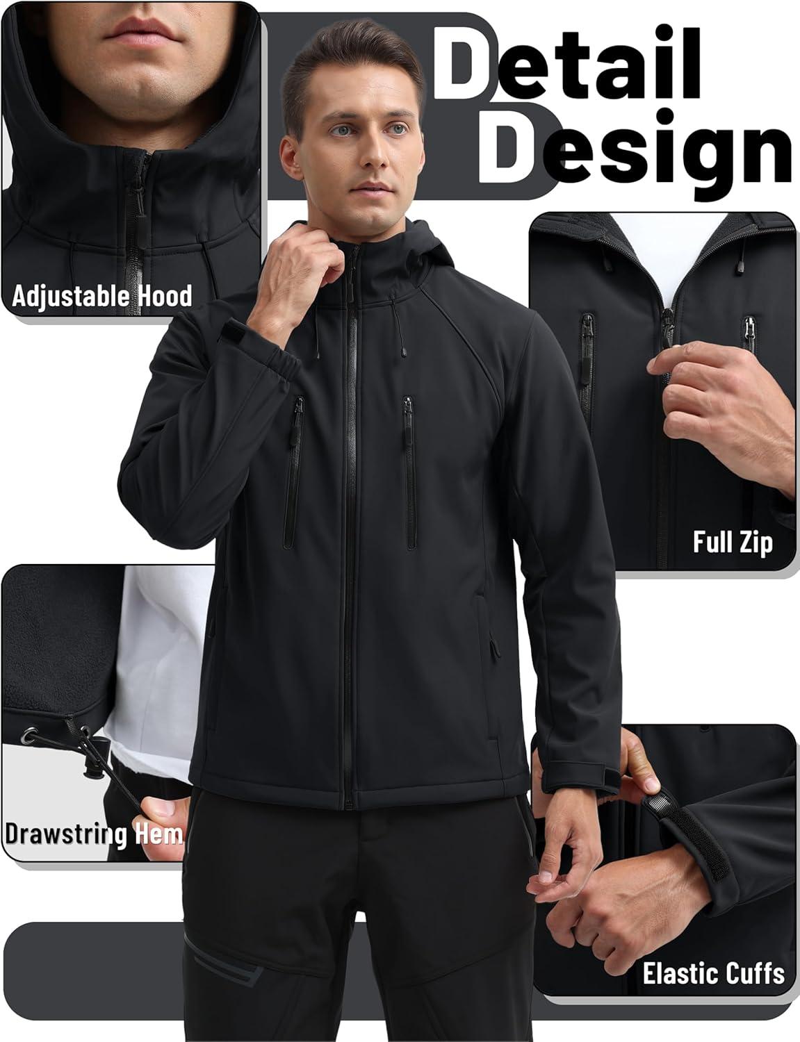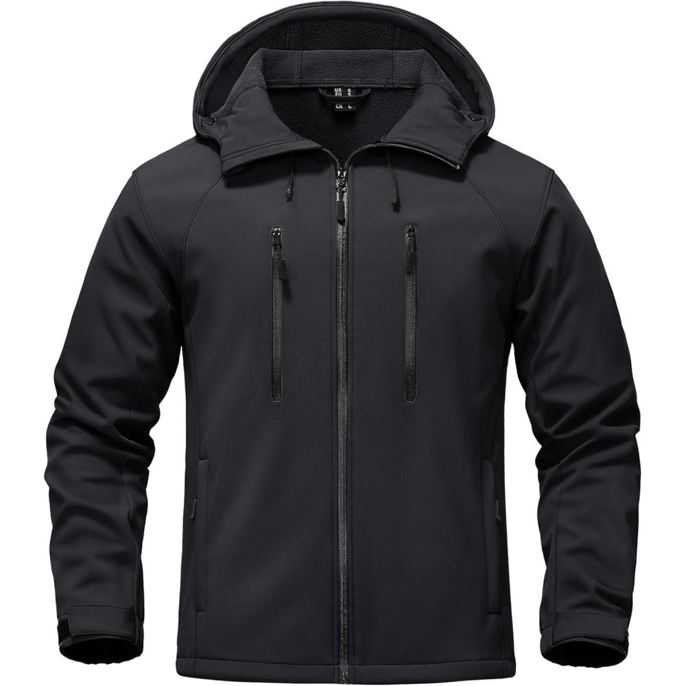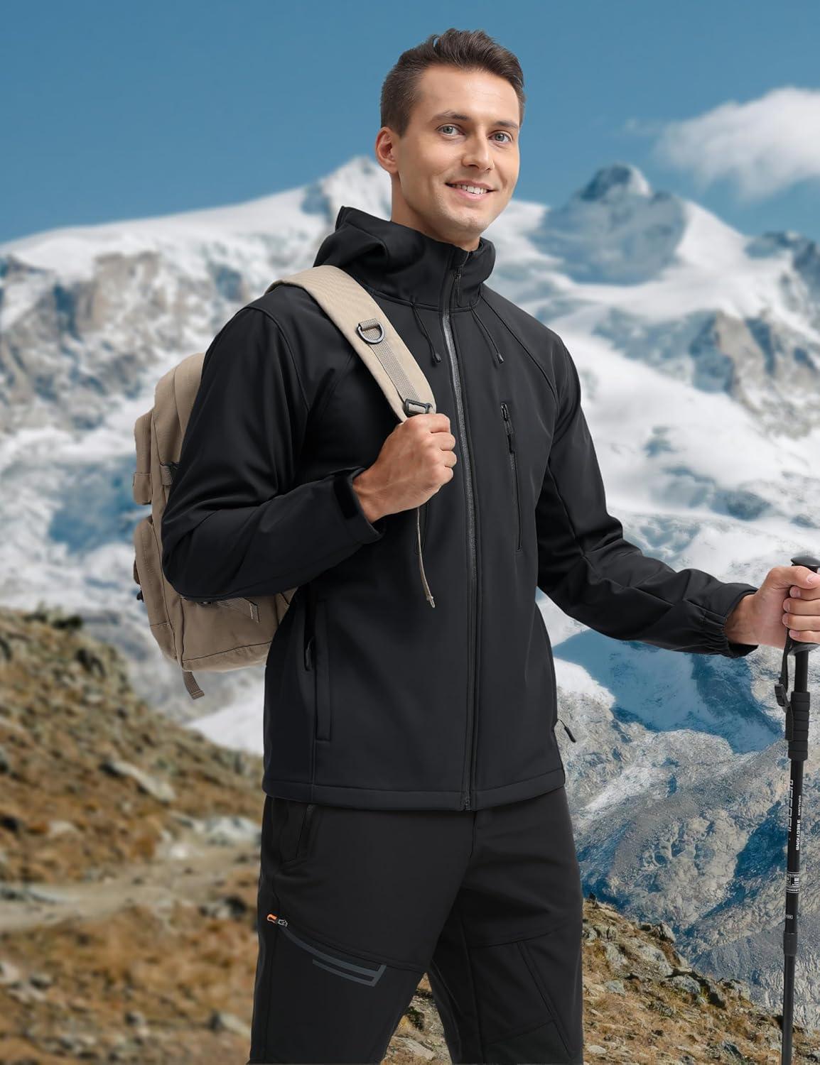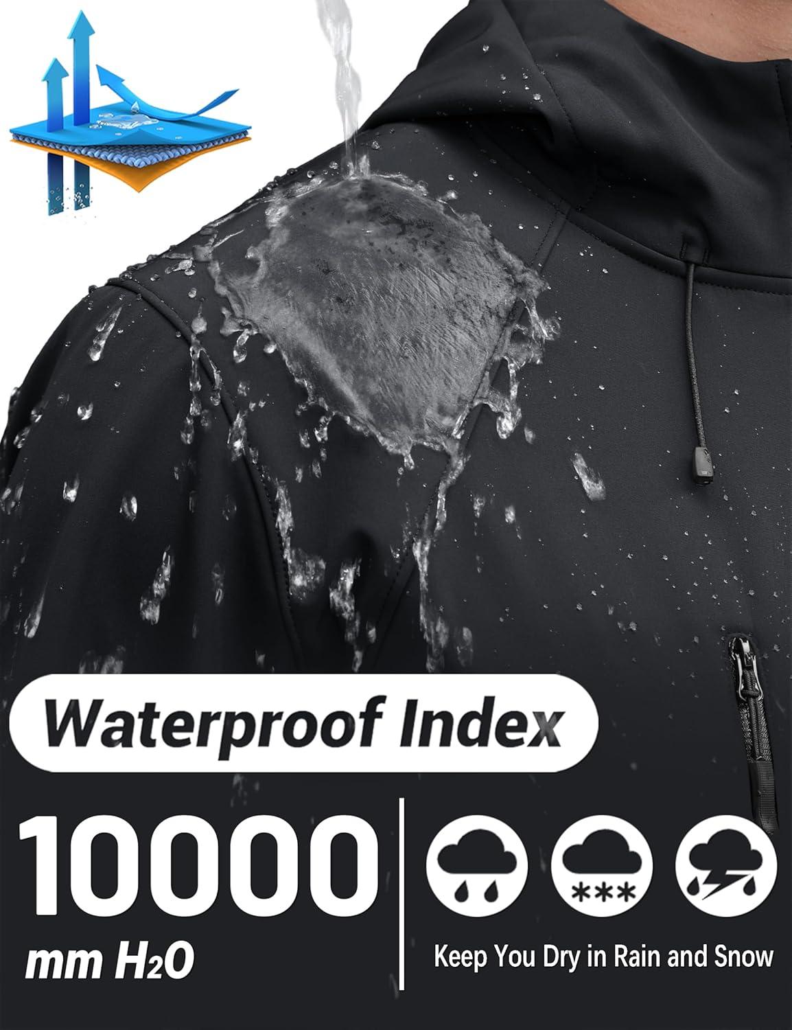 TACVASEN Men’s Softshell Jacket Winter Fleece Waterproof Lightweight Warm Windbreaker Rain Coat Outdoor Hiking Ski Travel(Black)