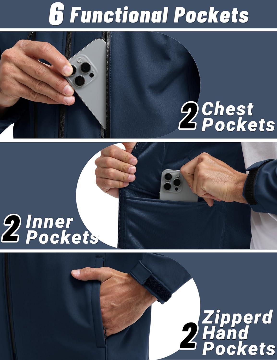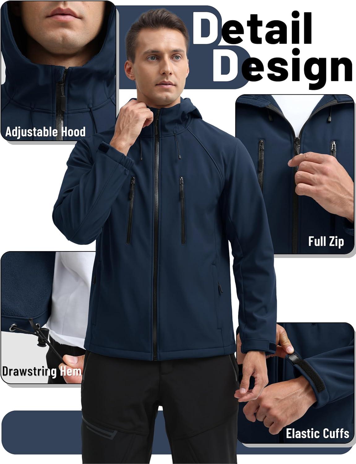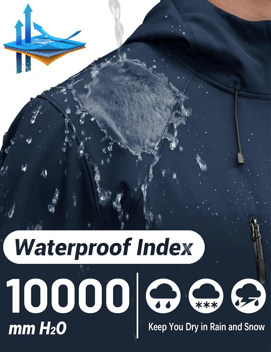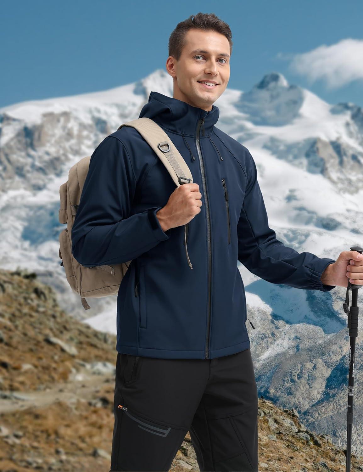 TACVASEN Men’s Softshell Jacket Winter Fleece Waterproof Lightweight Warm Windbreaker Rain Coat Outdoor Hiking Ski Travel(Navy)
