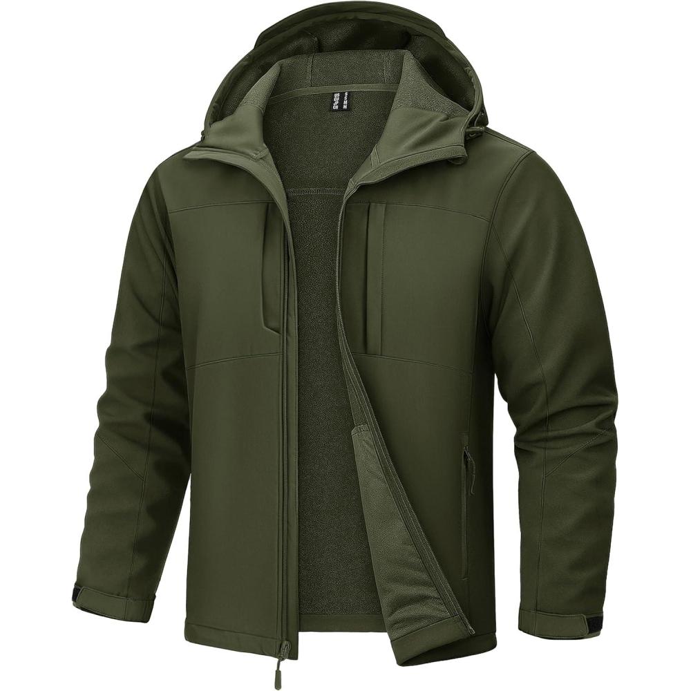 TACVASEN Men’s Softshell Jacket with Hood Waterproof Tactical Fleece Coat Winter Windbreaker Lightweight Rain Jackets(Armygreen)