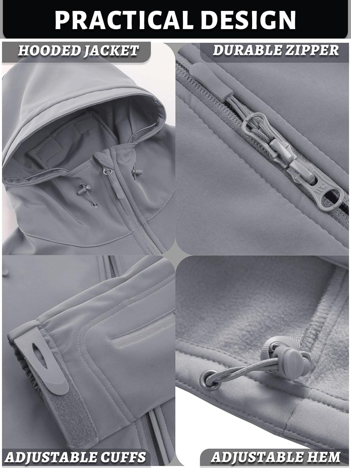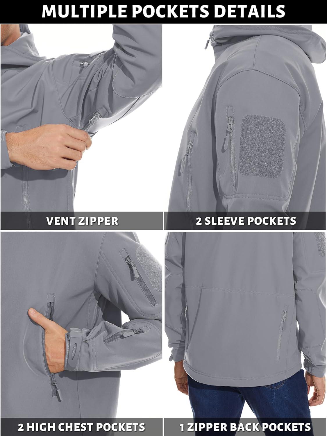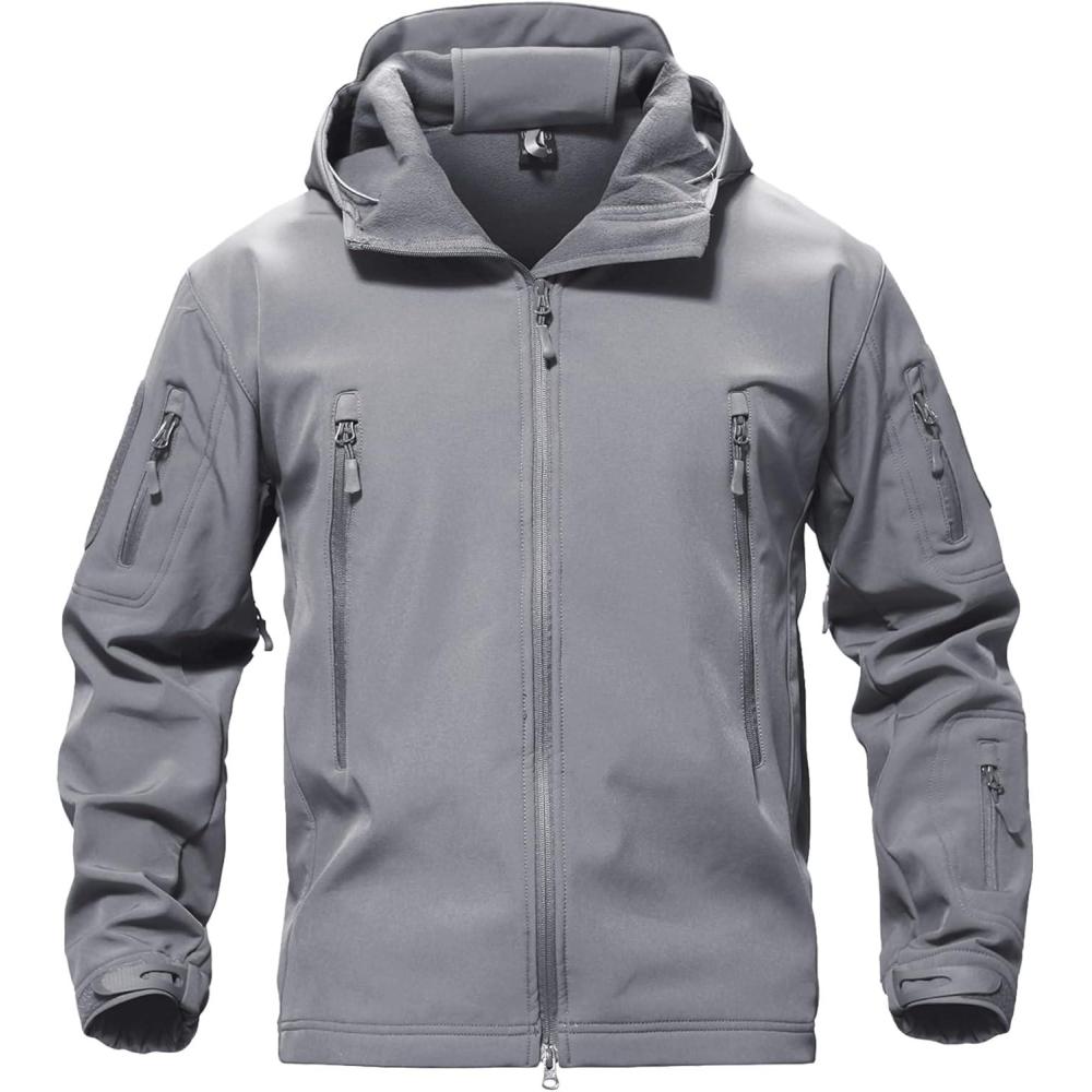 TACVASEN Men’s Special Ops Military Tactical Soft Shell Winter Warm Fleece Lined Jacket Rain Hood Coat Hiking Snowboard(#03-gray)