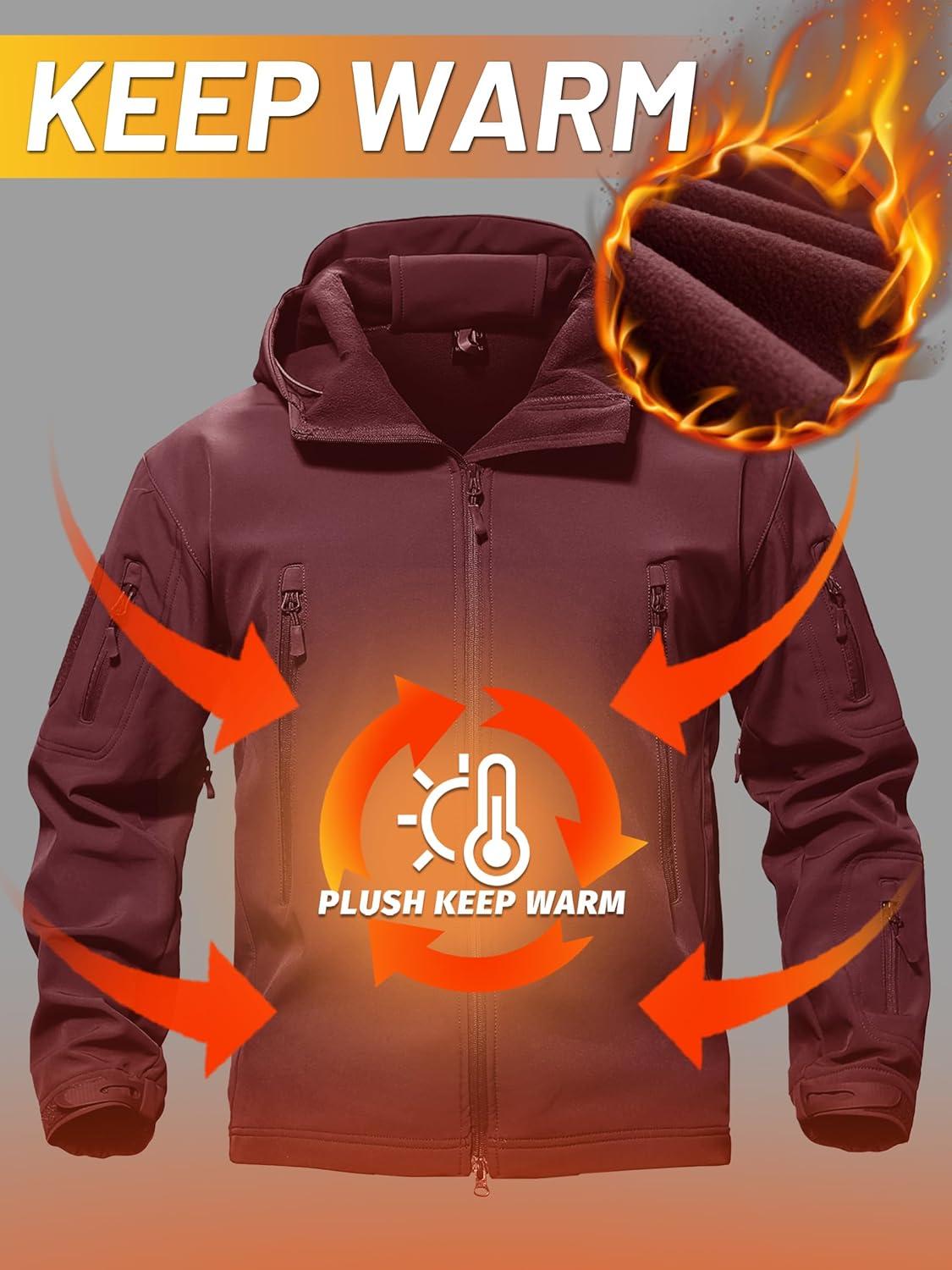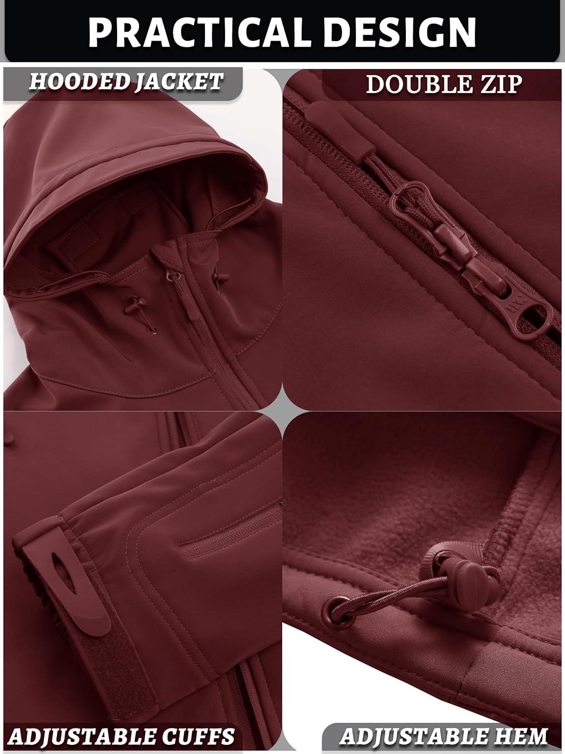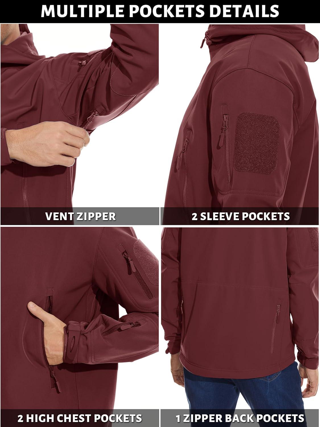 TACVASEN Men’s Special Ops Military Tactical Soft Shell Winter Warm Fleece Lined Jacket Rain Hood Coat Hiking Snowboard(#09-wine Red)