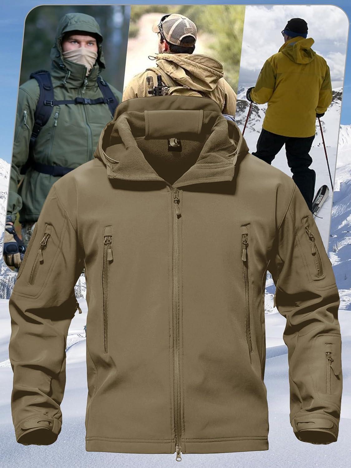 imageTACVASEN Mens Special Ops Military Tactical Soft Shell Winter Warm Fleece Lined Jacket Rain Hood Coat Hiking Snowboard12coffee