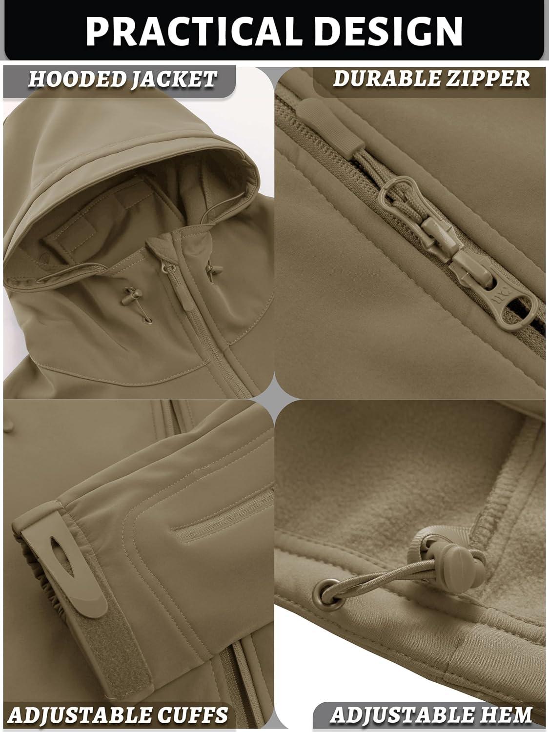 TACVASEN Men’s Special Ops Military Tactical Soft Shell Winter Warm Fleece Lined Jacket Rain Hood Coat Hiking Snowboard(#11-khaki)