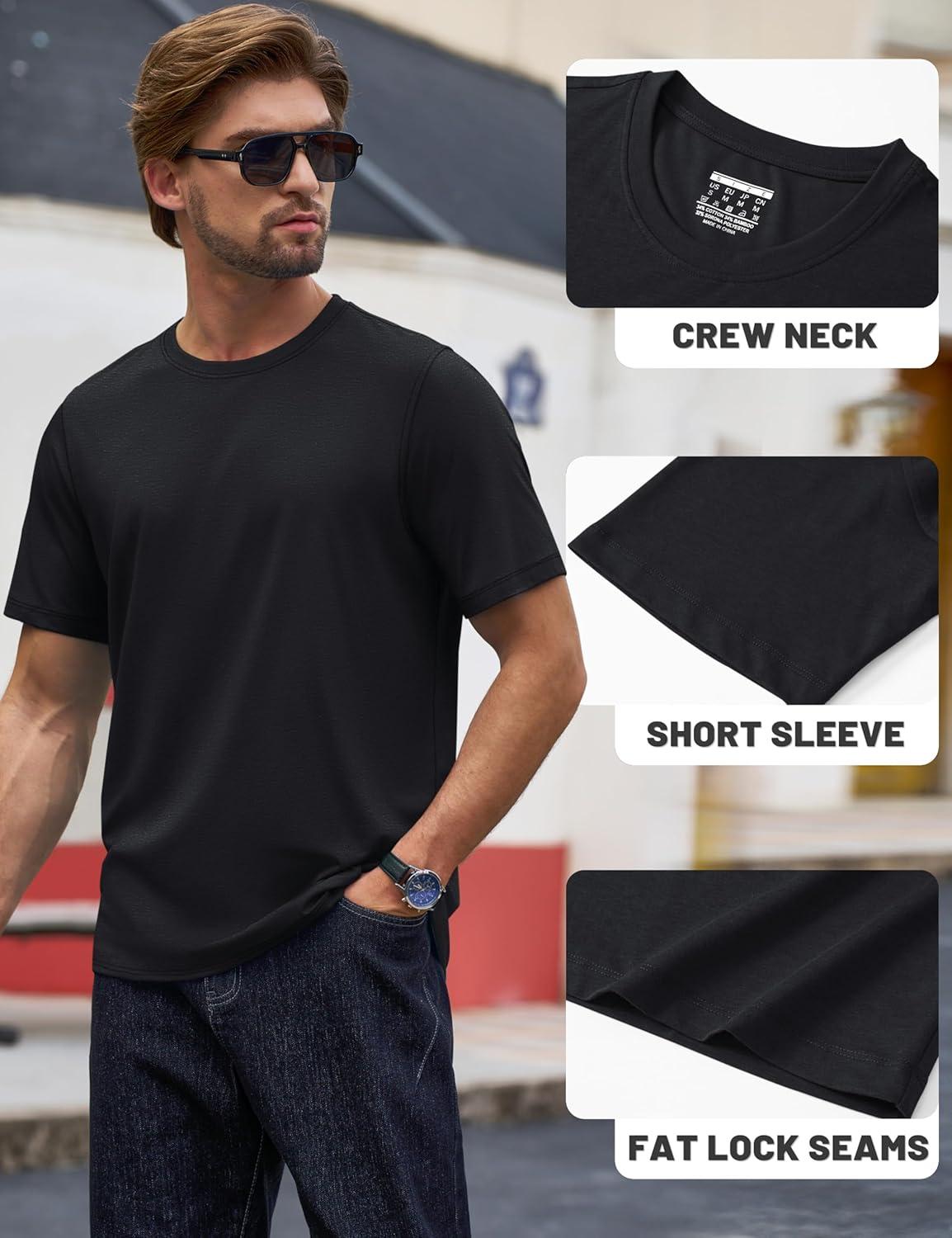 TACVASEN Men’s T-Shirts Short Sleeve UPF50+ Mositure Wicking Shirts Lightweight Cooling Crew Neck Tshirt(Black)