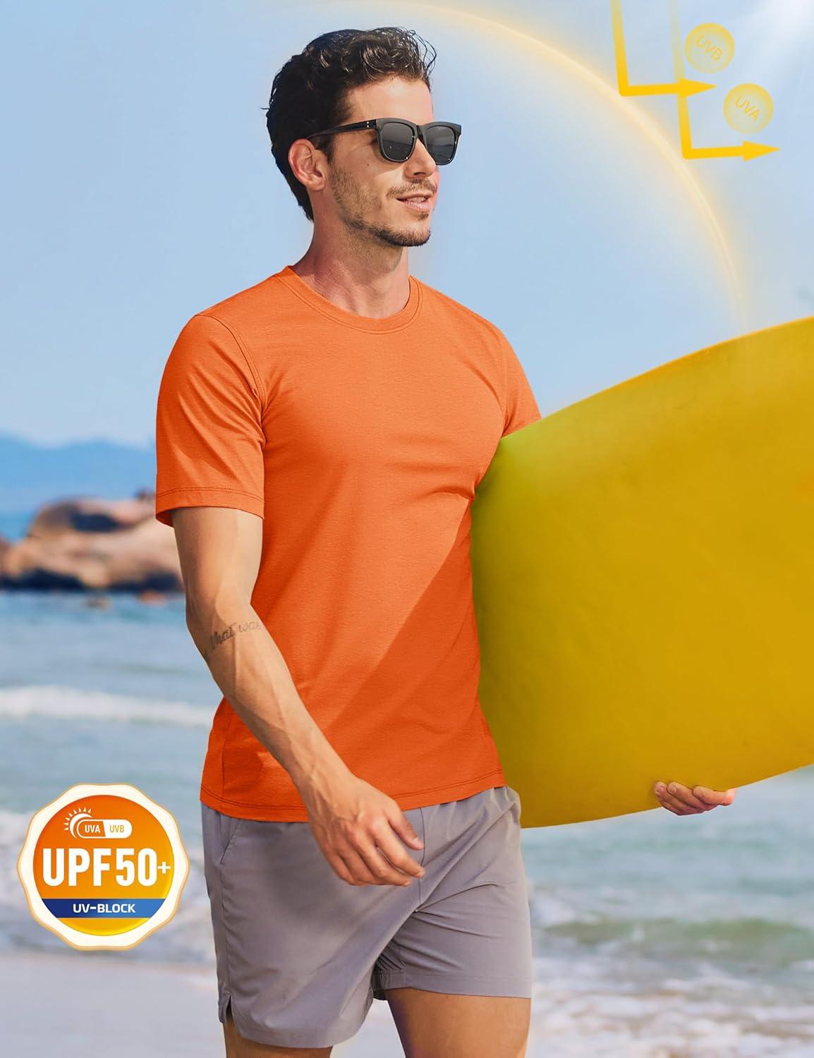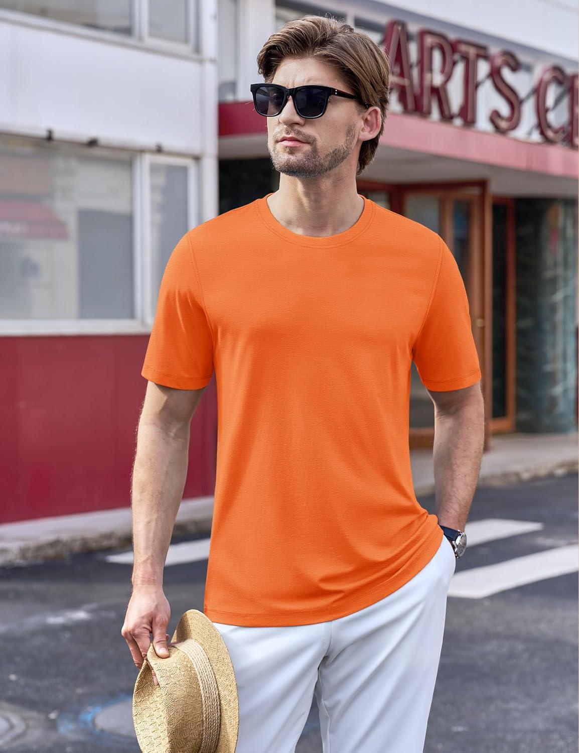 TACVASEN Men’s T-Shirts Short Sleeve UPF50+ Mositure Wicking Shirts Lightweight Cooling Crew Neck Tshirt(Orange)