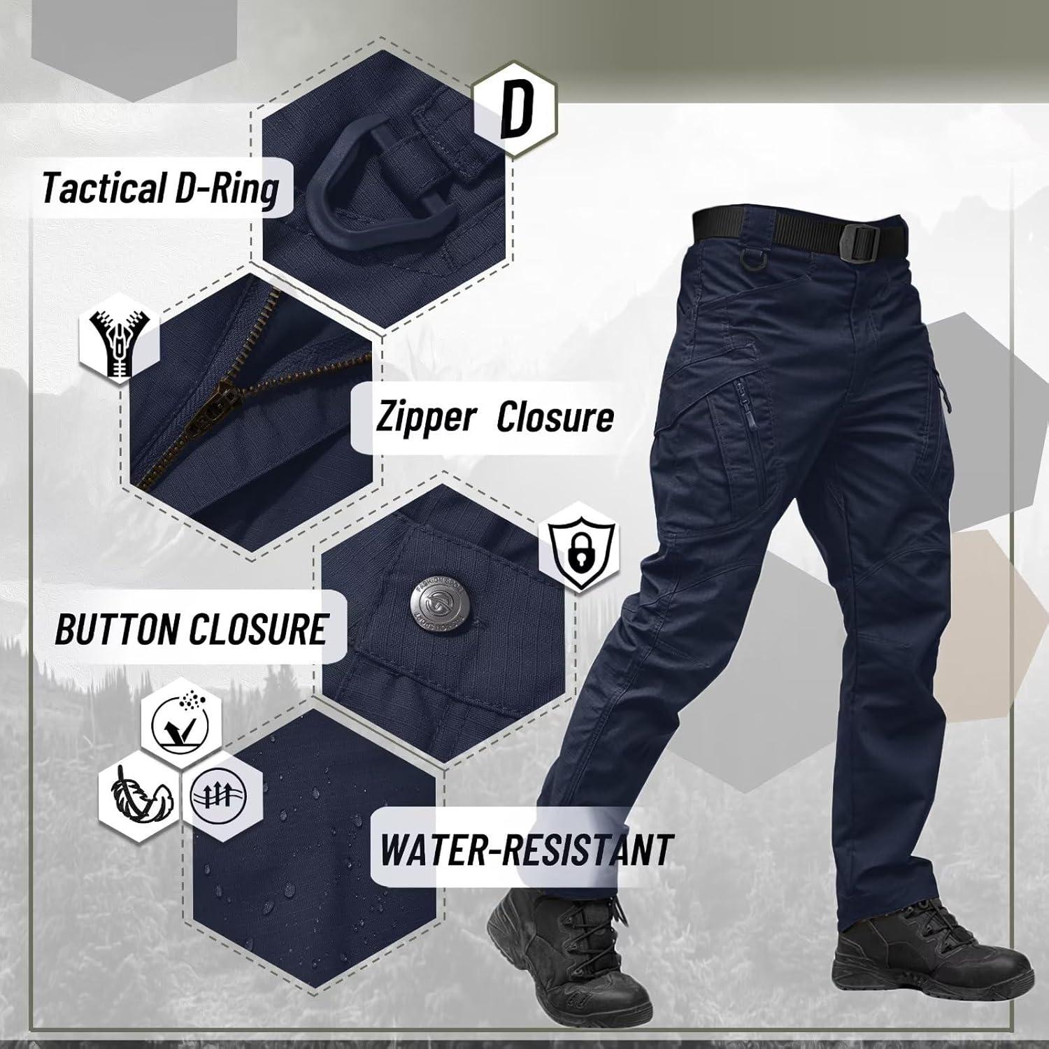 TACVASEN Men’s Tactical Pants 9 Pockets Cargo Hiking Pants Lightweight Work Pants for Men Construction Water Resistant Navy 34