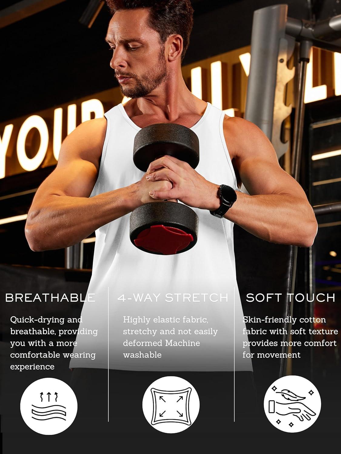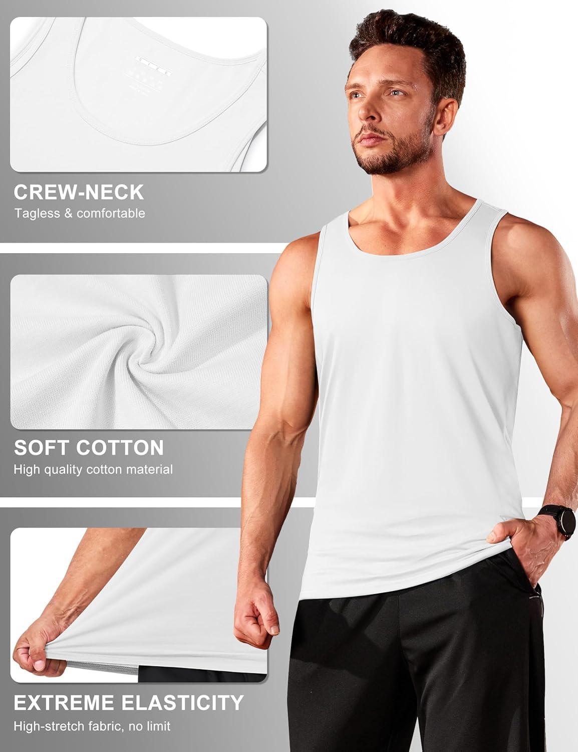 TACVASEN Men’s Tank Top Cotton Moisture Wicking Muscle Shirt Summer Sleeveless Shirts Gym Workout Tank(#02-white)