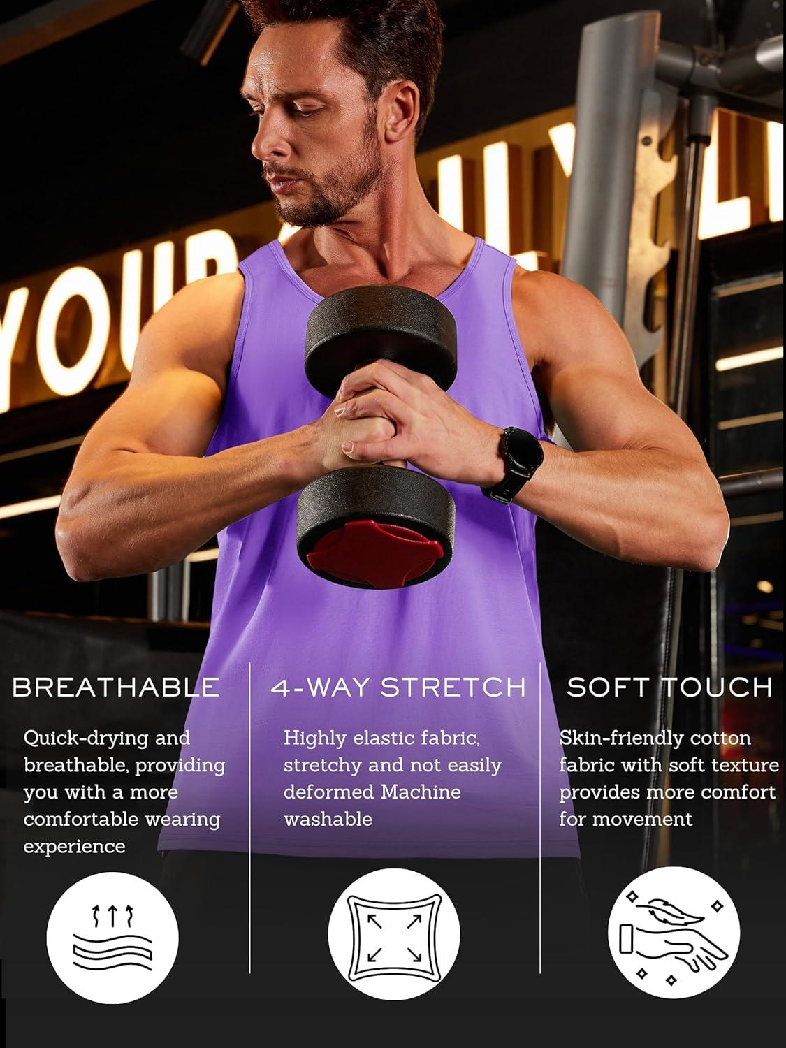 TACVASEN Men’s Tank Top Cotton Moisture Wicking Muscle Shirt Summer Sleeveless Shirts Gym Workout Tank(#10-light Purple)