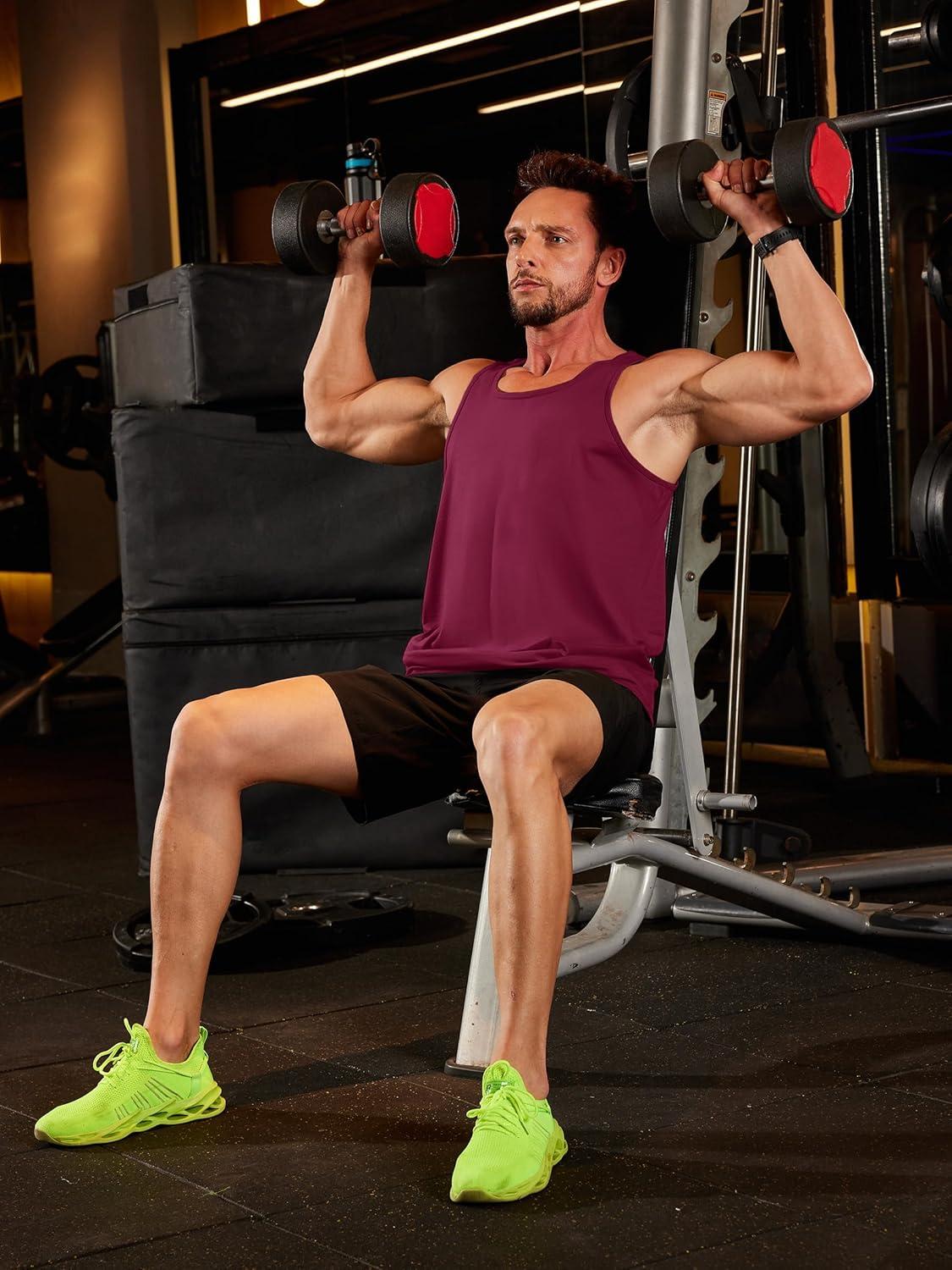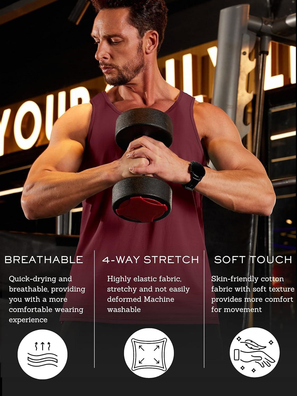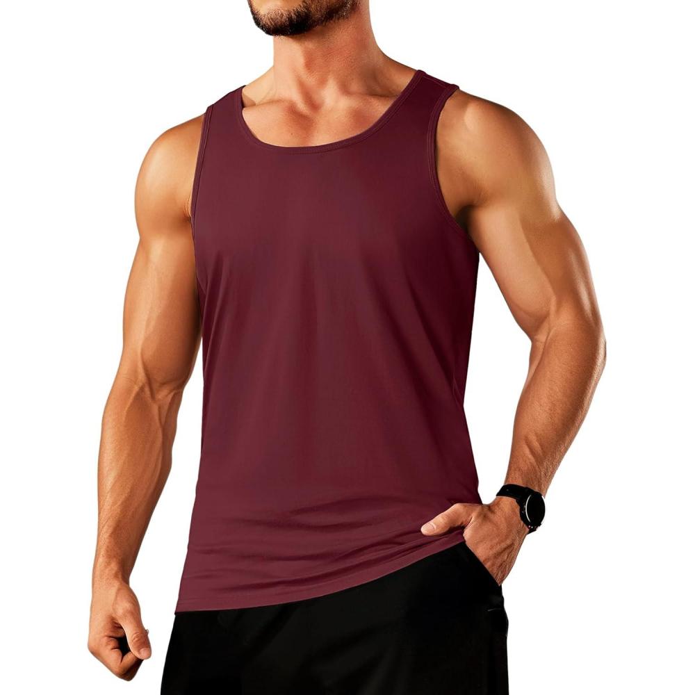 TACVASEN Men’s Tank Top Cotton Moisture Wicking Muscle Shirt Summer Sleeveless Shirts Gym Workout Tank(#14-wine Red)