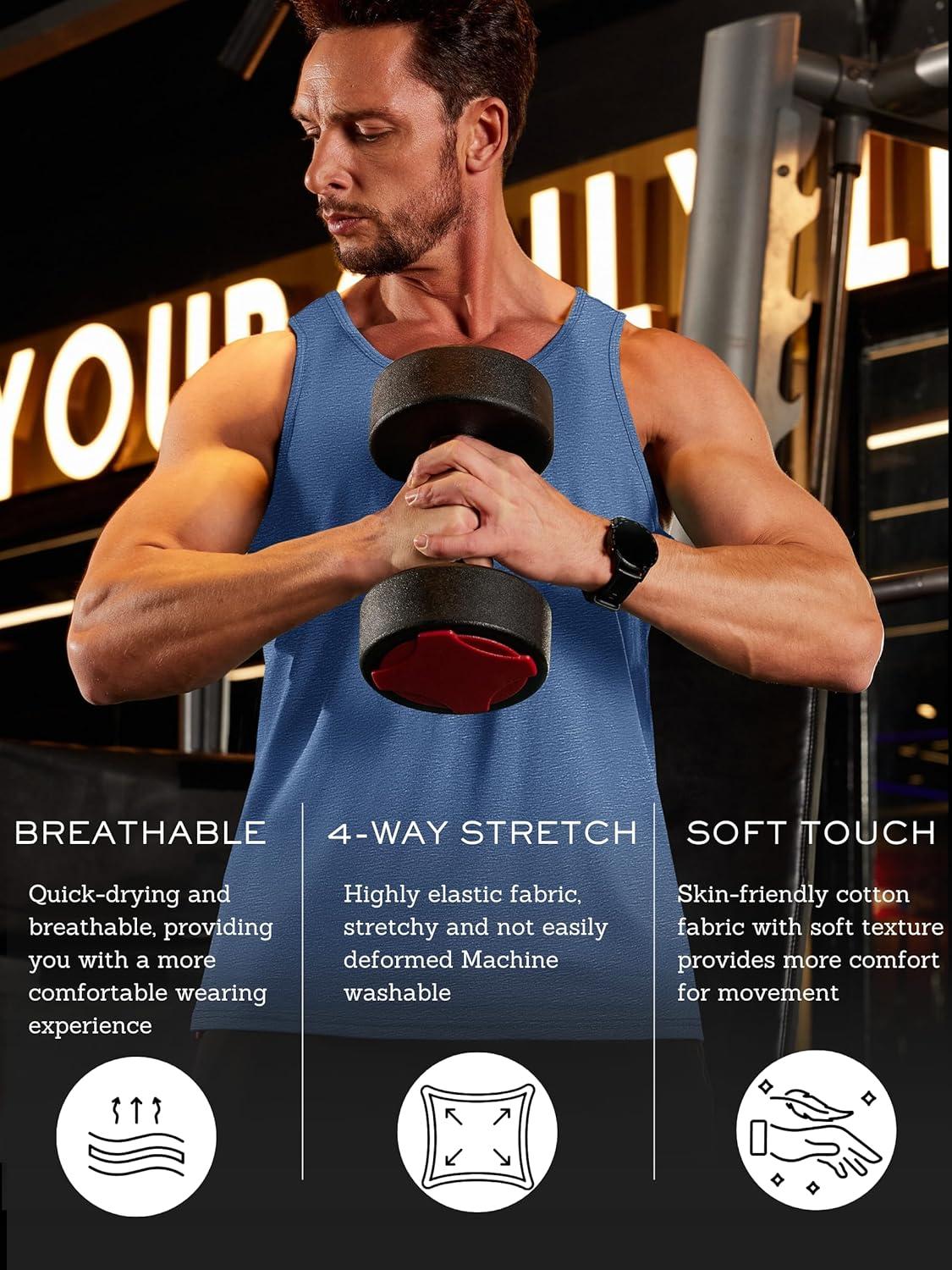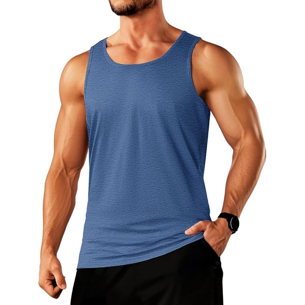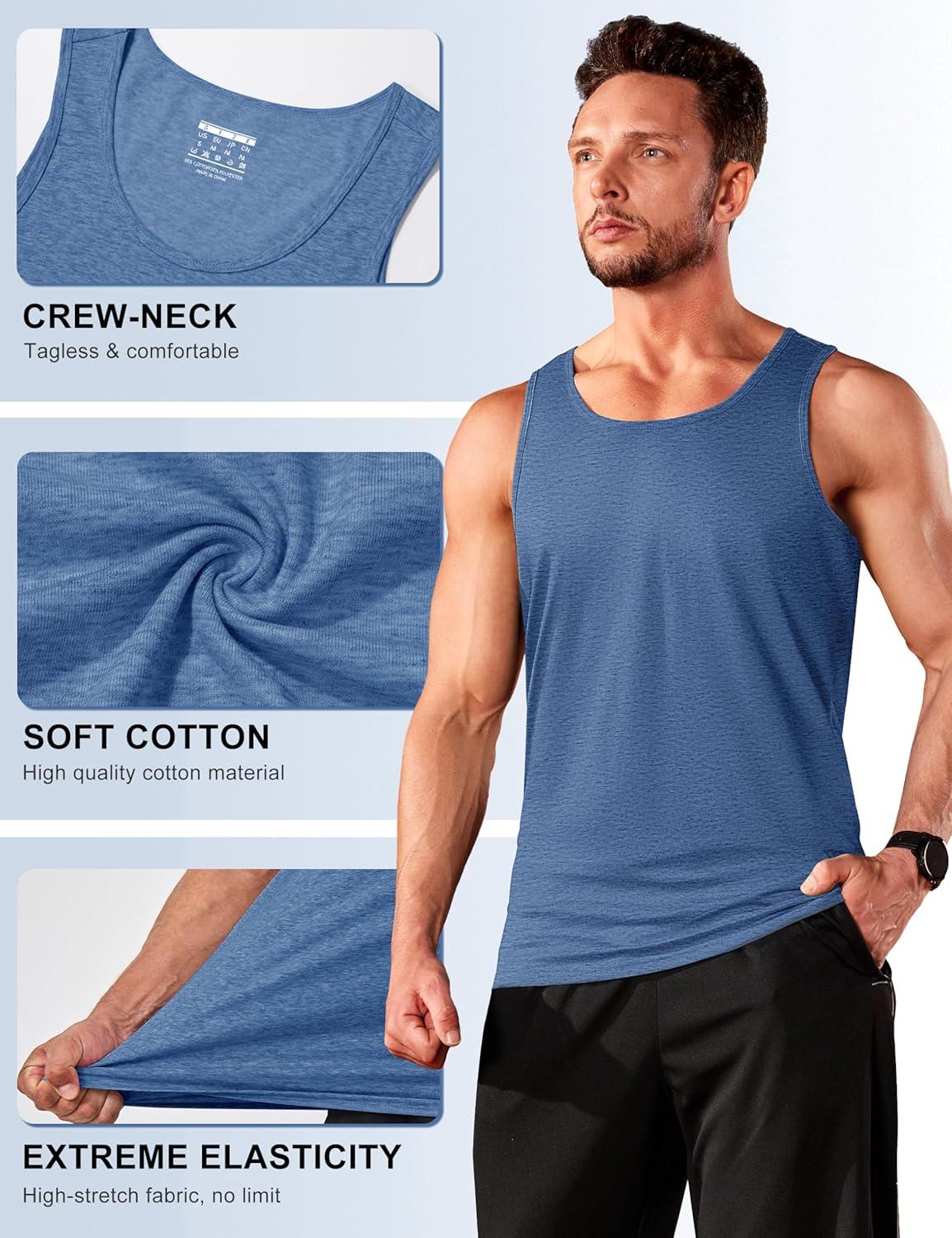TACVASEN Men’s Tank Top Cotton Moisture Wicking Muscle Shirt Summer Sleeveless Shirts Gym Workout Tank(#23-grey Blue Hemp)