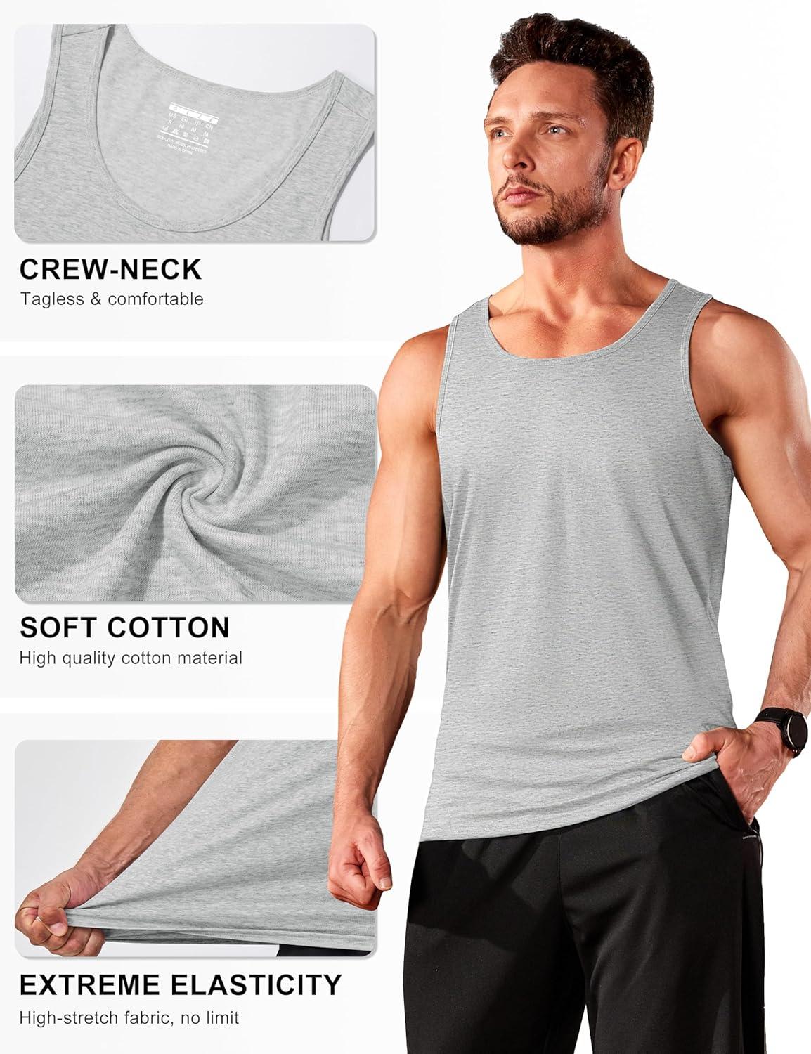 TACVASEN Men’s Tank Top Cotton Moisture Wicking Muscle Shirt Summer Sleeveless Shirts Gym Workout Tank(#23-grey Blue Hemp)