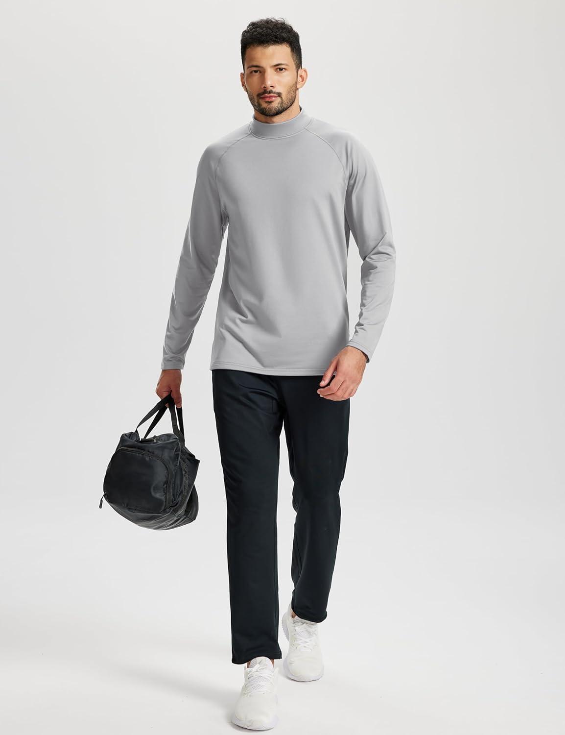TACVASEN Mens Thermal Fleece Shirt Mock Turtle Neck Base Layer Long Sleeve Athletic Warm Undershirt Winter Running Tops(Light Grey)