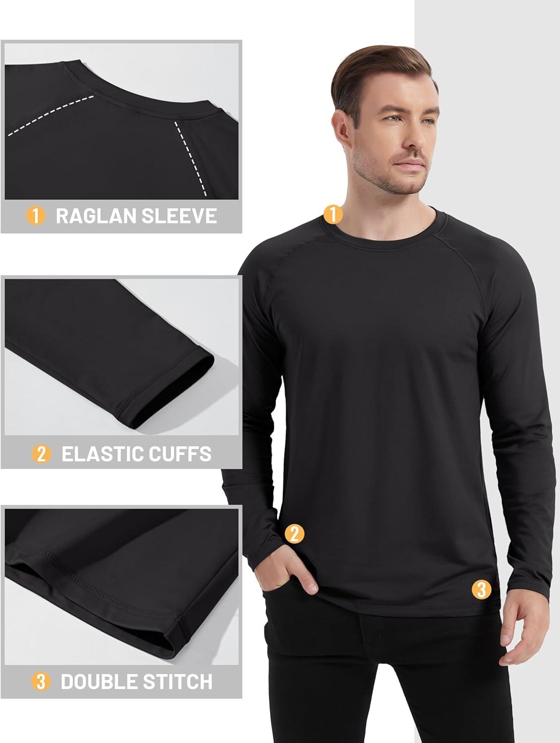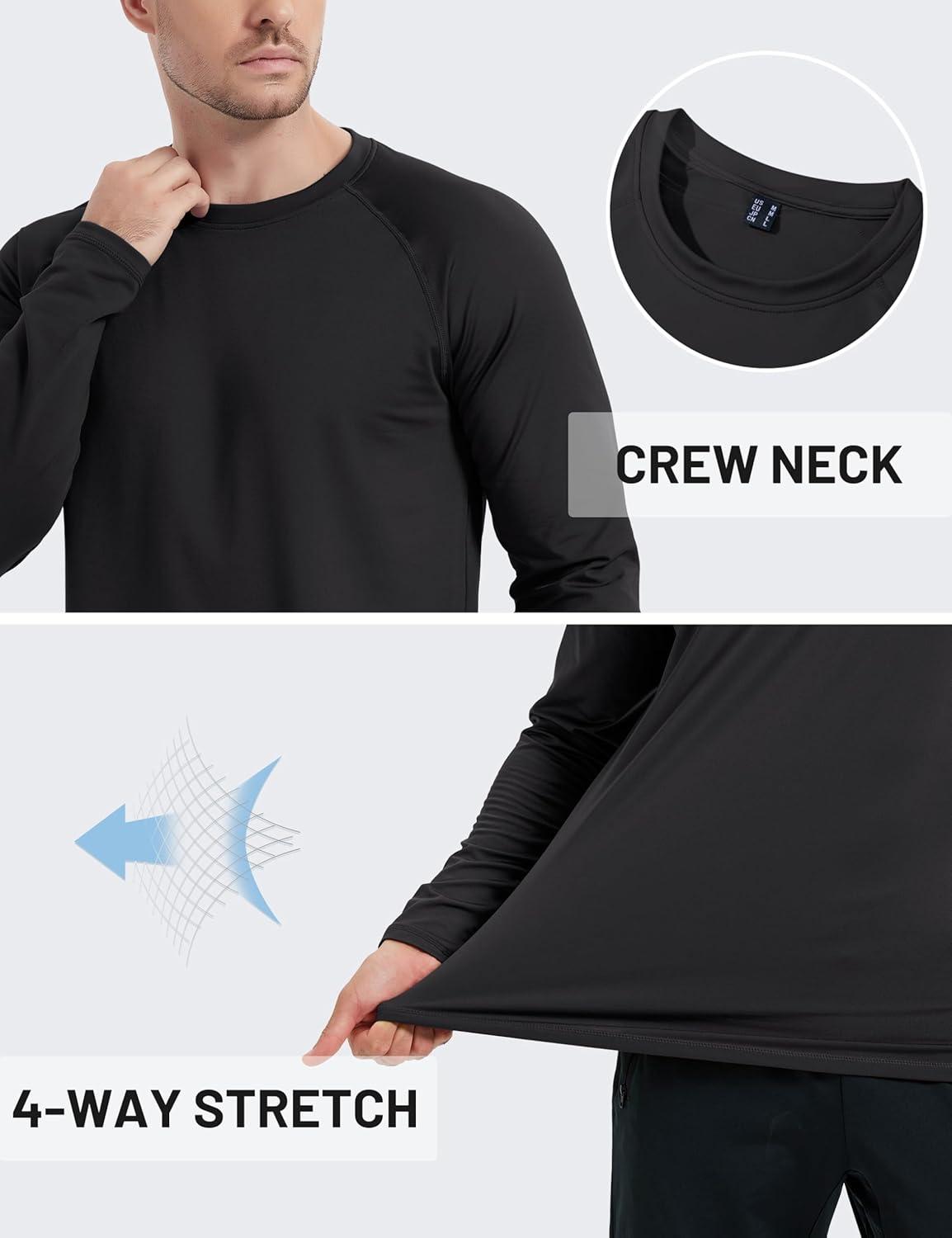 TACVASEN Men’s Thermal Shirt Long Sleeve Fleece Lined Base Layer Lightweight Athletic Undershirt Winter Tops Workout(01 Black)
