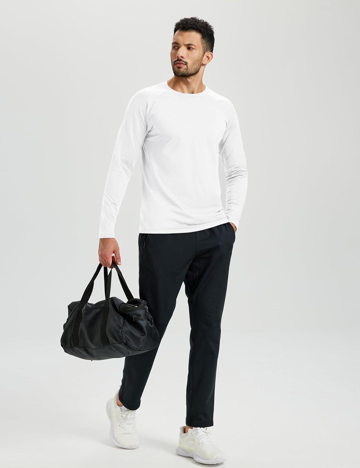 TACVASEN Men’s Thermal Shirt Long Sleeve Fleece Lined Base Layer Lightweight Athletic Undershirt Winter Tops Workout(02 White)