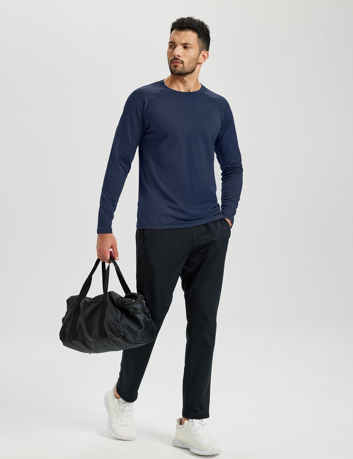 TACVASEN Men’s Thermal Shirt Long Sleeve Fleece Lined Base Layer Lightweight Athletic Undershirt Winter Tops Workout(03 Navy)