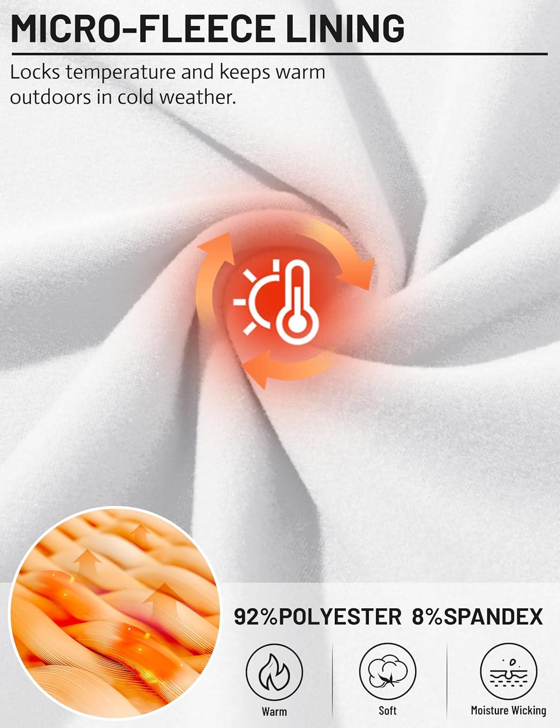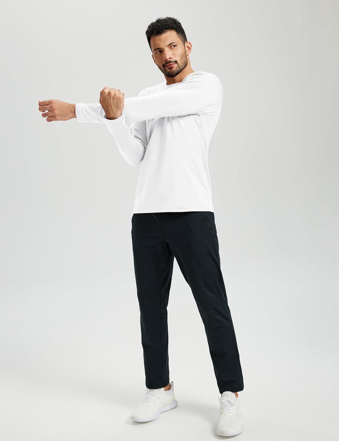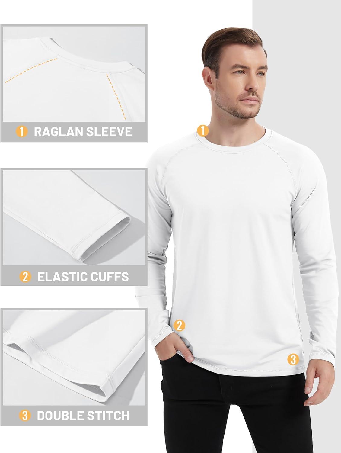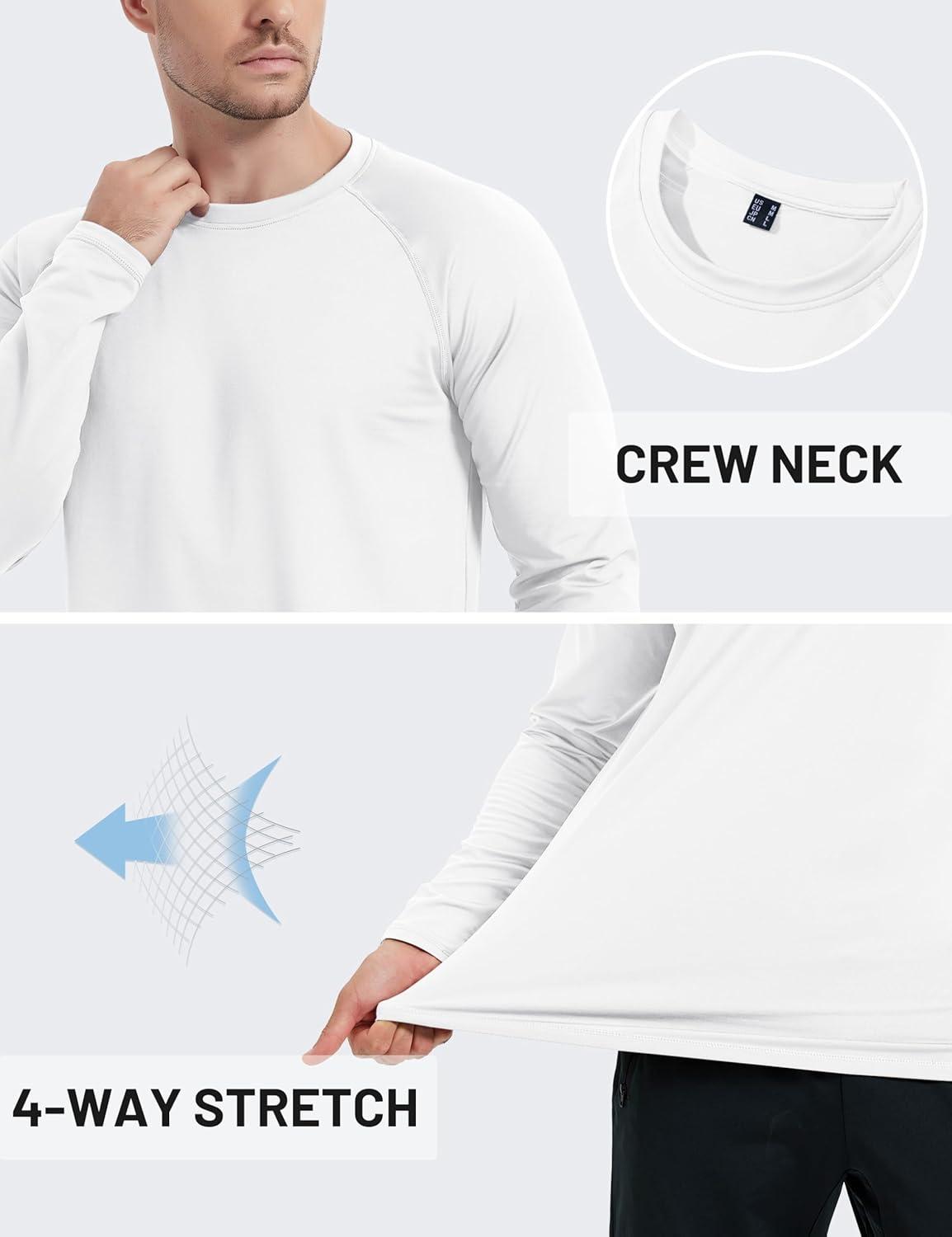 TACVASEN Mens Thermal Shirt Long Sleeve Fleece Lined Base Layer Lightweight Moisture Wicking Athletic Undershirt(02 White)