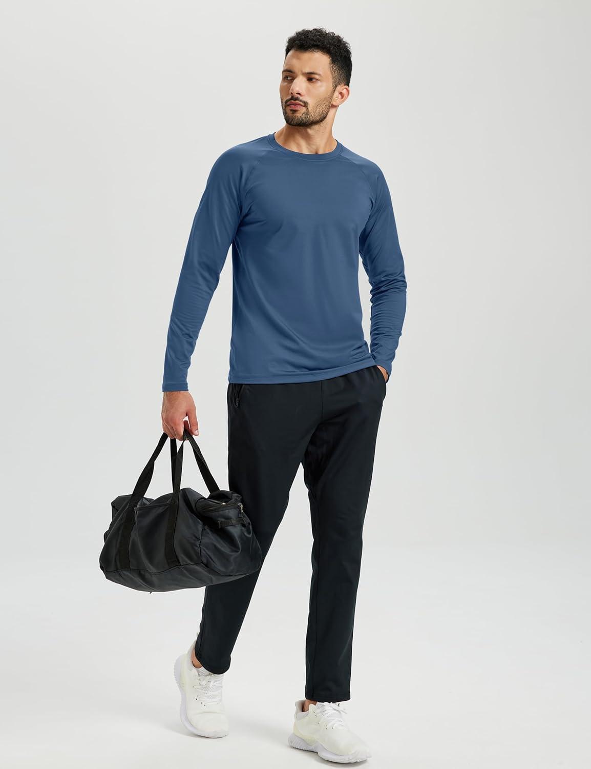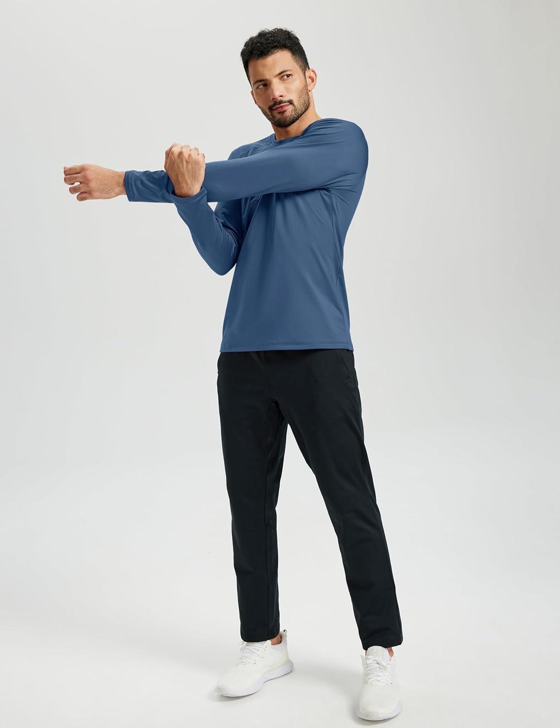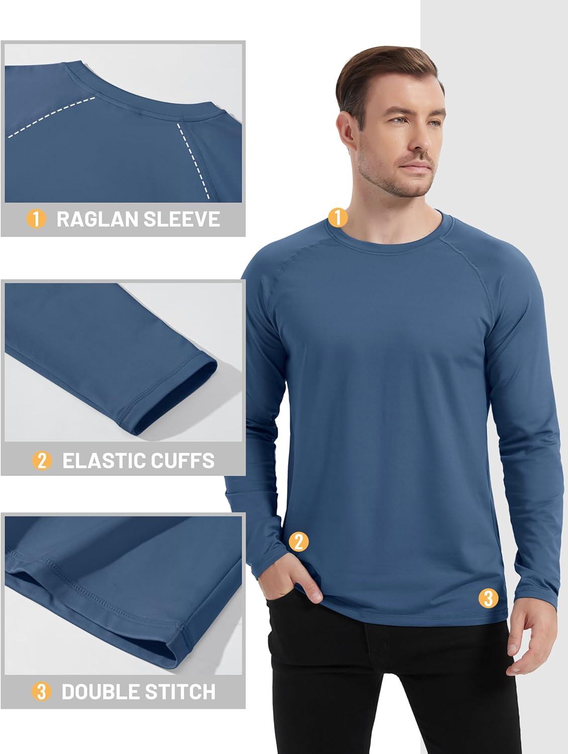 TACVASEN Mens Thermal Shirt Long Sleeve Fleece Lined Base Layer Lightweight Moisture Wicking Athletic Undershirt(04 Blue Gray)