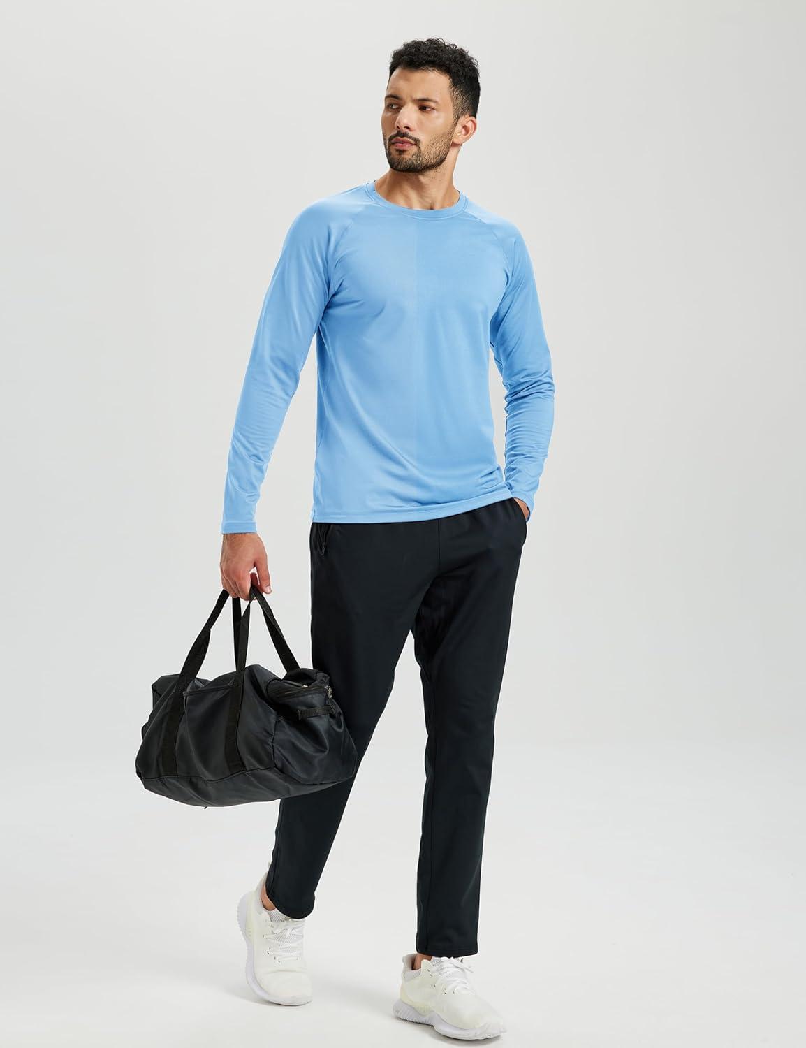 TACVASEN Mens Thermal Shirt Long Sleeve Fleece Lined Base Layer Lightweight Moisture Wicking Athletic Undershirt(09 Light Sky Blue)