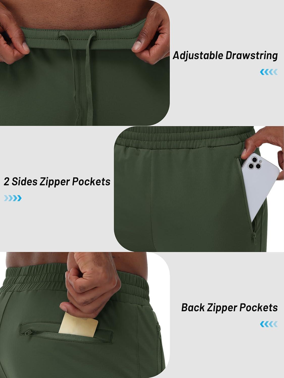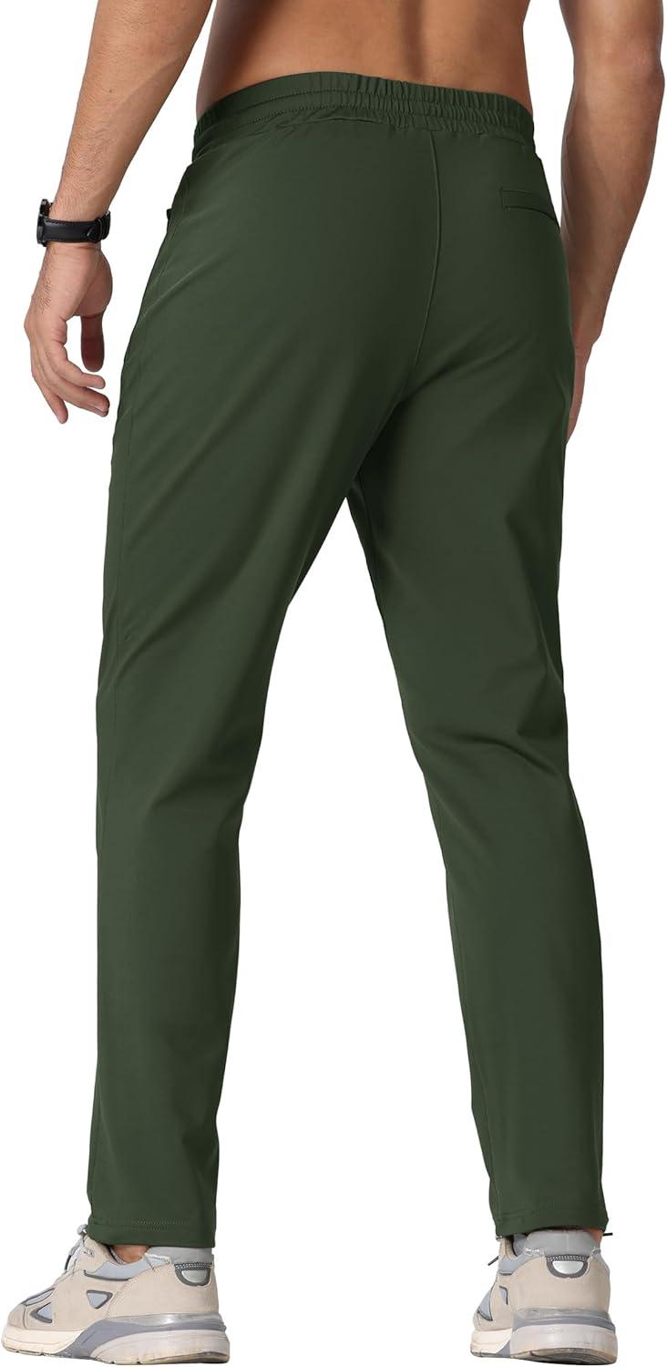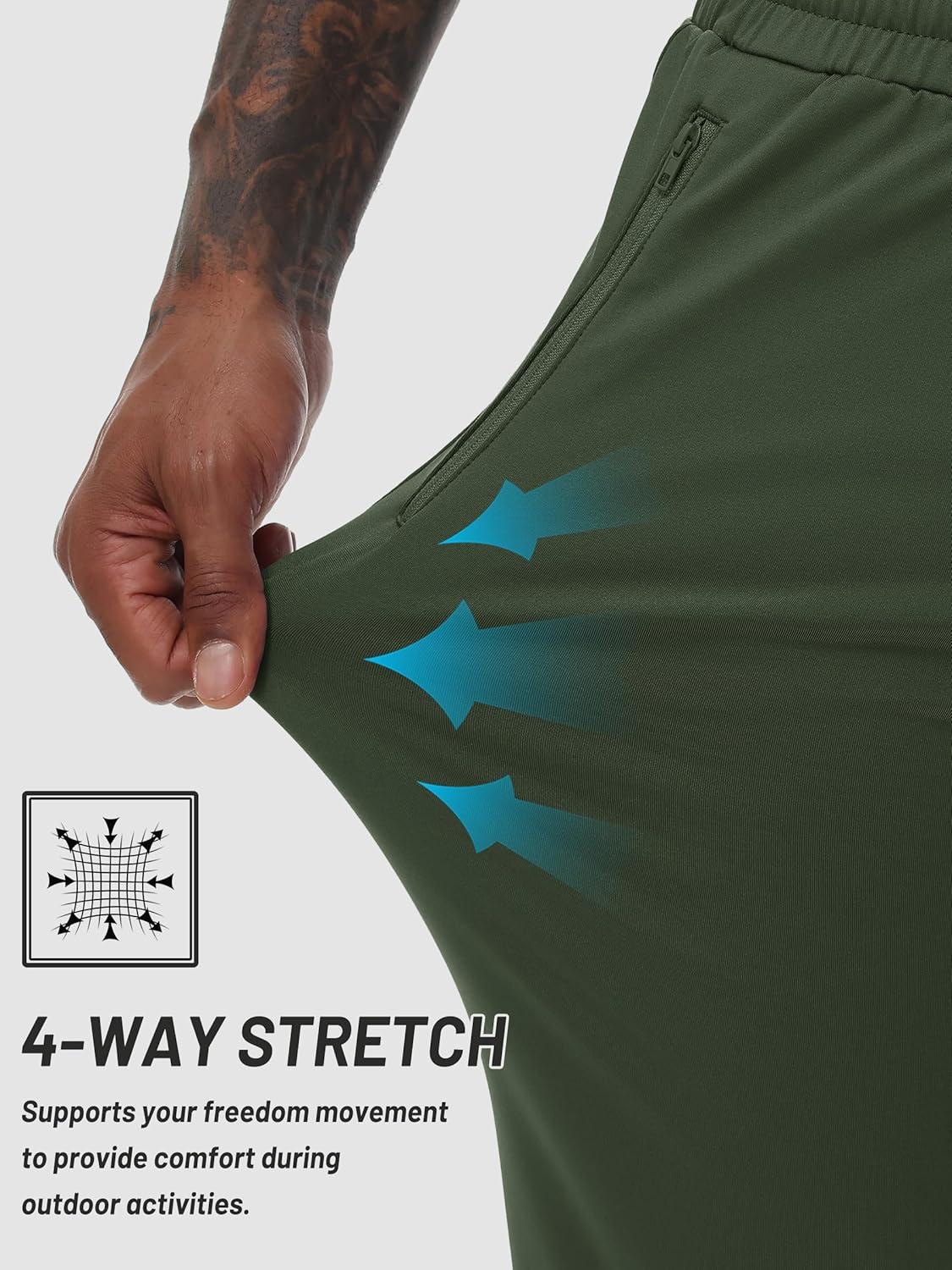TACVASEN Men’s Warm Sweatpants Winter Fleece Lined Water Resistant Pants Straight Leg with Zipper Pockets for Running(Army Green)