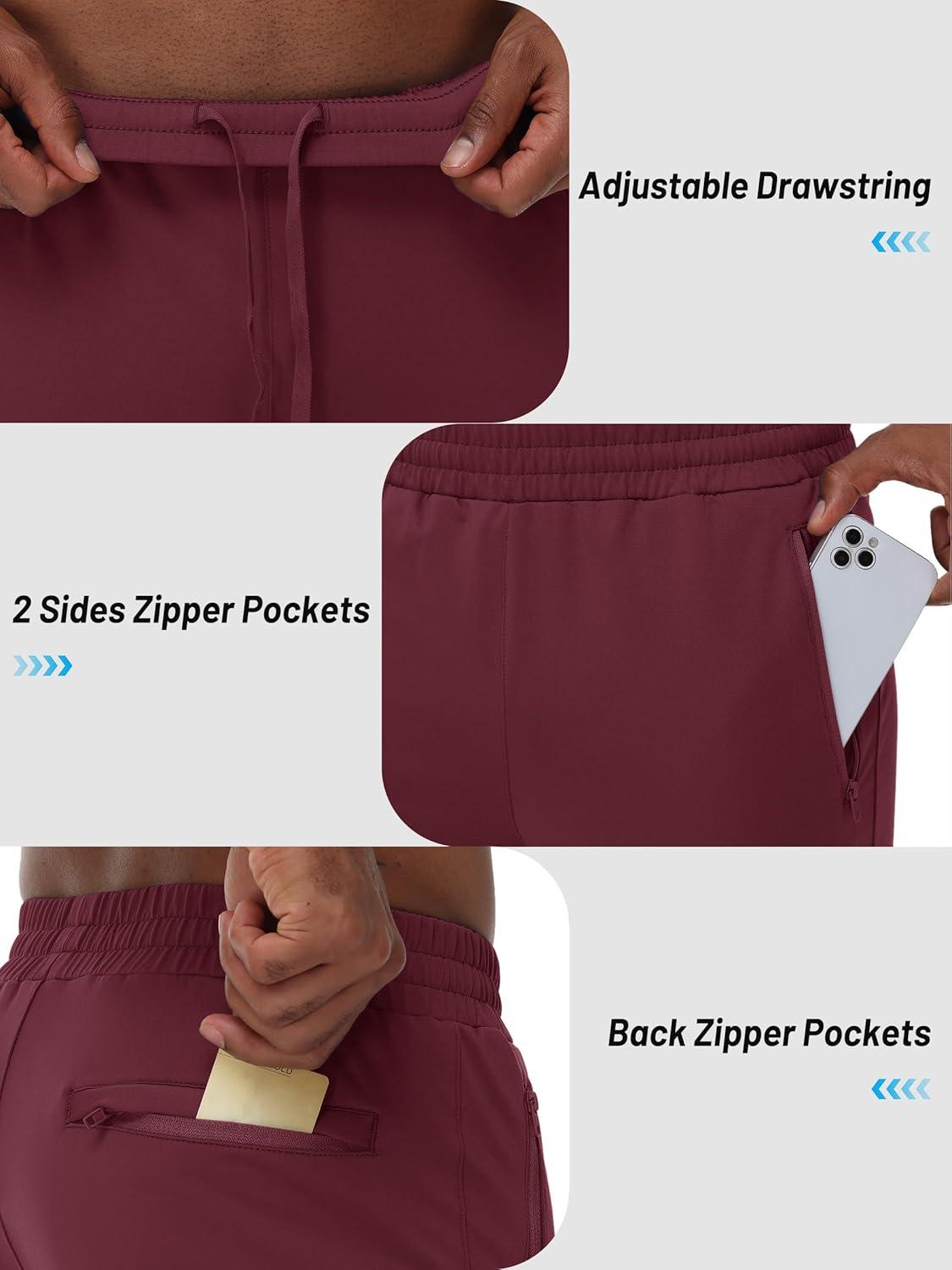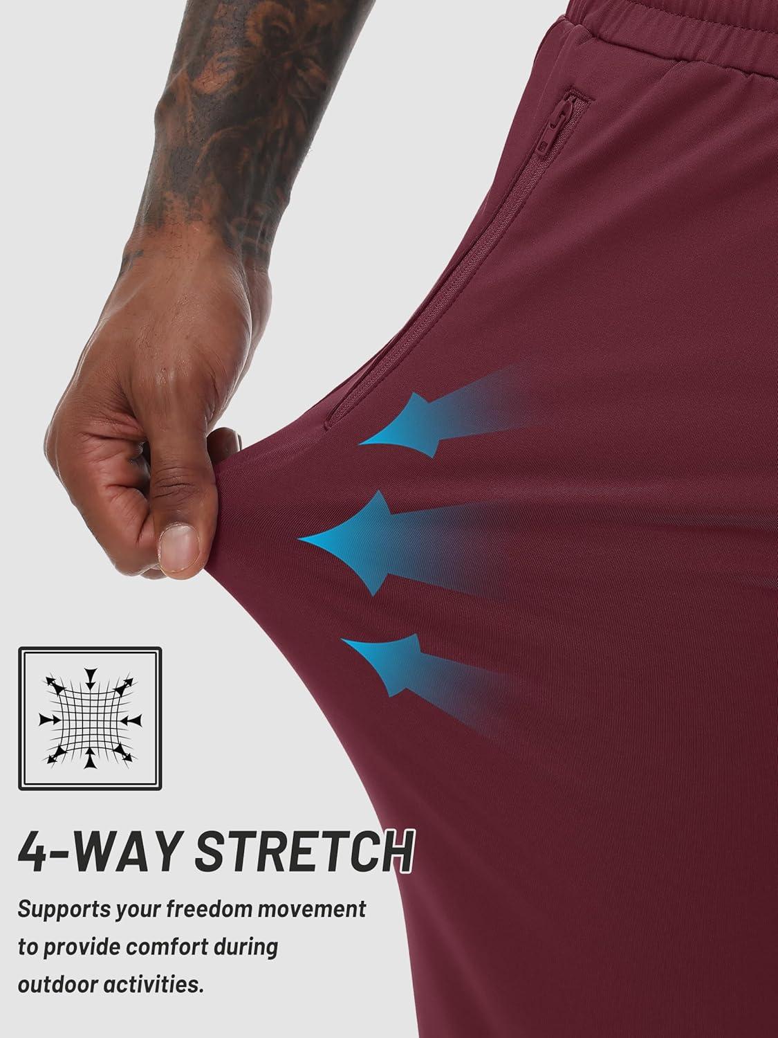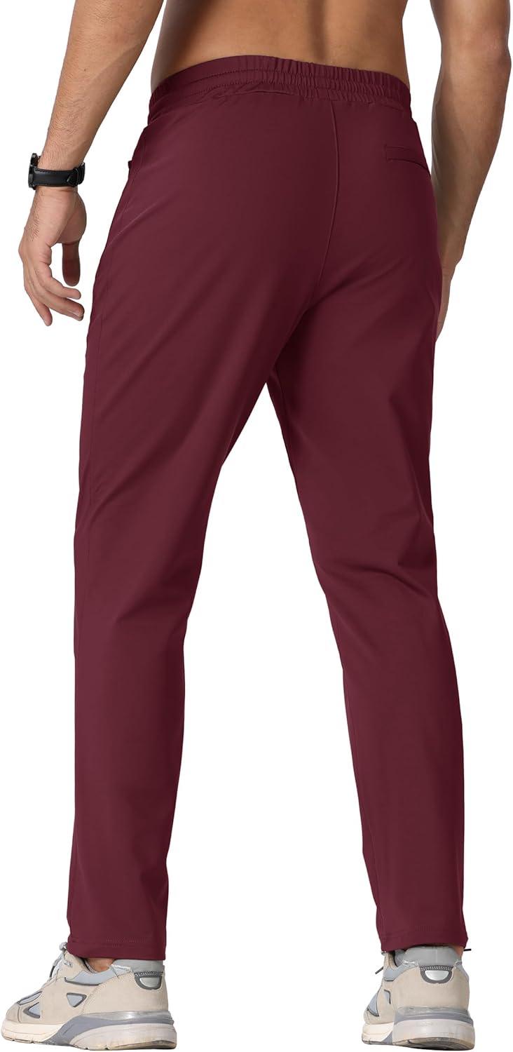 TACVASEN Men’s Warm Sweatpants Winter Fleece Lined Water Resistant Pants Straight Leg with Zipper Pockets for Running(Burgundy)
