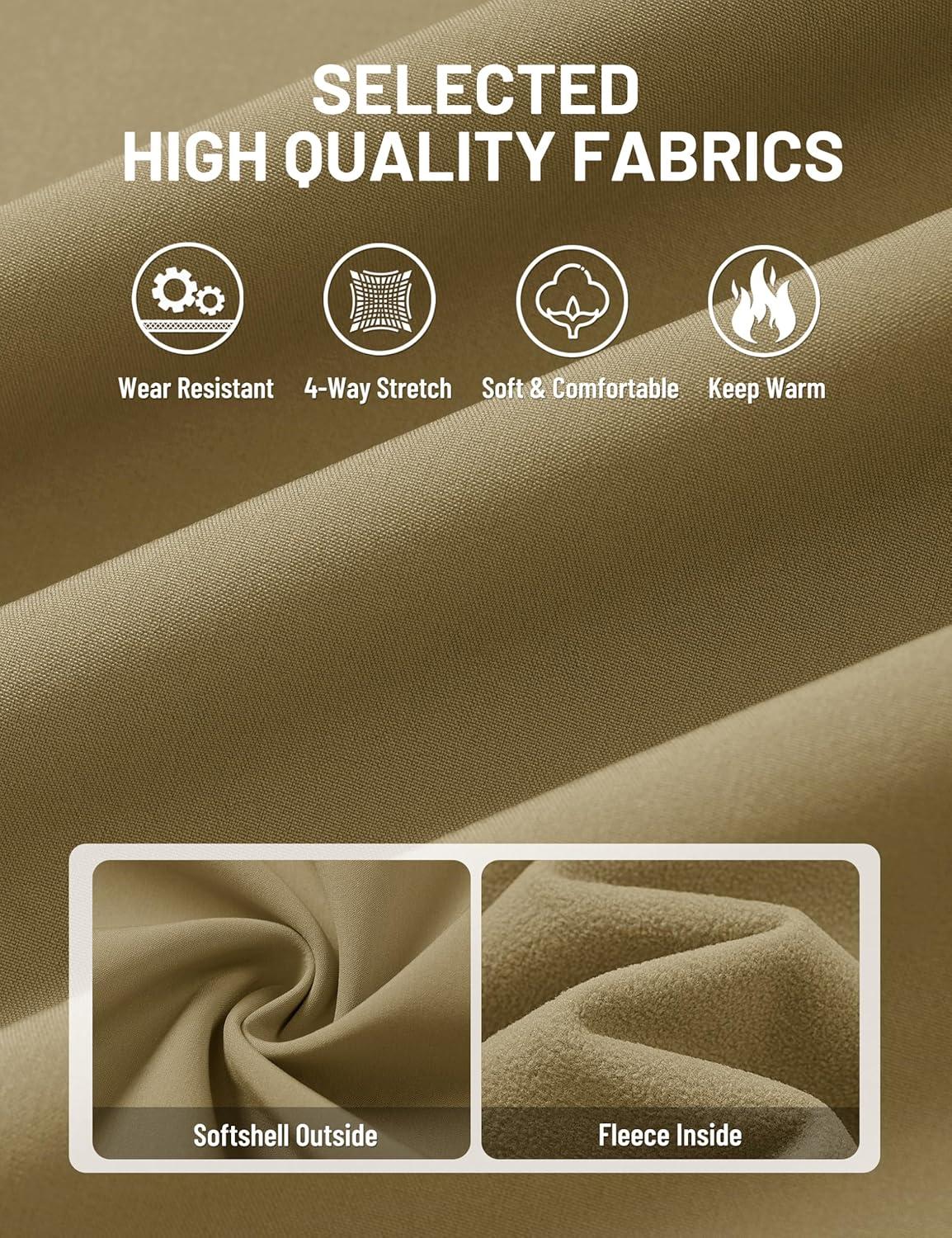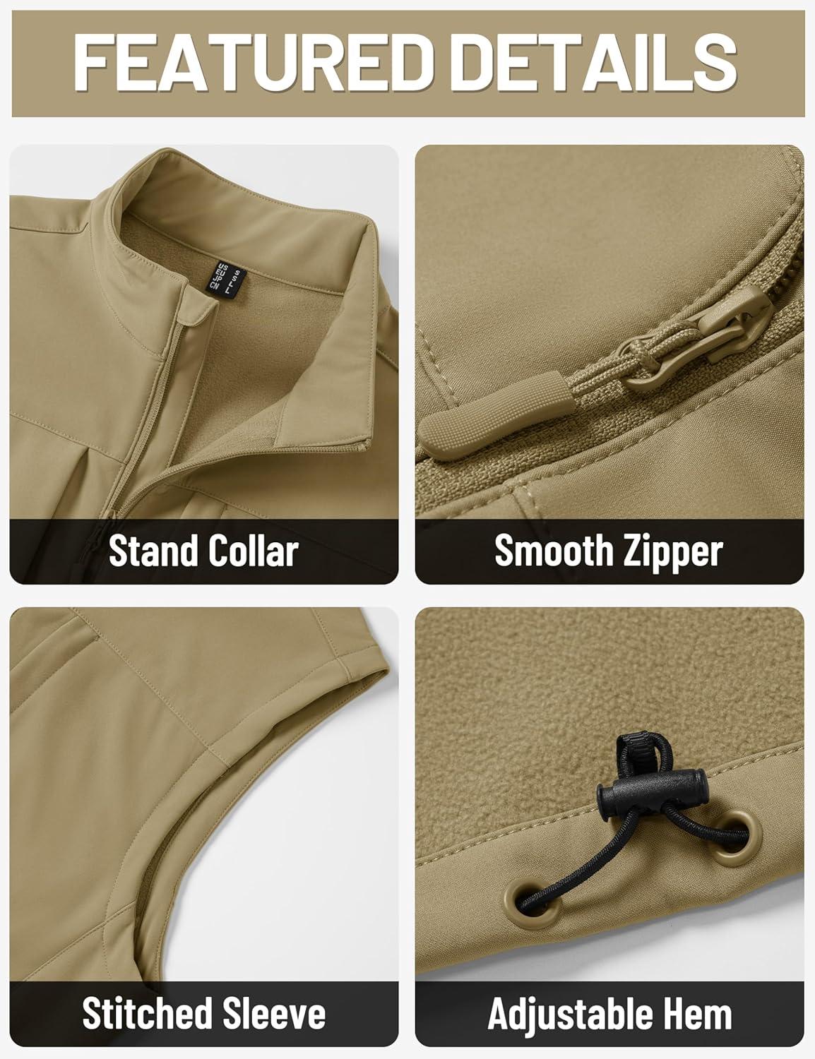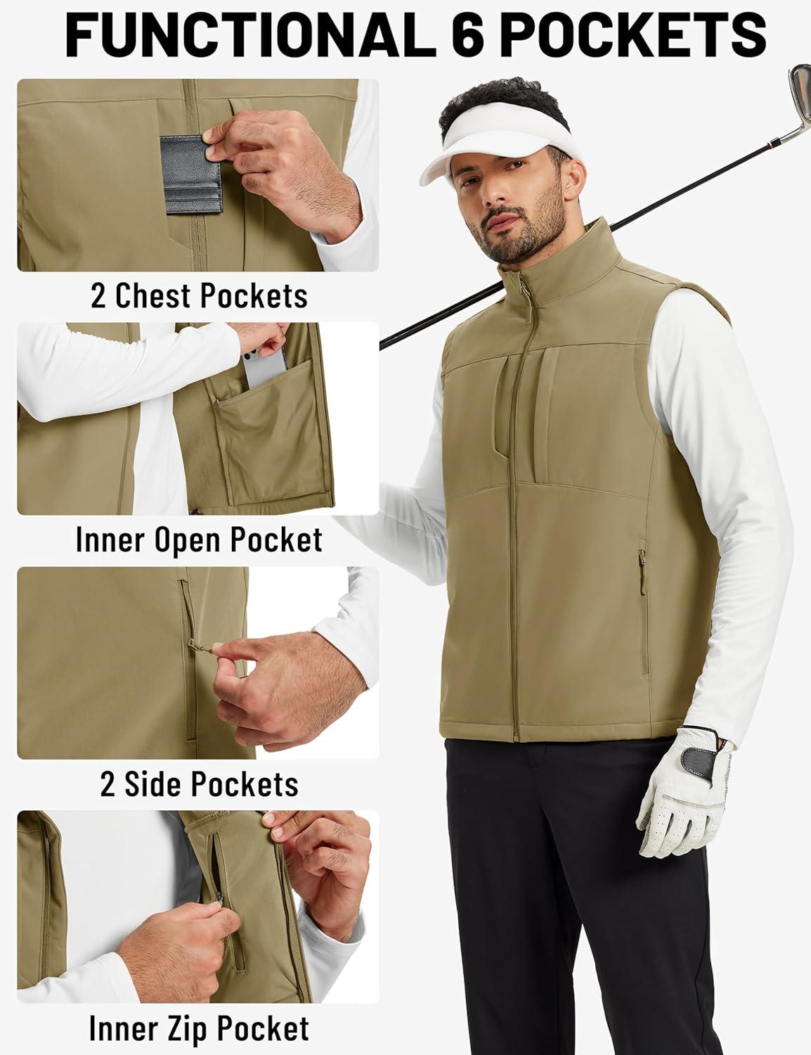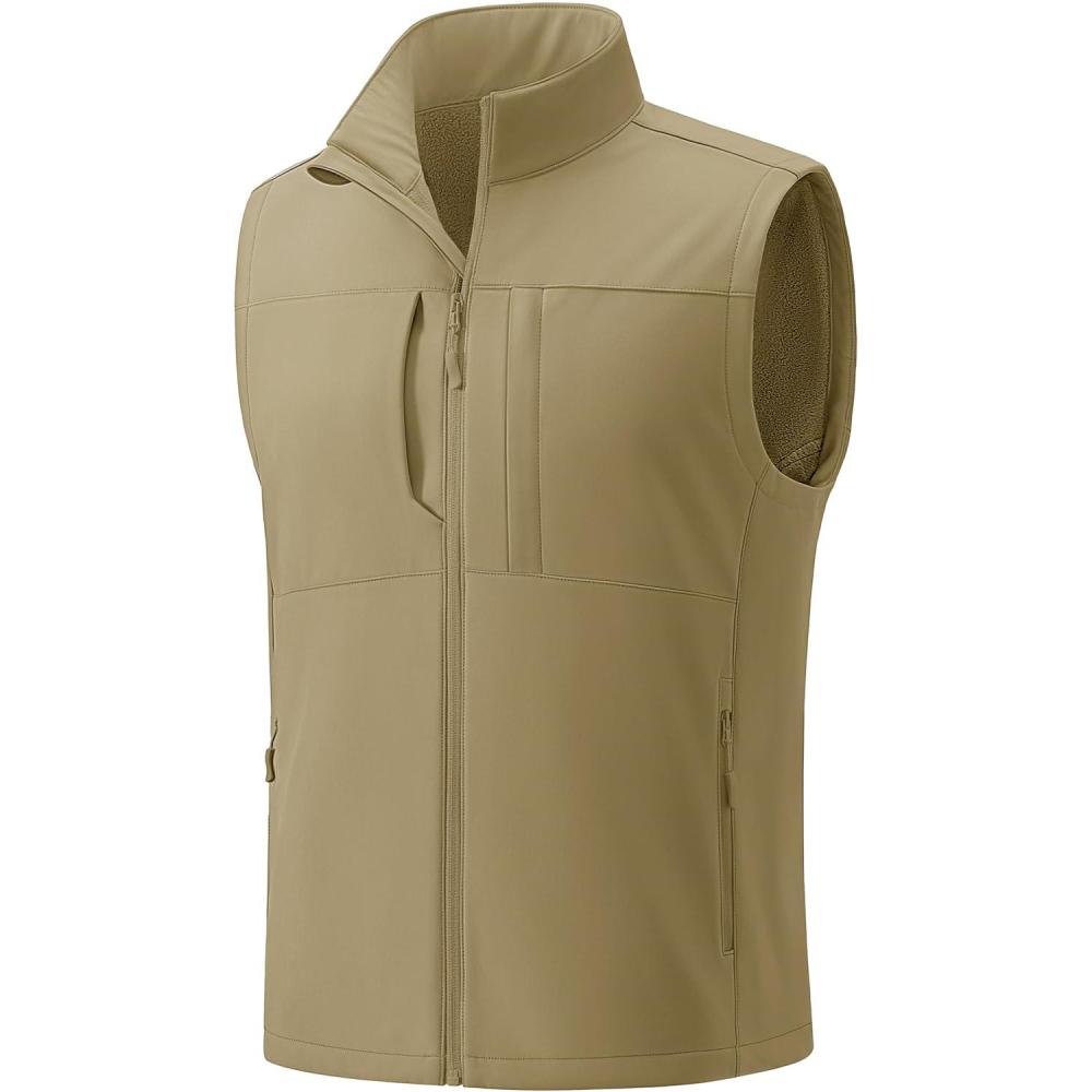 TACVASEN Men’s Windproof Lightweight Vest Waterproof with Pockets Softshell Sleeveless Fleece Jacket for Hiking Golf(Khaki)