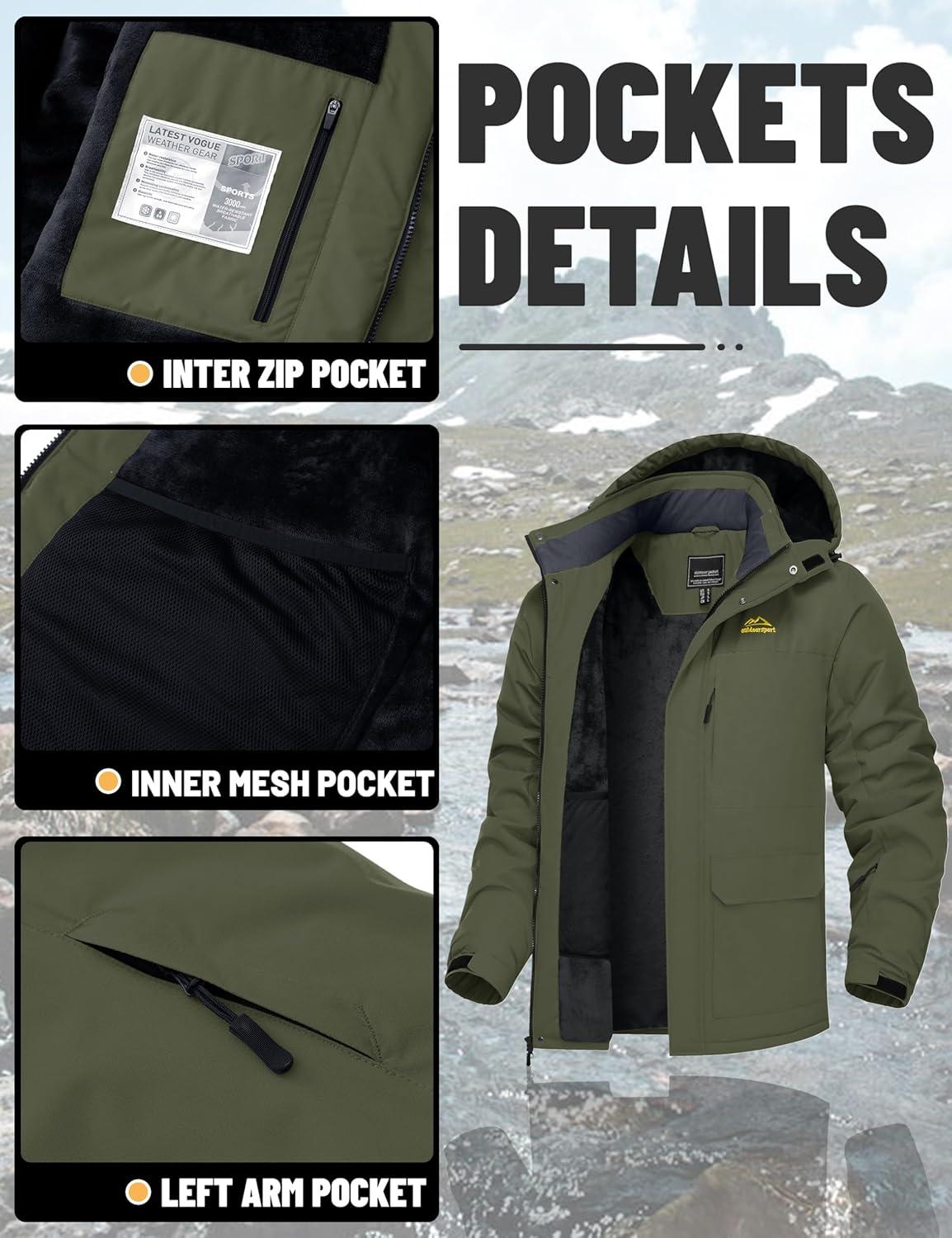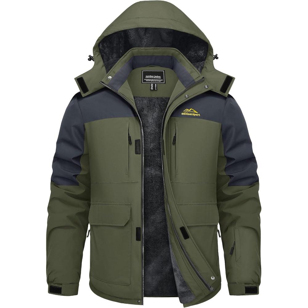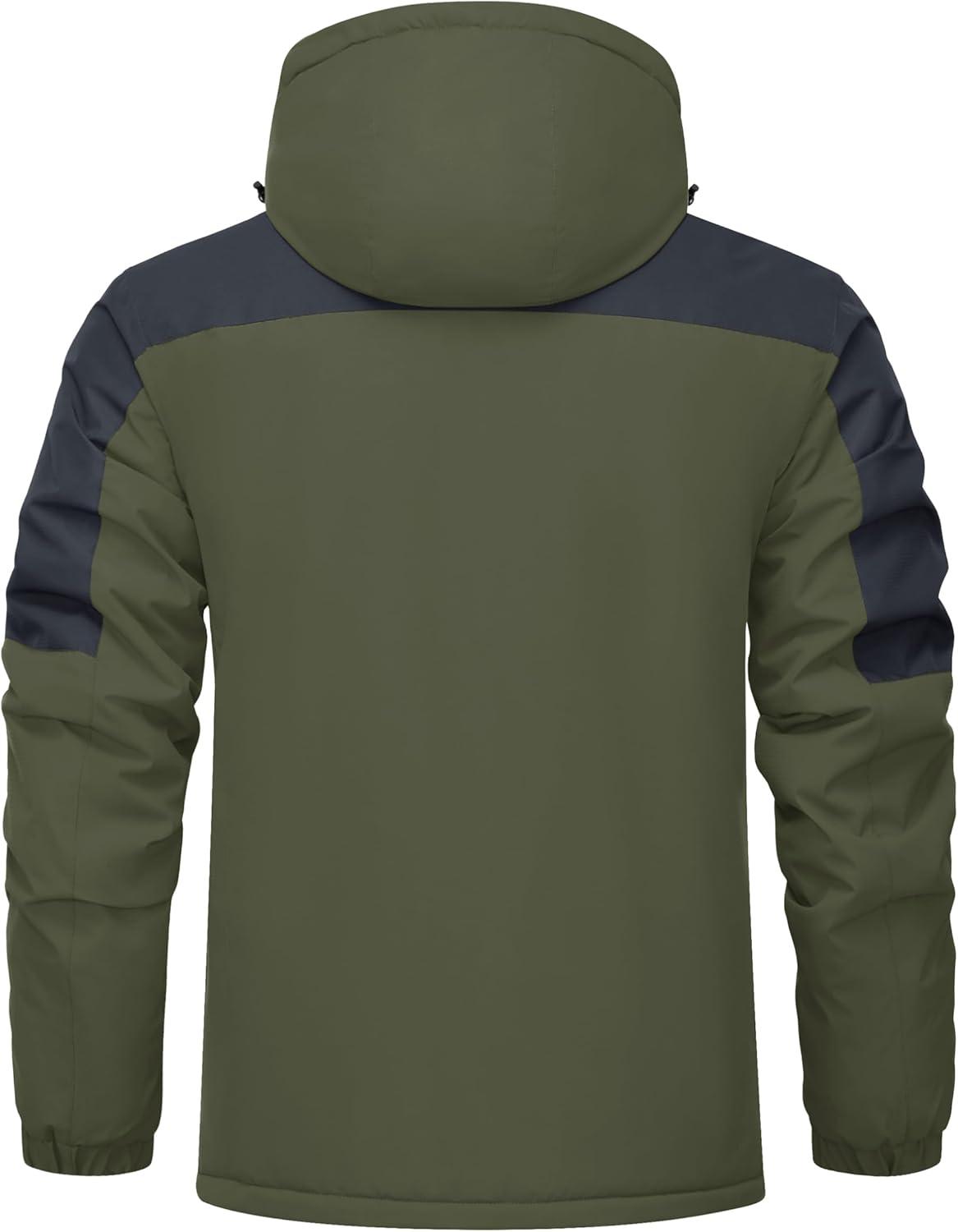Men's Winter Jacket Waterproof Fleece Coat Warm Insulated Parka Windproof Ski Snowboard Jacket with Detachable Hood And Multi-Pockets