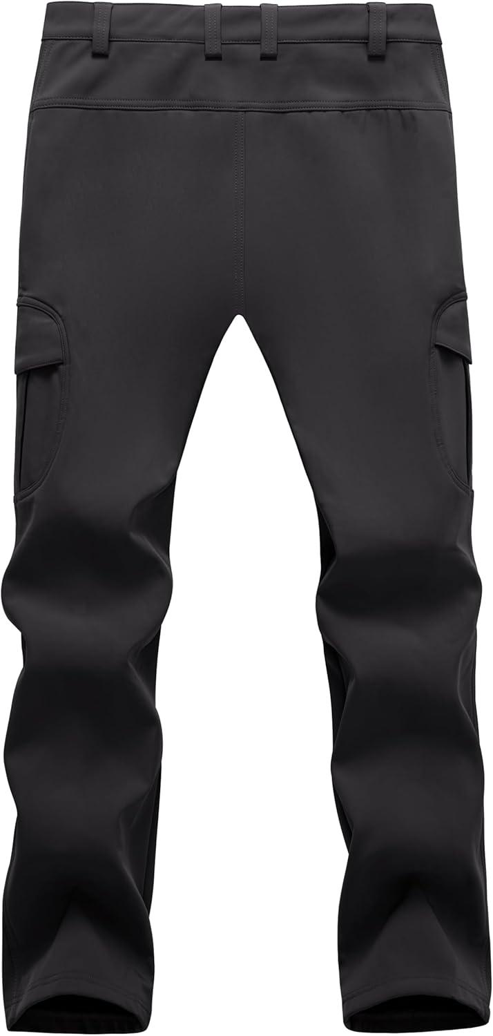 TACVASEN Men’s Winter Hiking Pants Fleece Lined Cargo Tactical Work Softshell Snow Ski Waterproof Pants with Pockets(Gray)