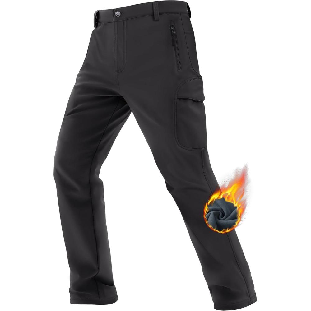 TACVASEN Men’s Winter Hiking Pants Fleece Lined Cargo Tactical Work Softshell Snow Ski Waterproof Pants with Pockets(Black)