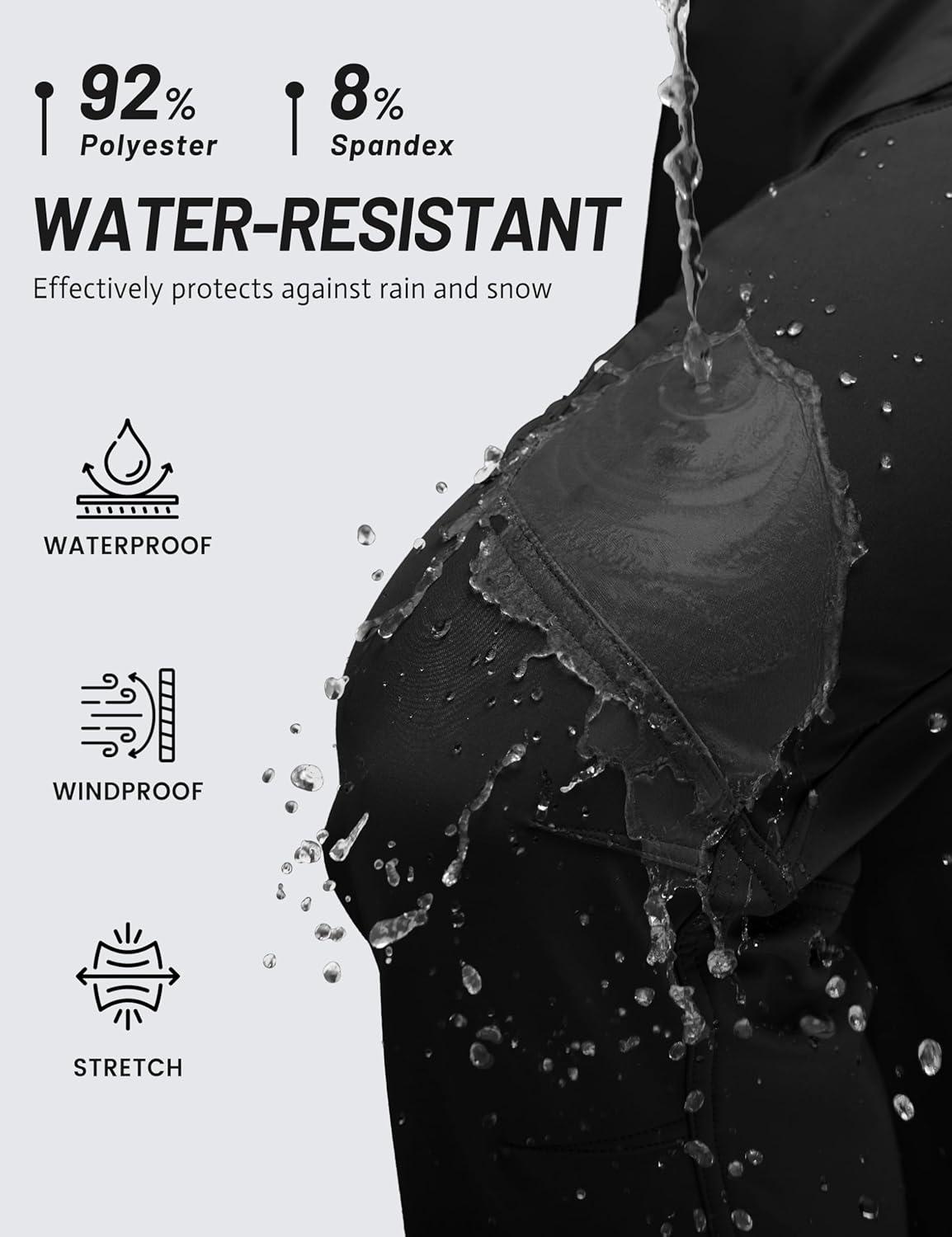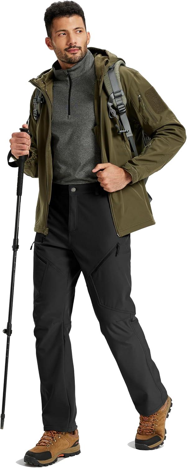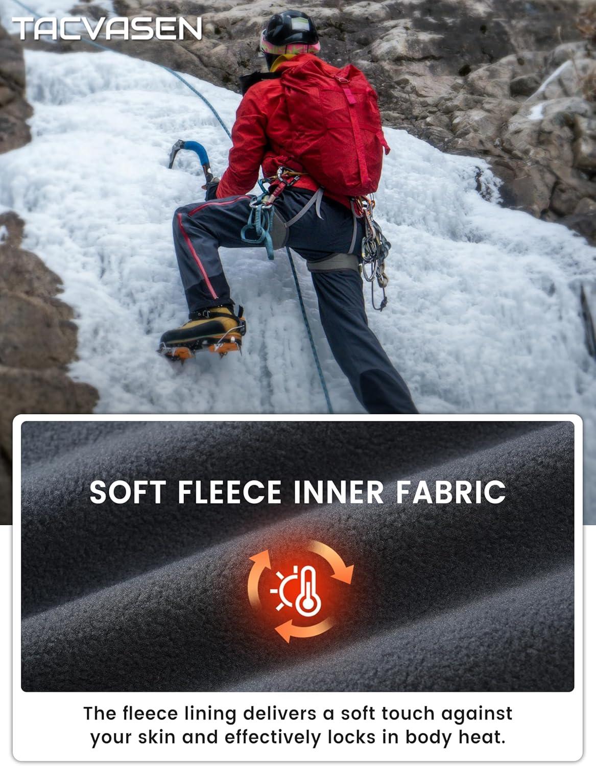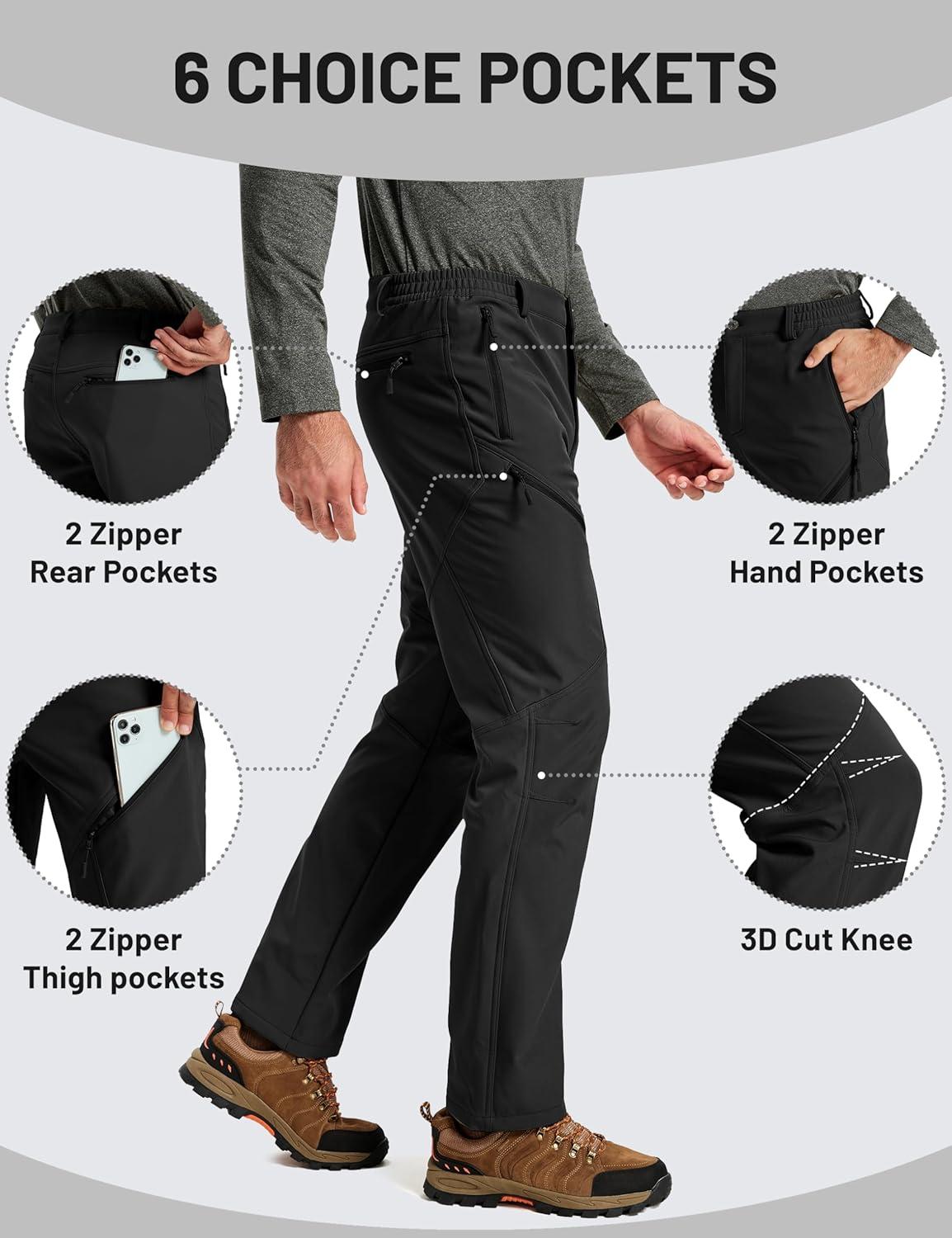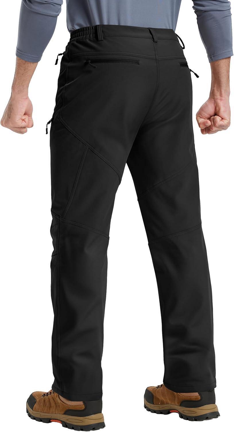 TACVASEN Men’s Winter Hiking Pants Fleece Lined Waterproof Softshell Snow Ski Insulated Work Cargo Pants with 6 Zip Pockets(Black)