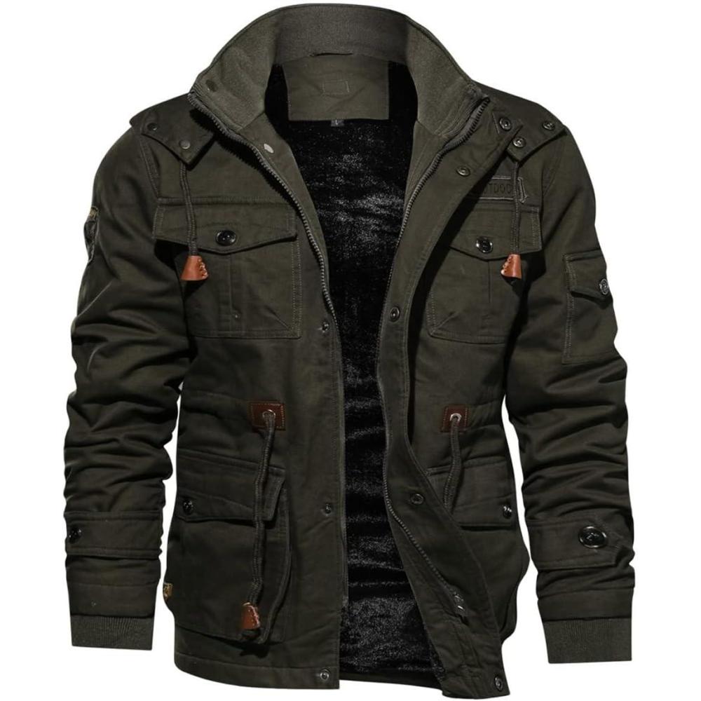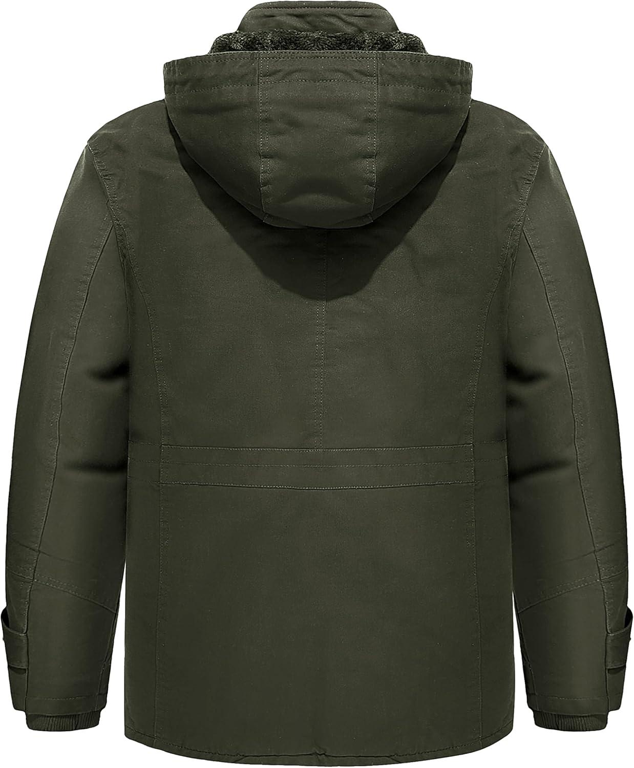 TACVASEN Men’s Winter Jacket Cotton Military Jackets Fleece Lined Thick Work Warm Cargo Coats with Hooded(A.149 Green)