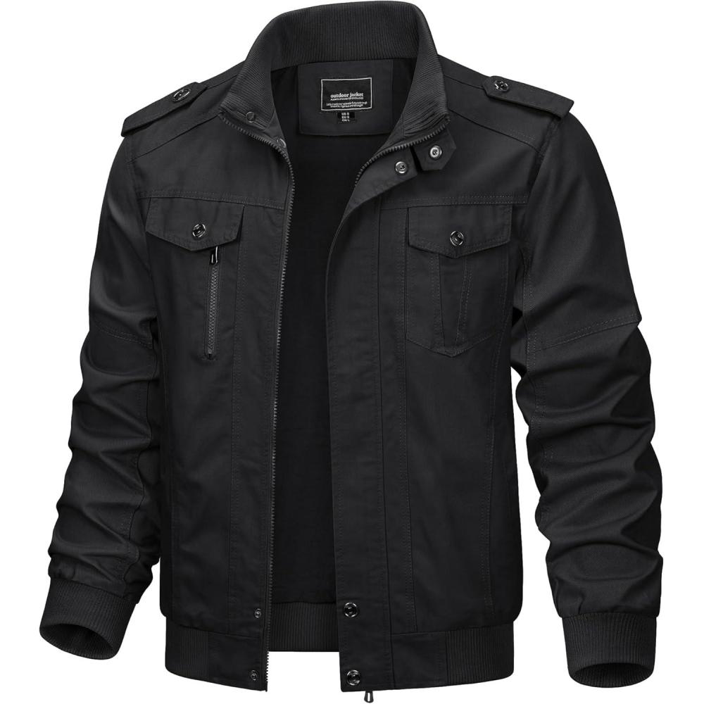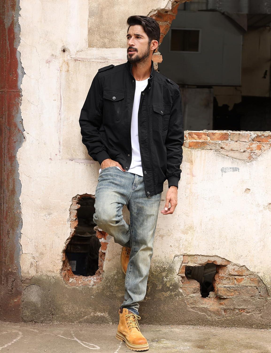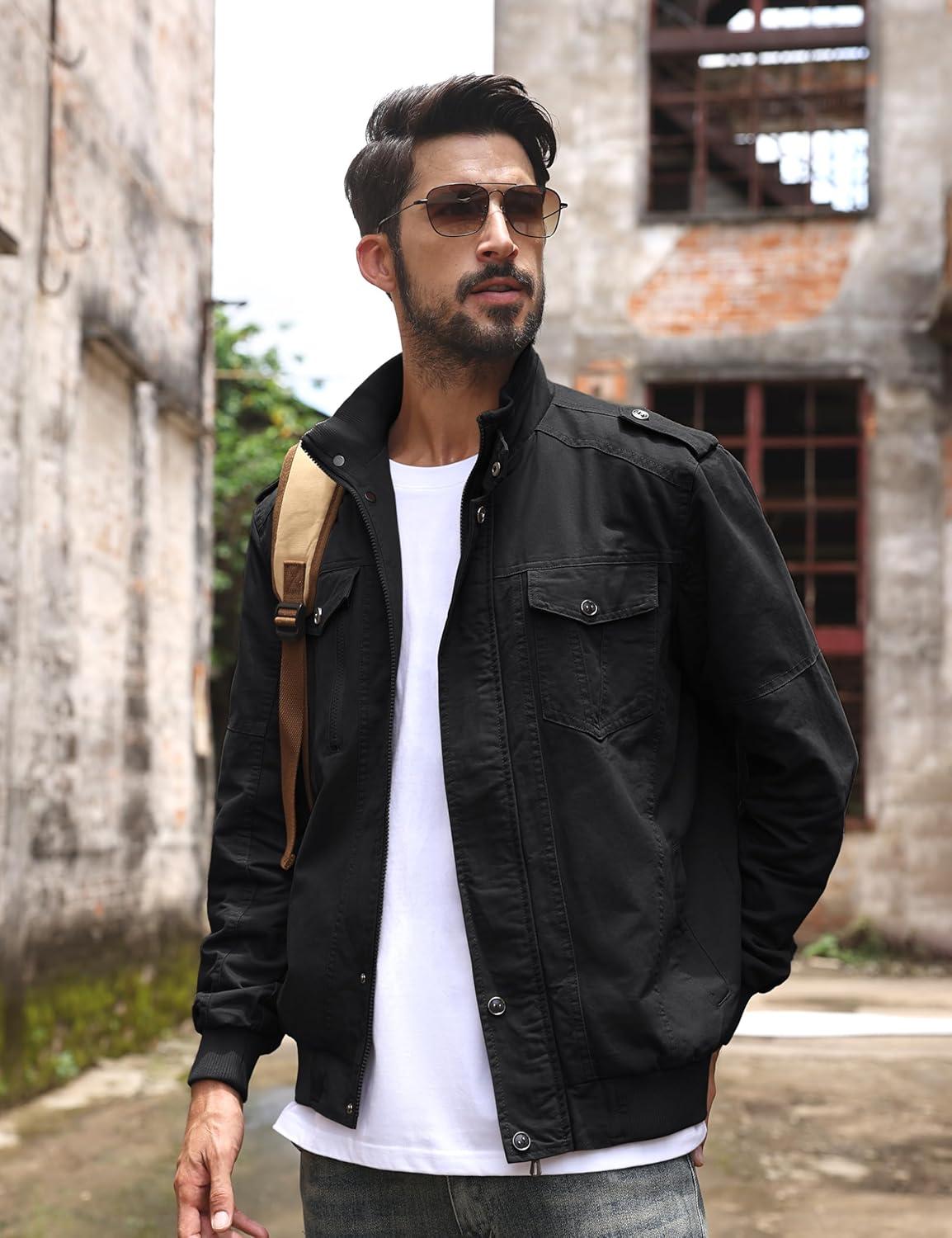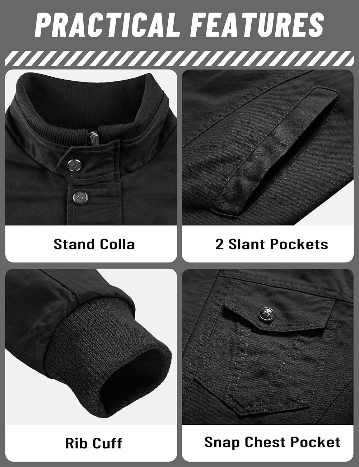 TACVASEN Men’s Winter Jacket Fleece Lined Military Jacket Cargo Windbreaker Zip Front Stand Collar Coat with Multi Pockets(#2701 Black)