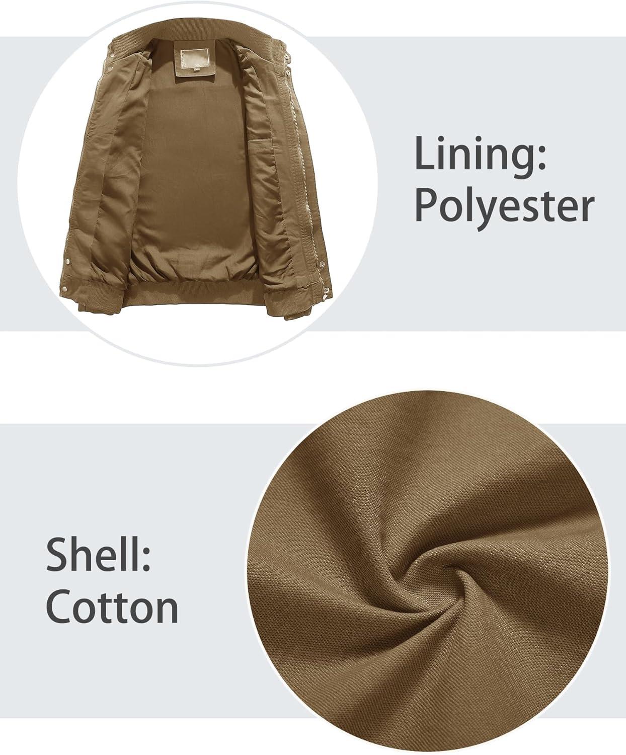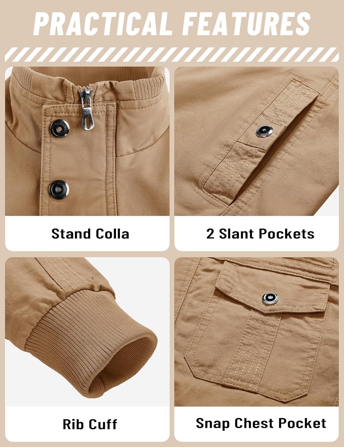 TACVASEN Men’s Winter Jacket Fleece Lined Military Jacket Cargo Windbreaker Zip Front Stand Collar Coat with Multi Pockets(#9931 Khaki)