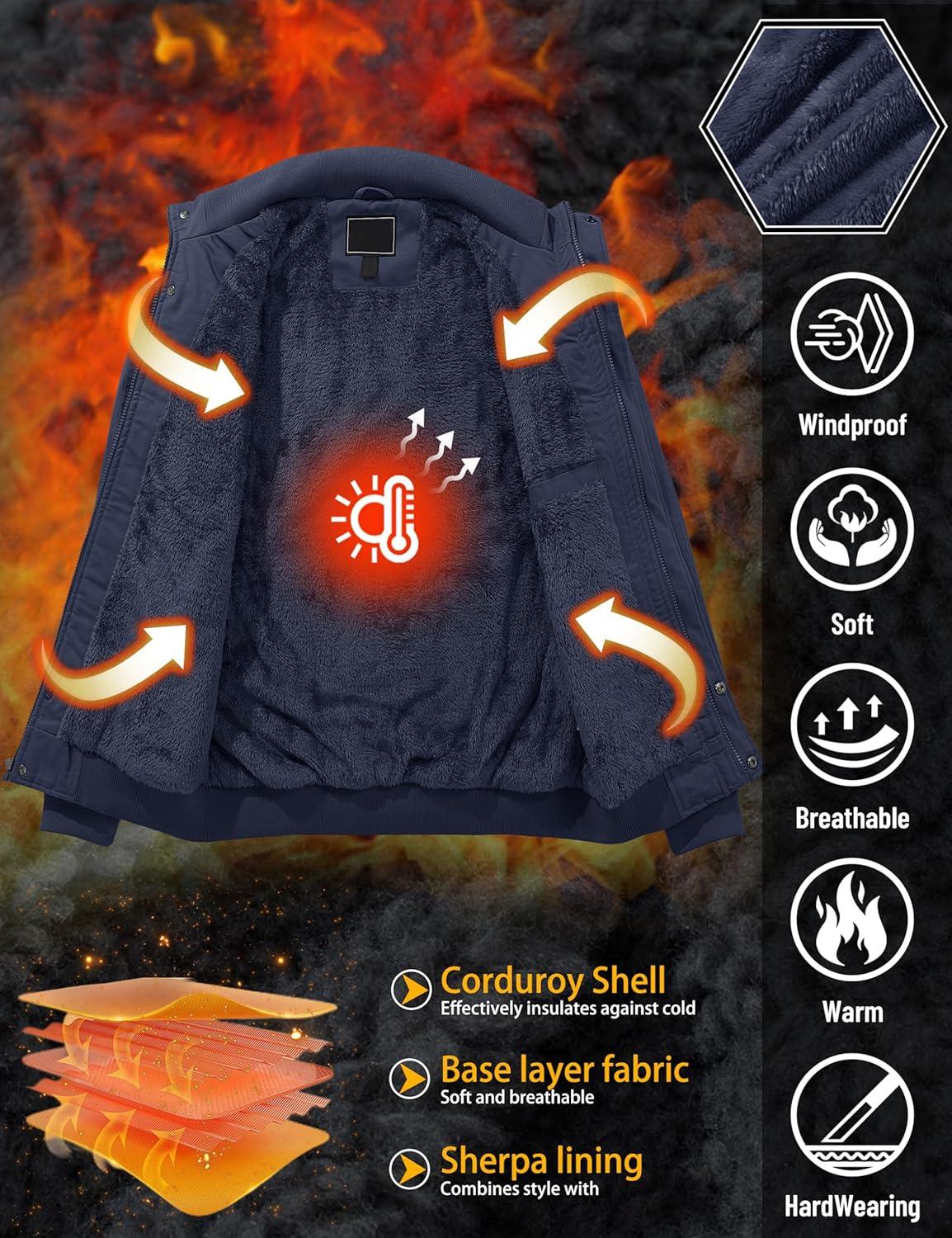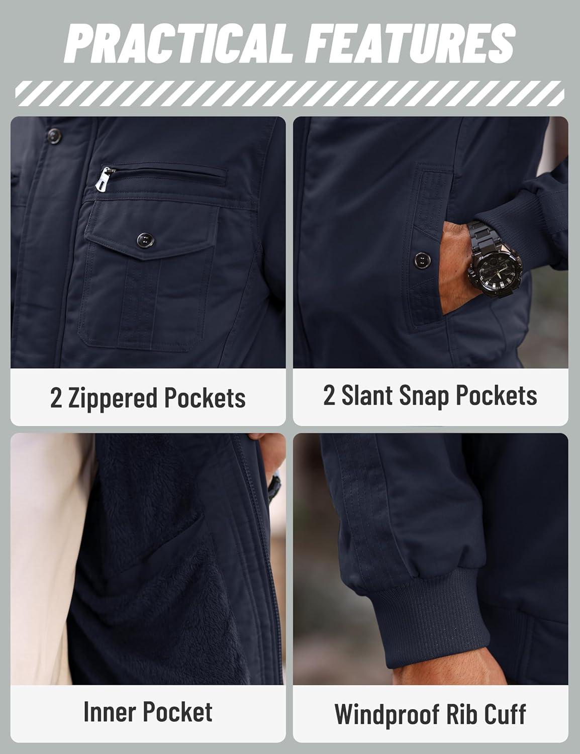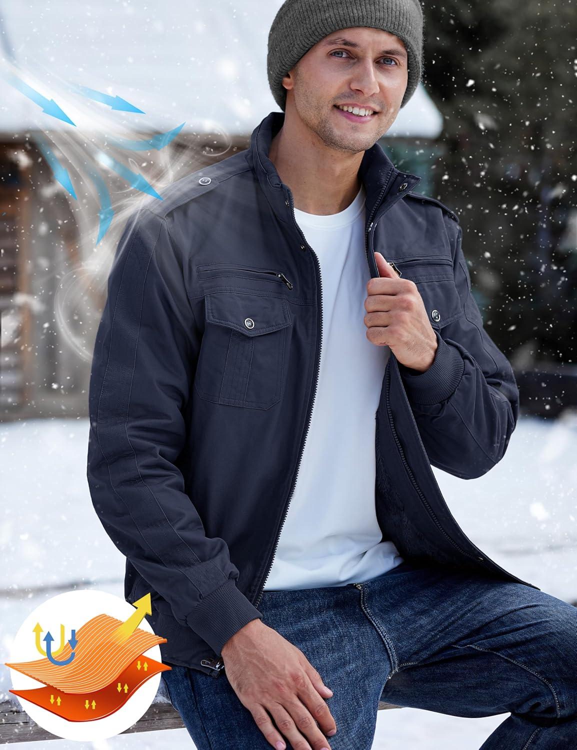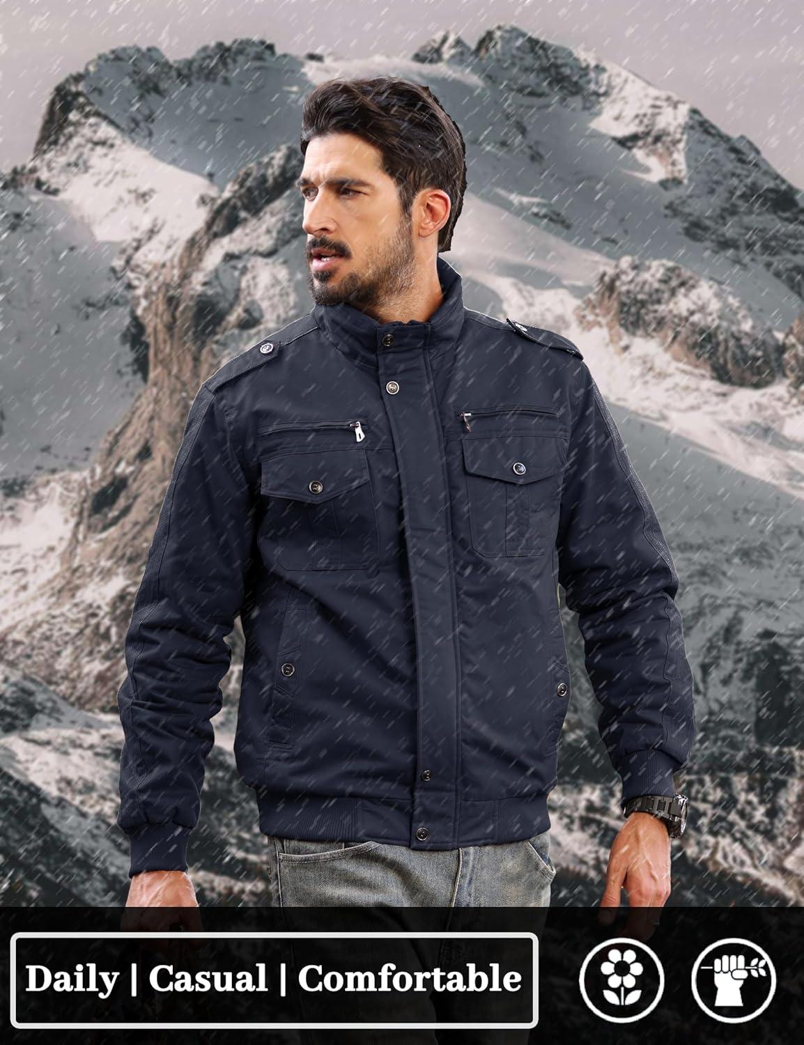 Men's Winter Jacket-Fleece Cotton Military Coat Thicken Casual Cargo Jacket