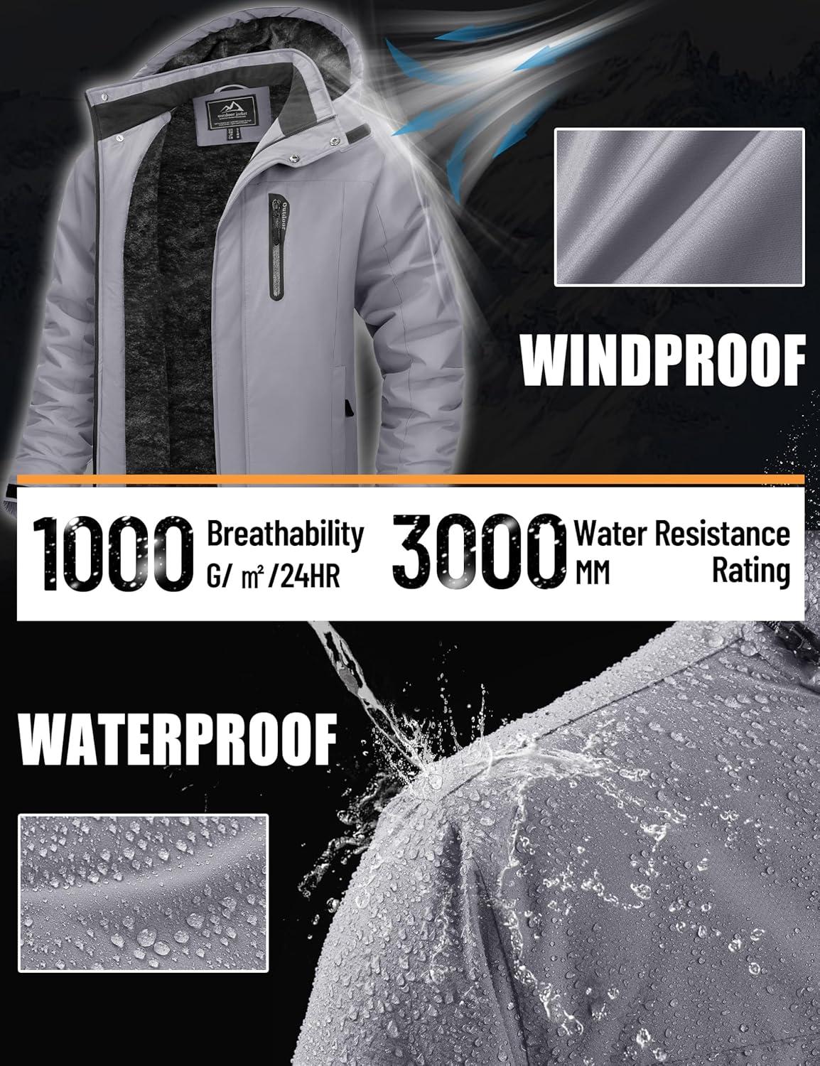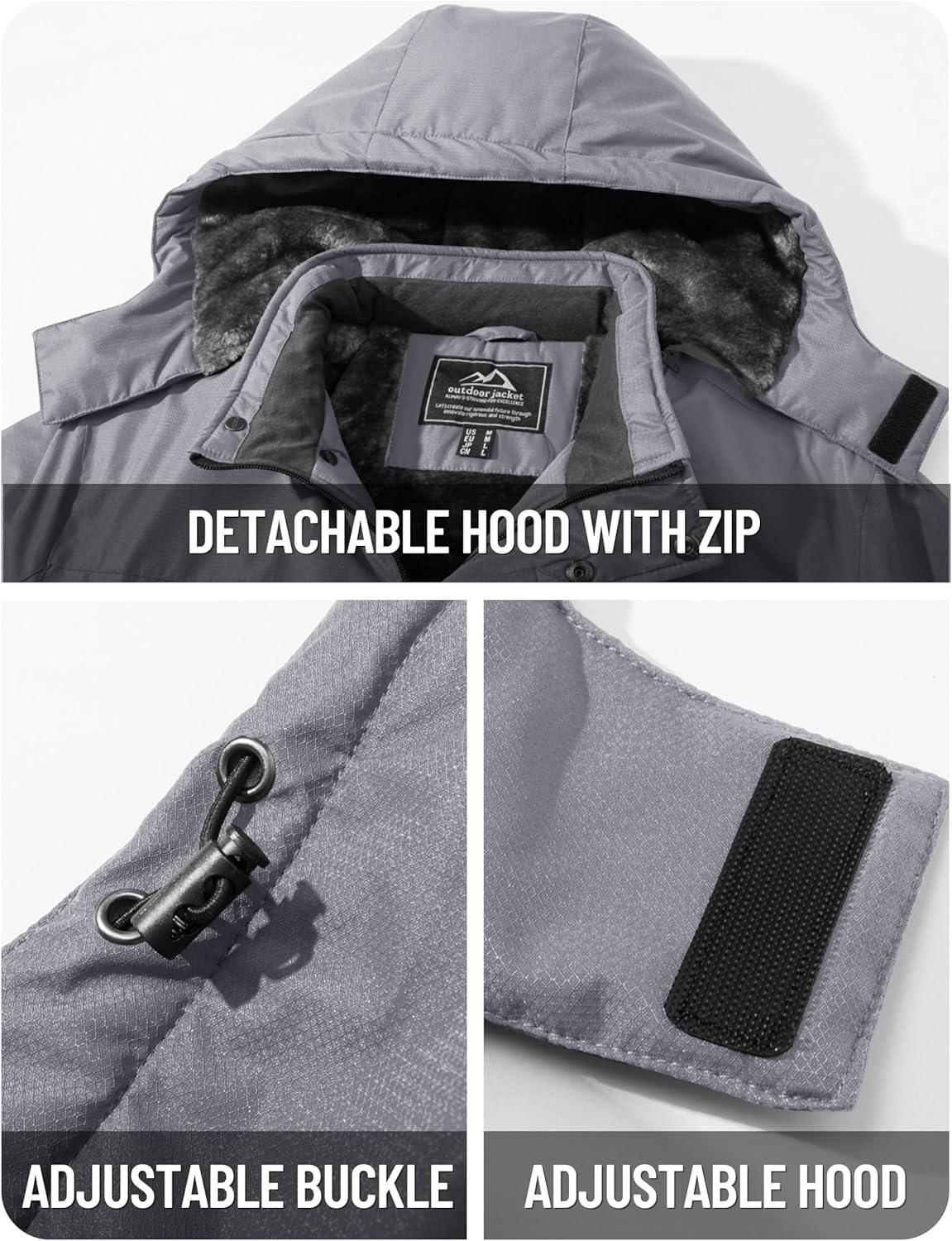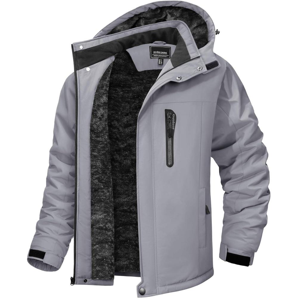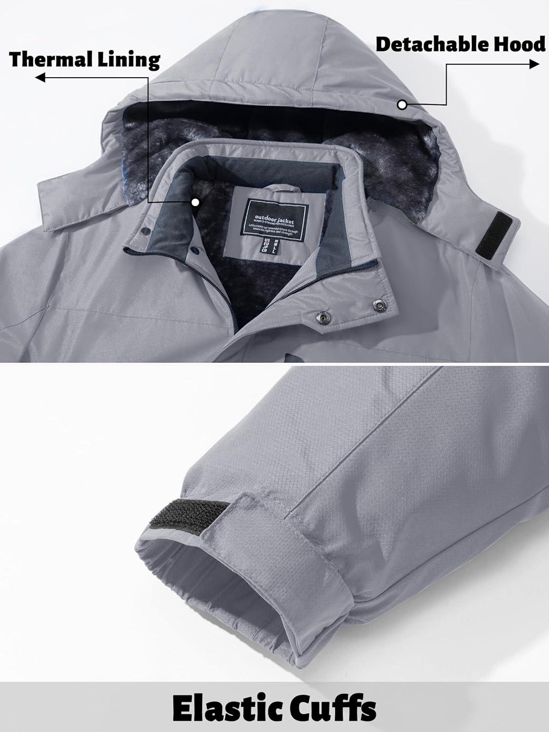 imageTACVASEN Mens Winter Jacket Waterproof Ski Coat Warm Fleece Lined Windproof Snowboard Jacket with 4 Pockets HikingGrey