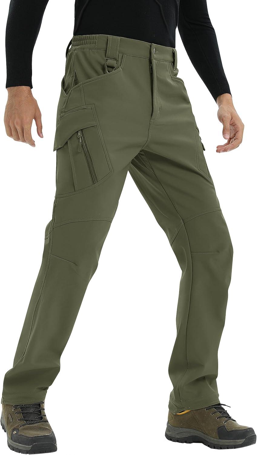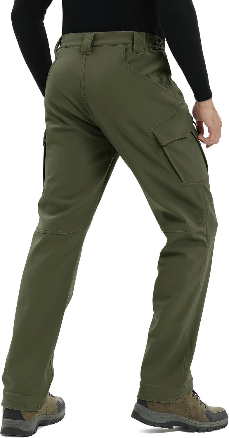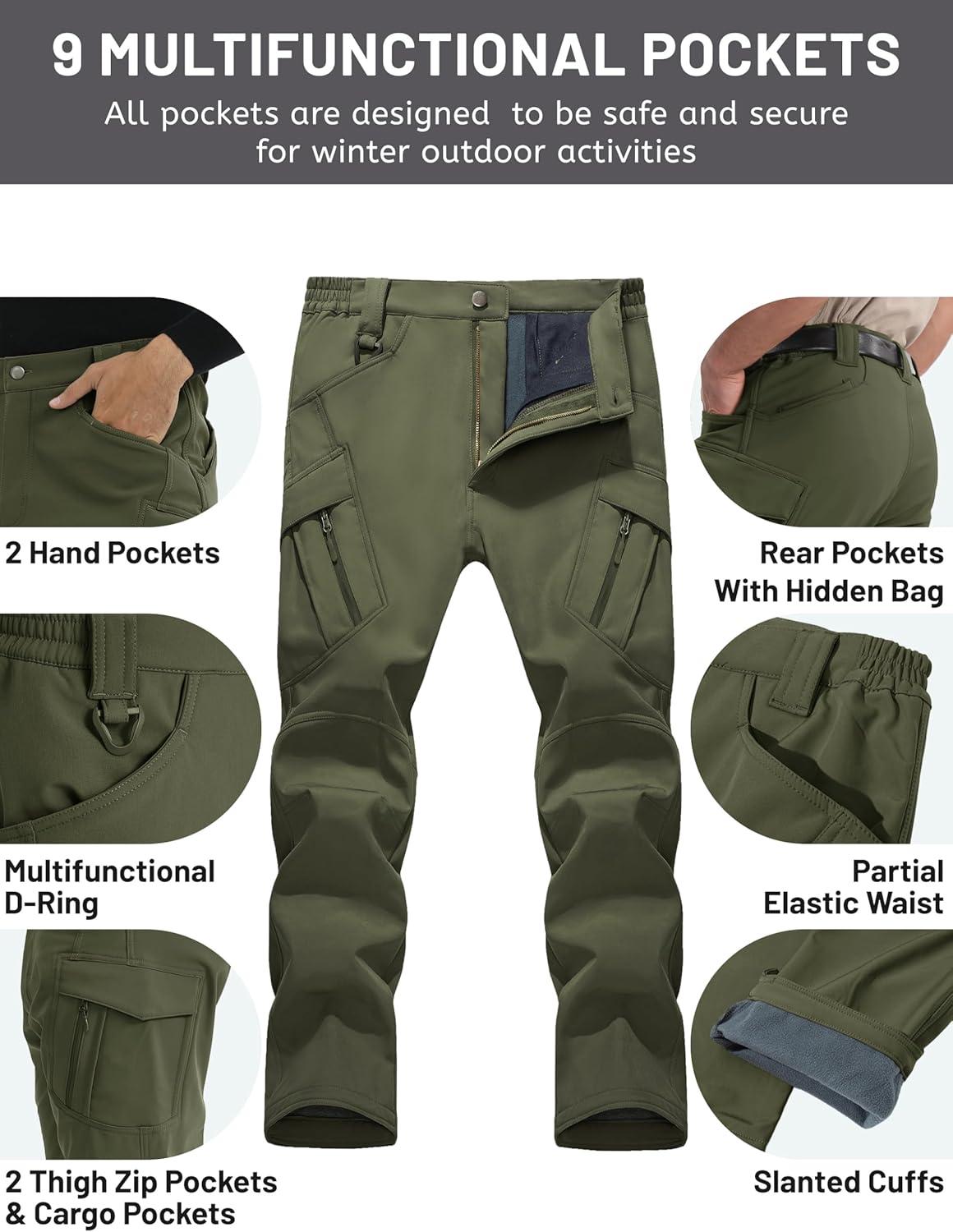 TACVASEN Men’s Winter Work Pants Fleece Lined Tactical Snow Ski Pant Waterproof Insulated Cargo Hiking Trousers 9 Pocket(Green)
