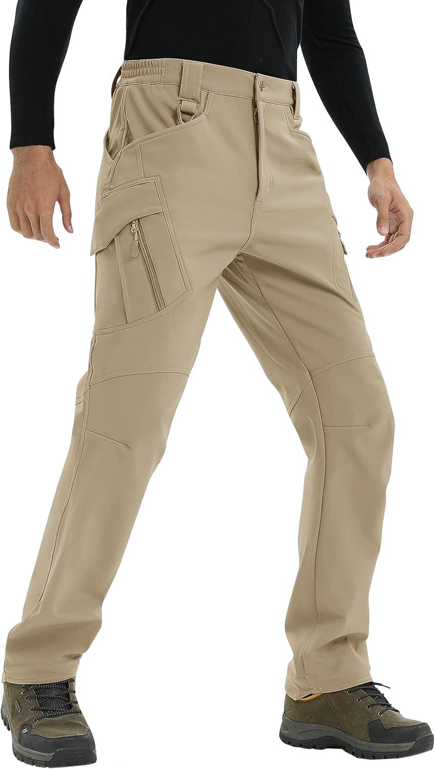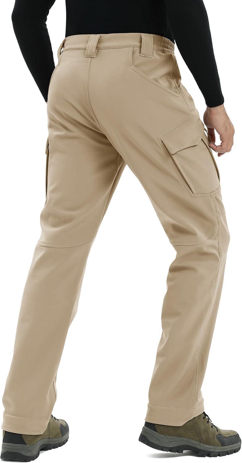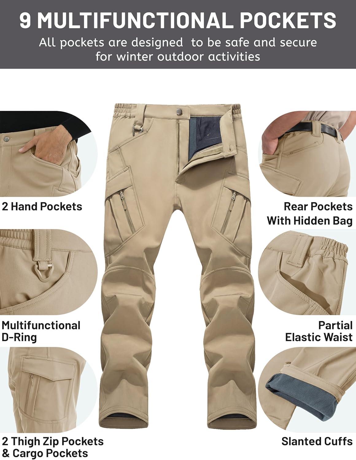 TACVASEN Men’s Winter Work Pants Fleece Lined Tactical Snow Ski Pant Waterproof Insulated Cargo Hiking Trousers 9 Pocket(Khaki)