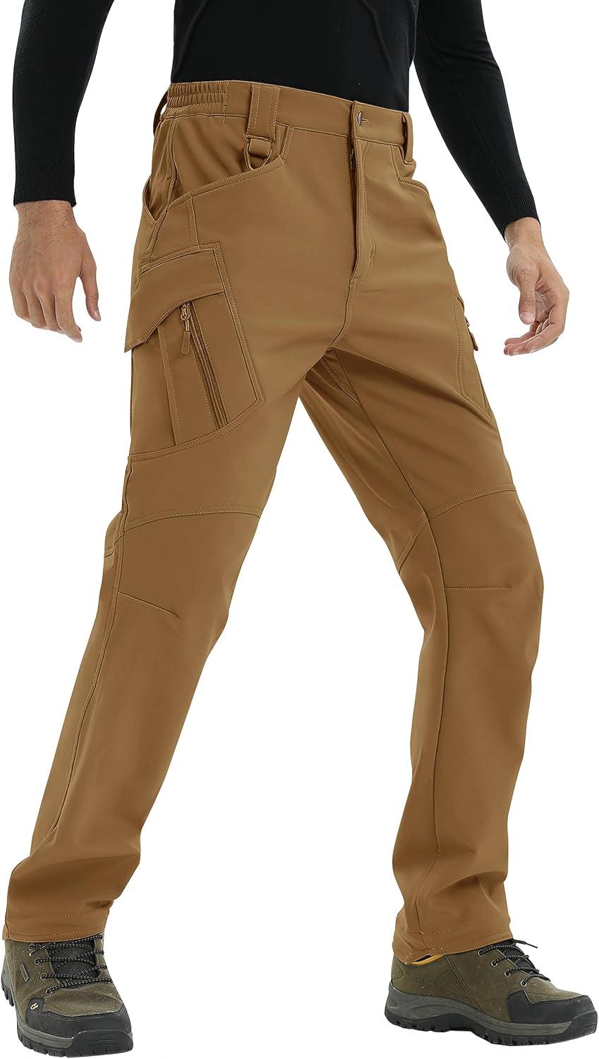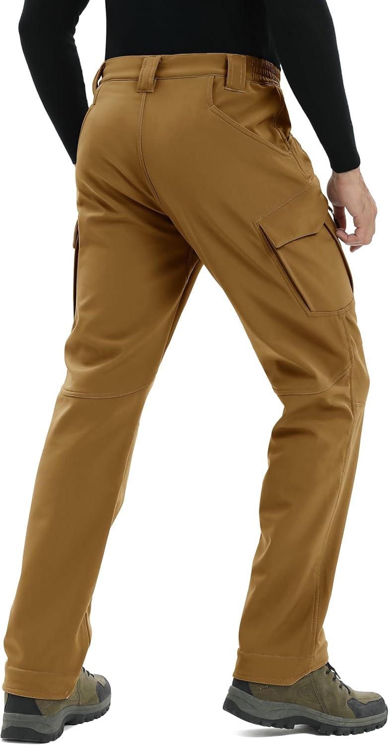 TACVASEN Men’s Winter Hiking Pants Fleece Lined Waterproof Softshell Snow Ski Insulated Work Cargo Pants with 6 Zip Pockets(Armygreen)
