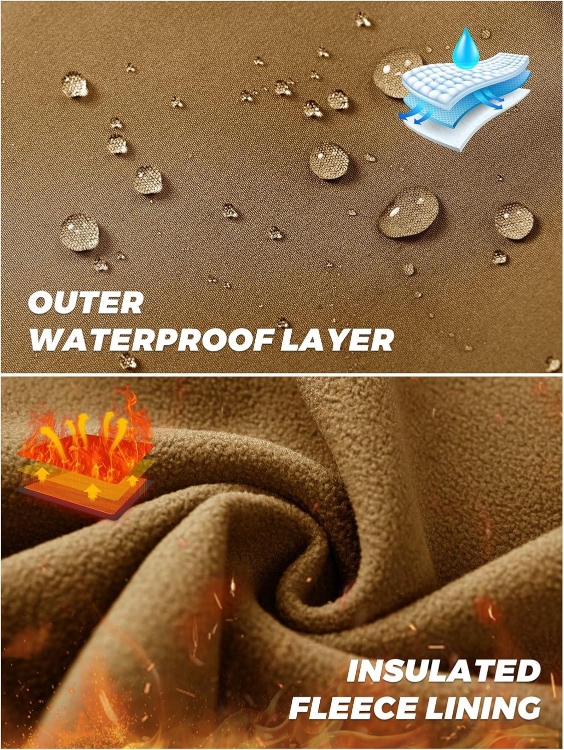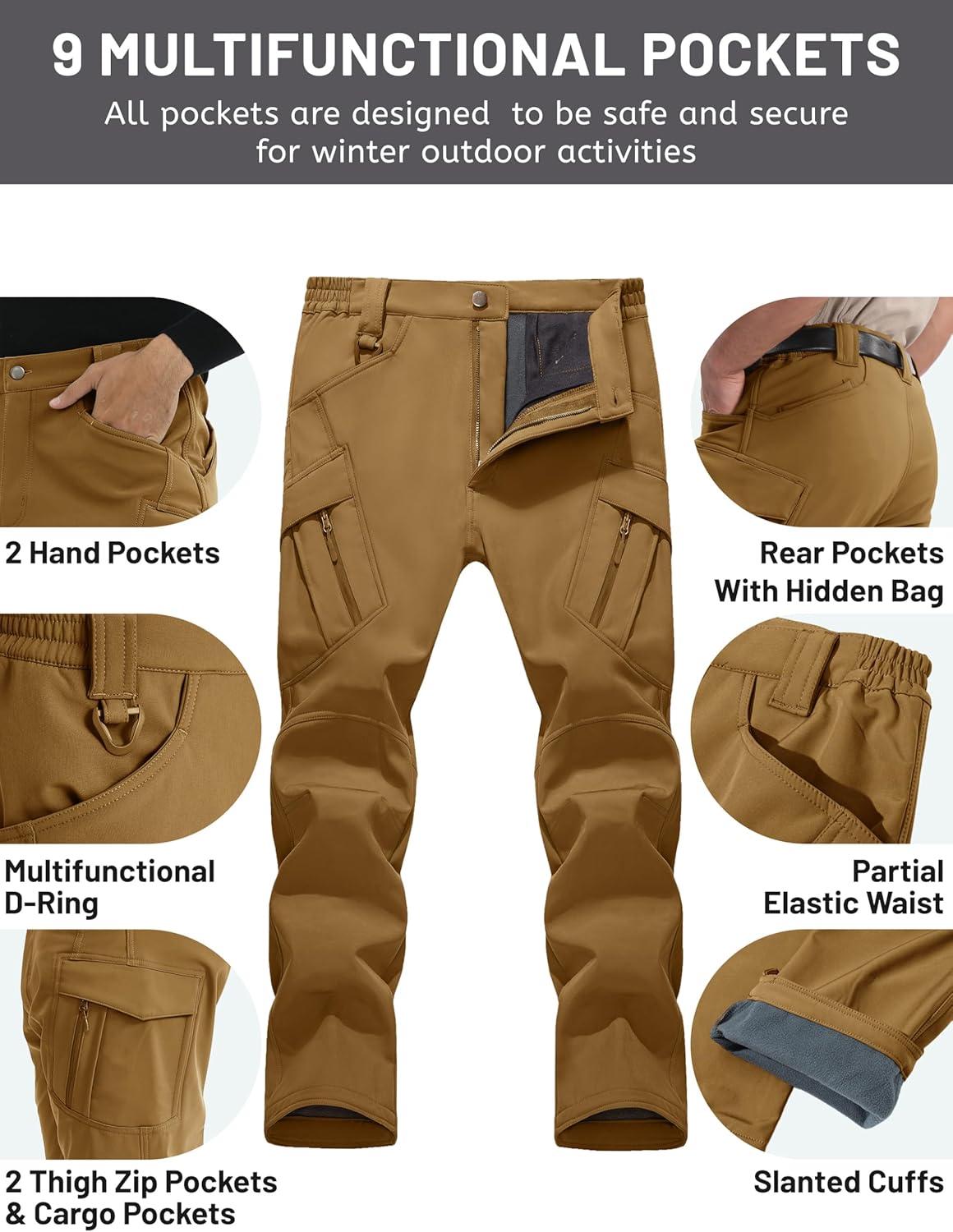 TACVASEN Men’s Winter Work Pants Fleece Lined Tactical Snow Ski Pant Waterproof Insulated Cargo Hiking Trousers 9 Pocket(Sand)