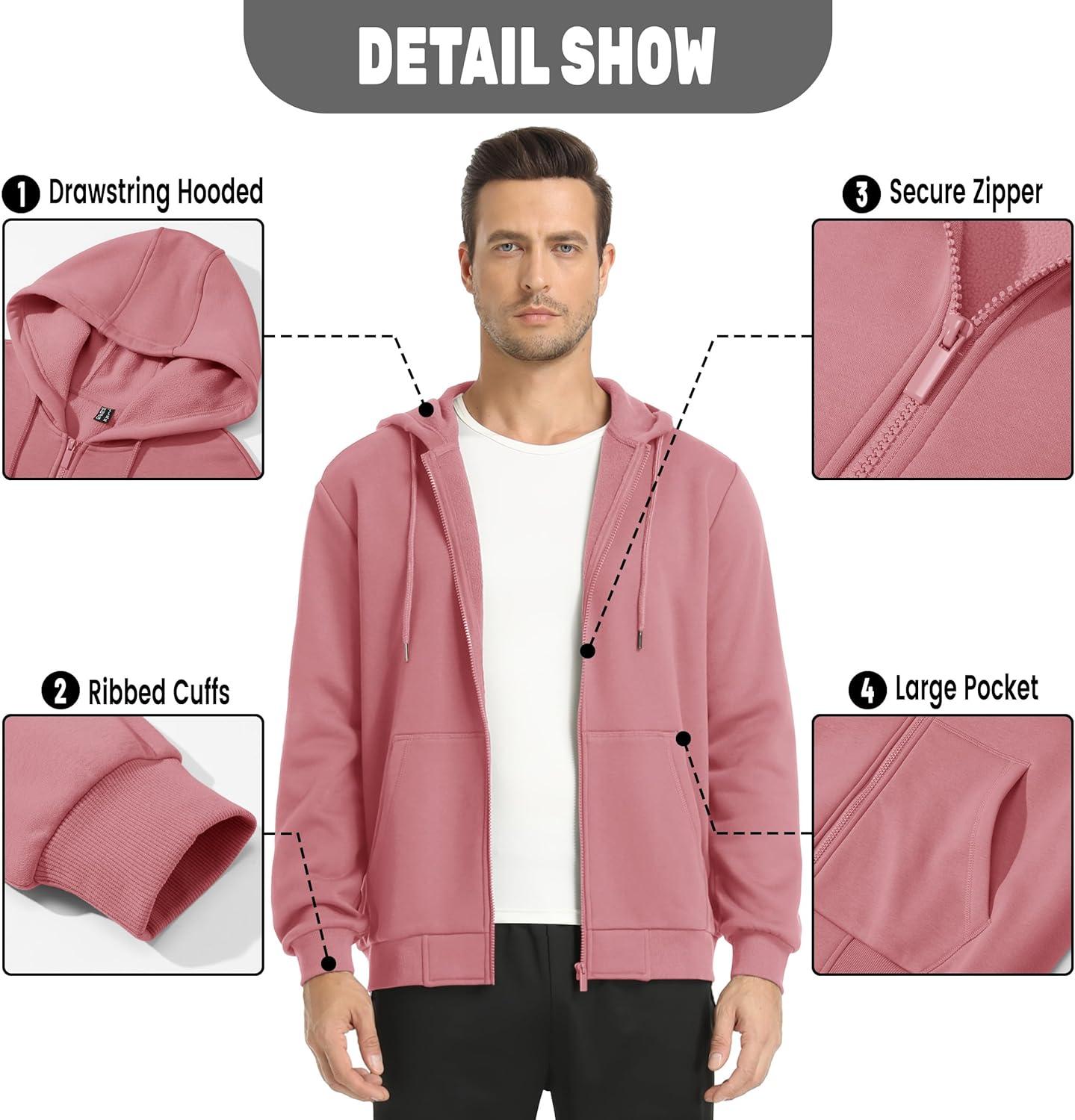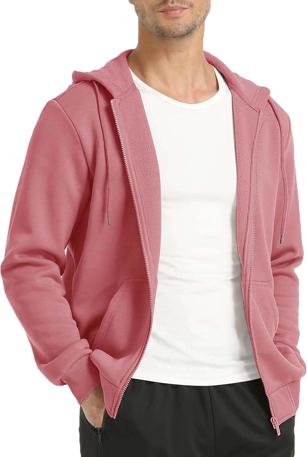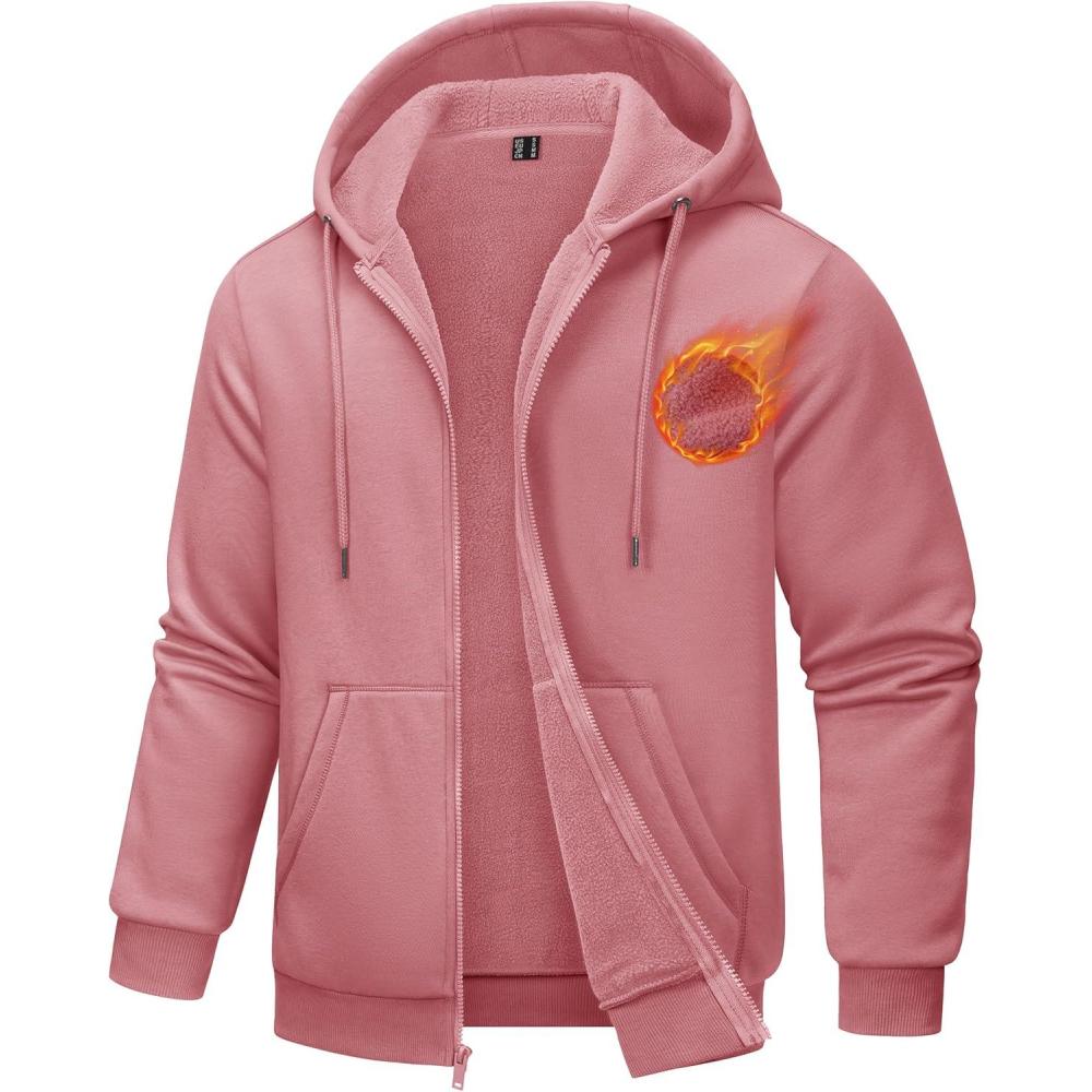 TACVASEN Mens Zip Up Hoodie Fleece Lined Hoodie Jacket Men Full Zip Sweatshirts Outdoor Thermal Athletic Hoodies(Grey Pink)