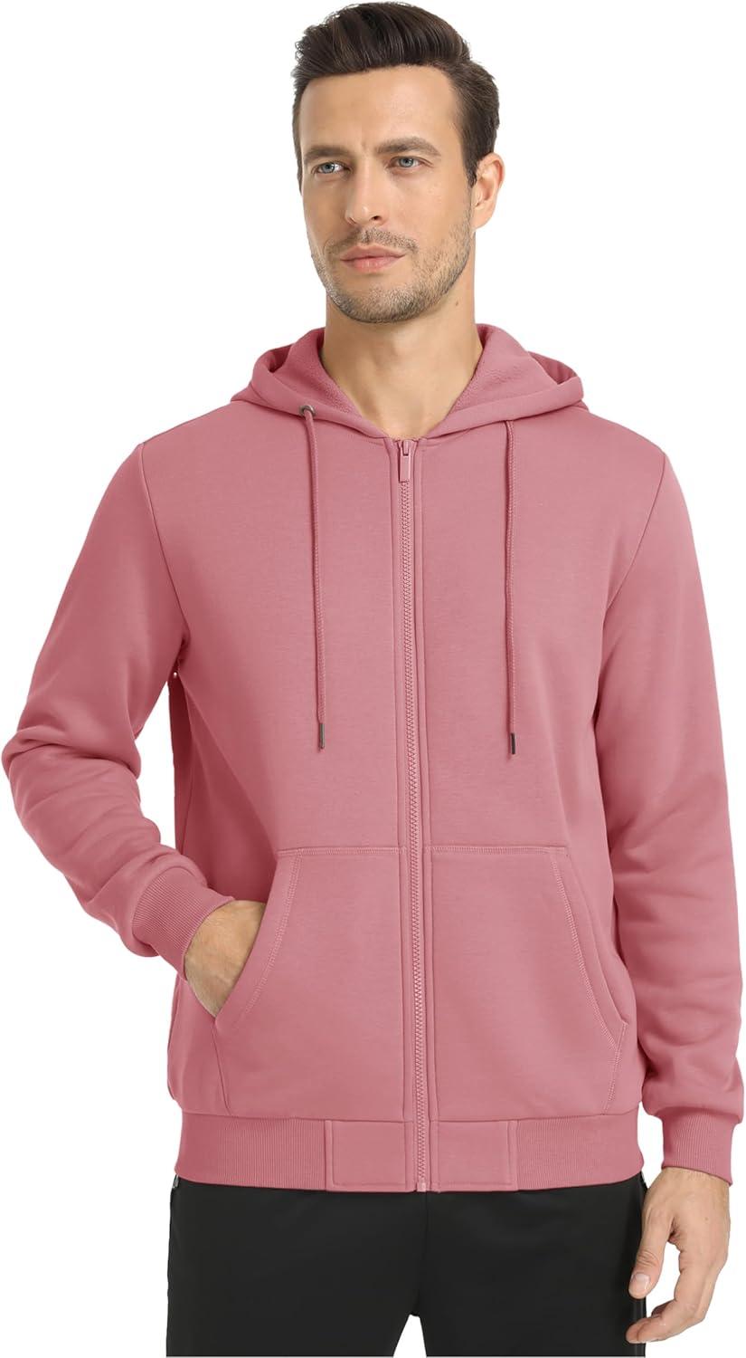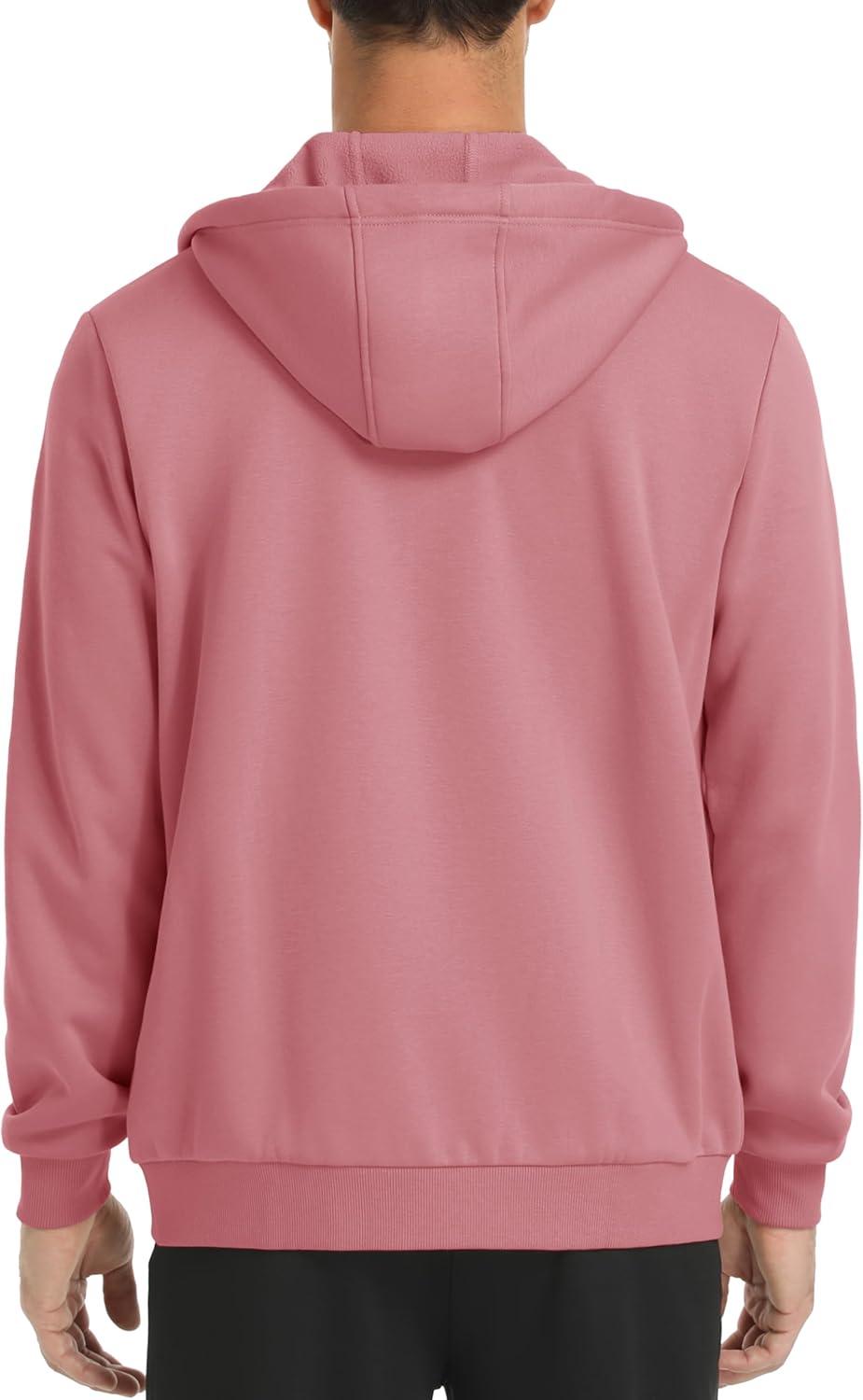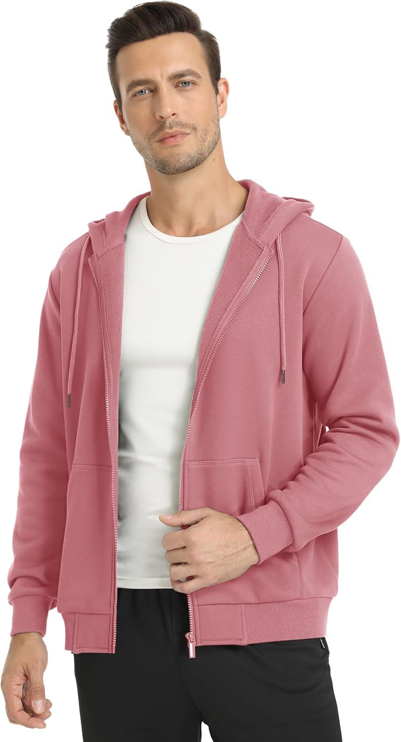 TACVASEN Mens Zip Up Hoodie Fleece Lined Hoodie Jacket Men Full Zip Sweatshirts Outdoor Thermal Athletic Hoodies(Grey Pink)